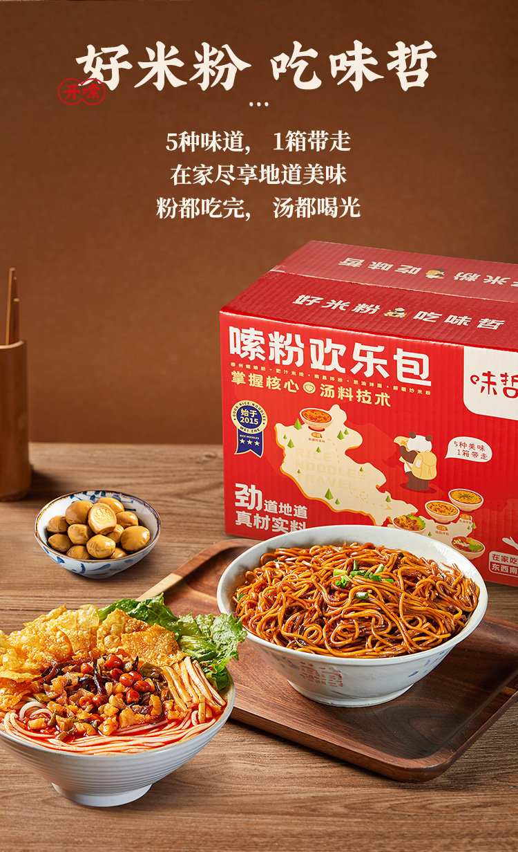 何以解忧,唯有嗦粉!再也不用担心买米粉踩雷了!味哲推出的嗦粉大礼包,集结了东西南北5种人气超高的米粉,款款都是心头爱!源头高品质大厂,专业化品质标准,正宗地道好味道,让你吃得更放心!