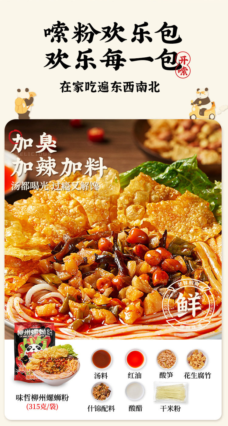 嗦粉狂热爱好者看过来!味哲螺蛳粉真的超!有!料!Q弹米粉包+香醇汤料包+秘制辣油包+酸脆什锦包+地道酸笋包+地道酸醋包+腐竹花生包!满满都是好料,一口开胃、两口解馋、三口回味无穷!