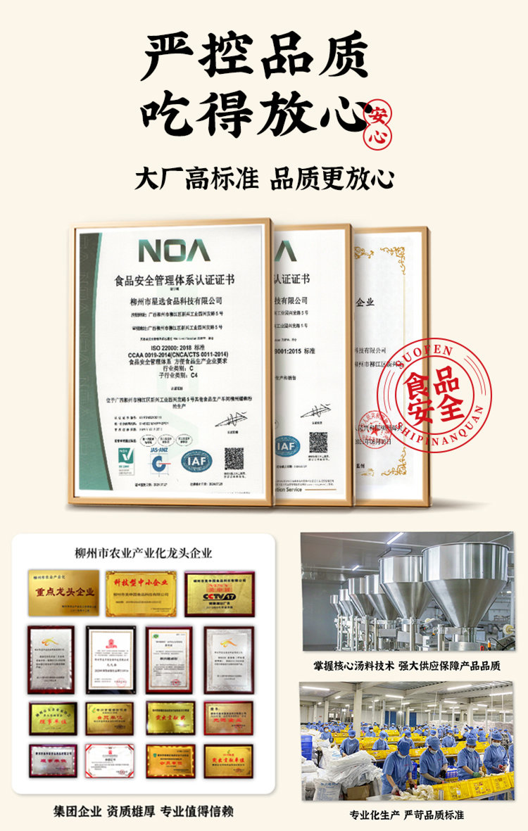 3家自有工厂,大厂出品,品质严格把控,安全、卫生、干净,吃得放心!