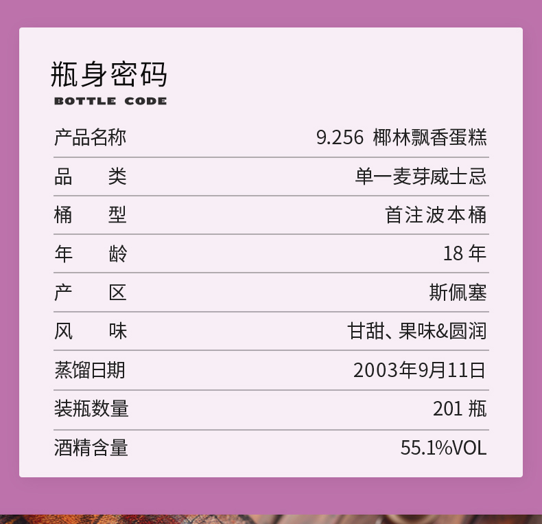 【SMWS】 9.256 椰林飘香蛋糕 18年 单一麦芽 威士忌 洋酒