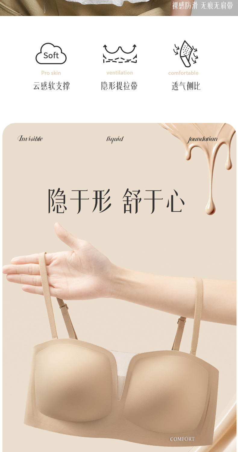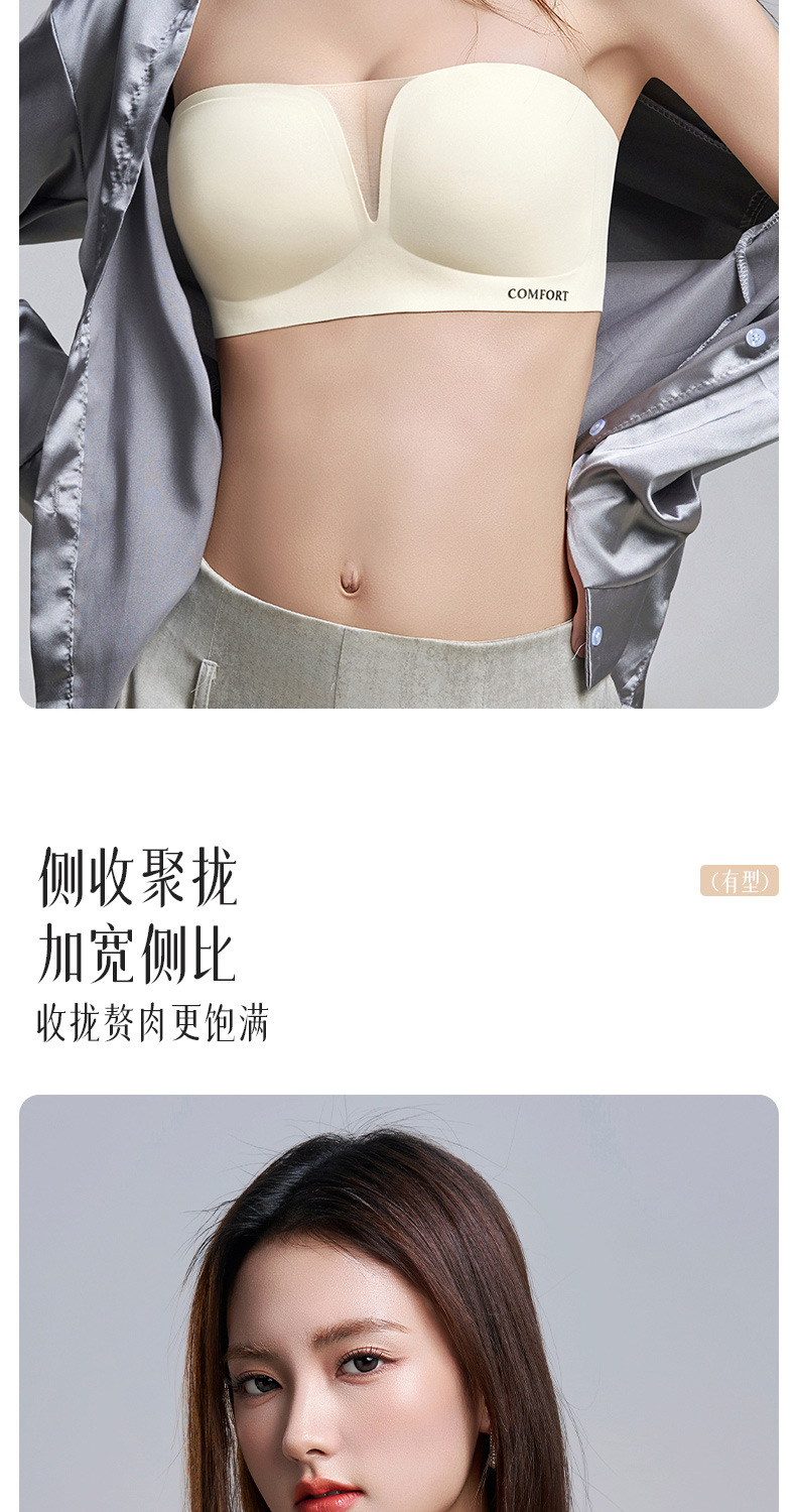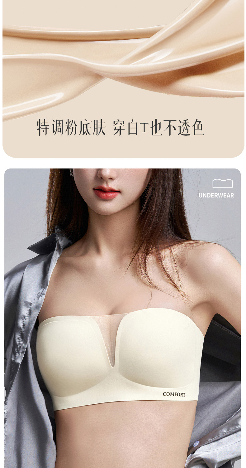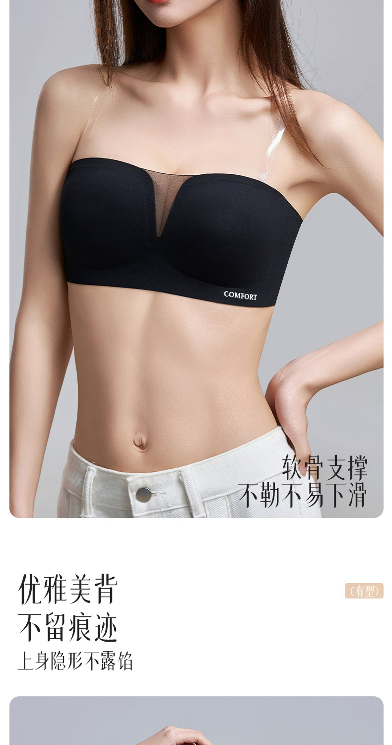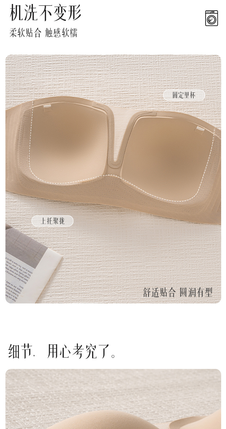 SDE-646# 夏季无肩带抹胸文胸无钢圈一体固定杯防滑隐形内衣机洗不跑杯(单件)