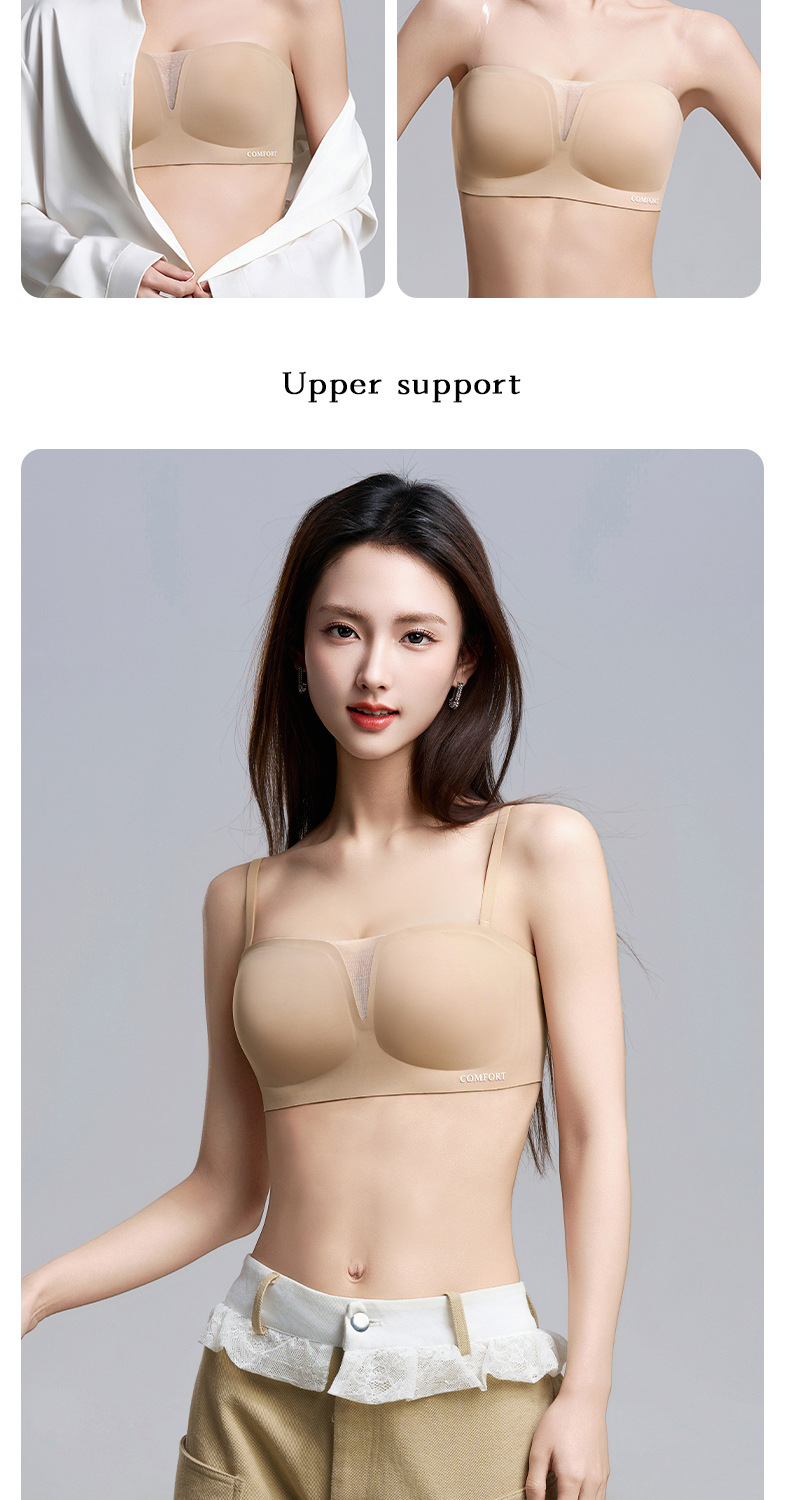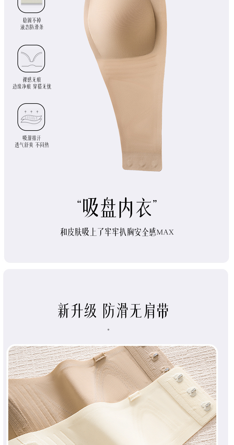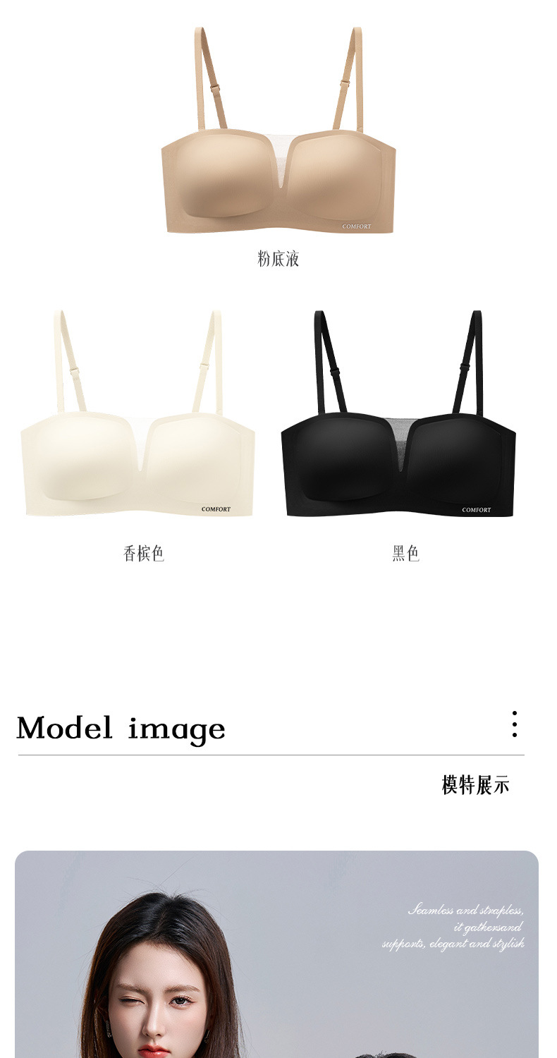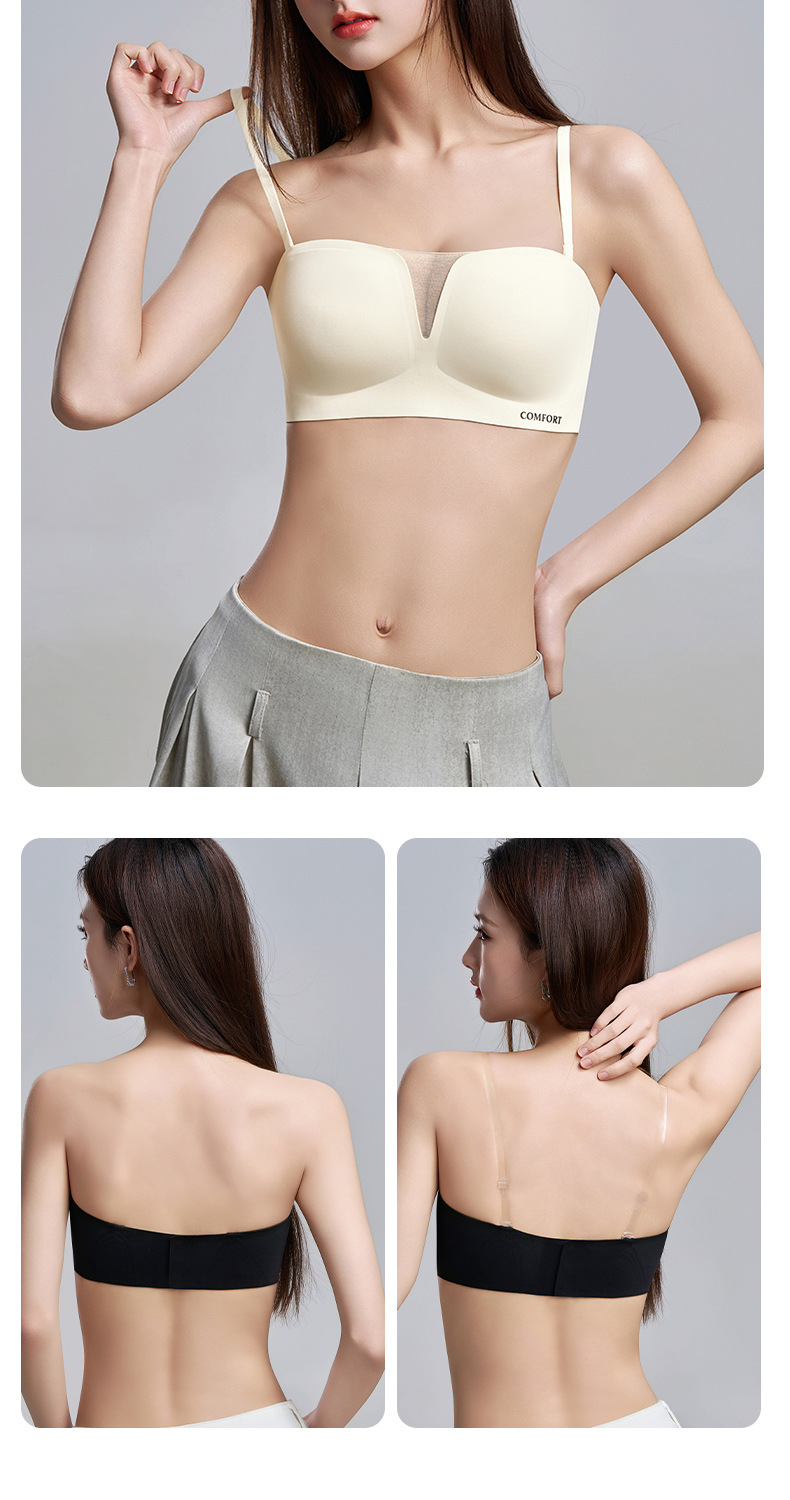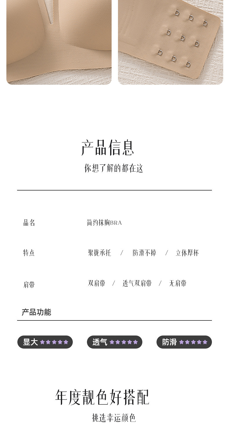 SDE-646# 夏季无肩带抹胸文胸无钢圈一体固定杯防滑隐形内衣机洗不跑杯(单件)
