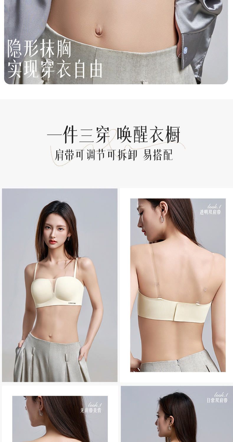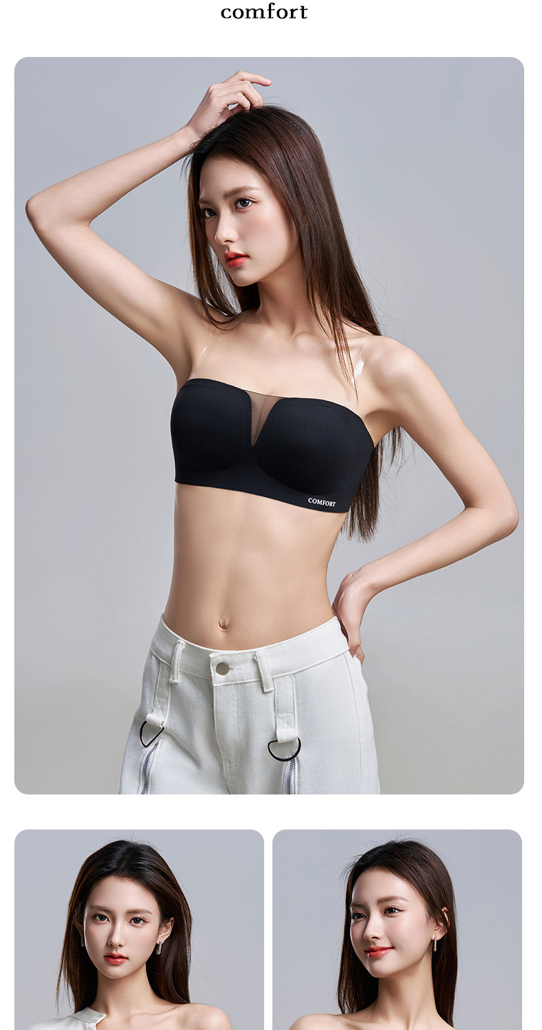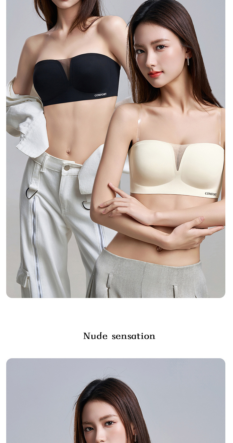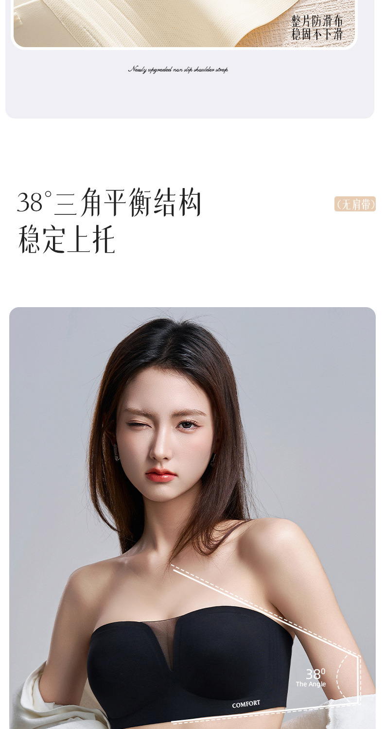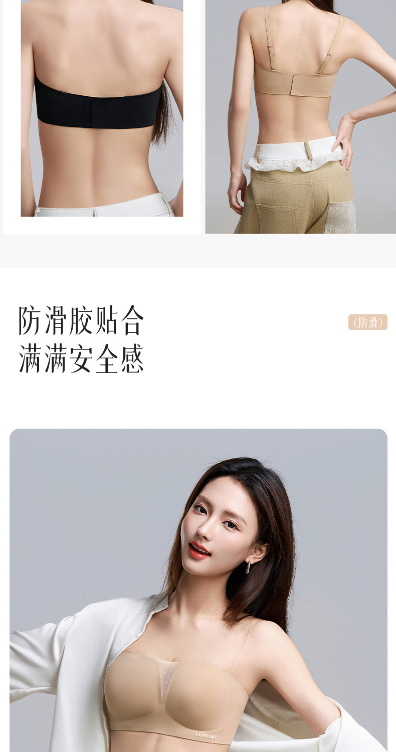 SDE-646# 夏季无肩带抹胸文胸无钢圈一体固定杯防滑隐形内衣机洗不跑杯(单件)