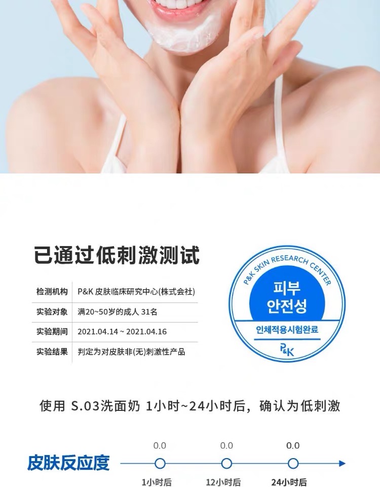 通过权威检验 , 敏感肌 和油痘肌都适合, 独特的小分子细腻泡沫,更容易清透毛孔的堵塞, 不扩大毛细孔 。