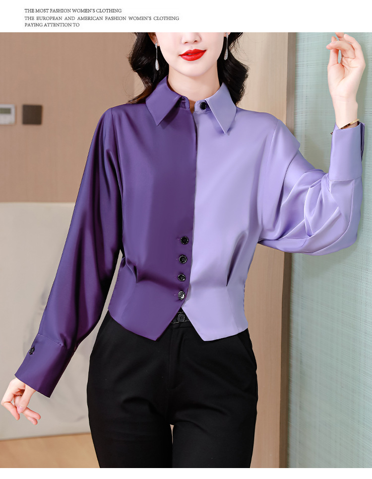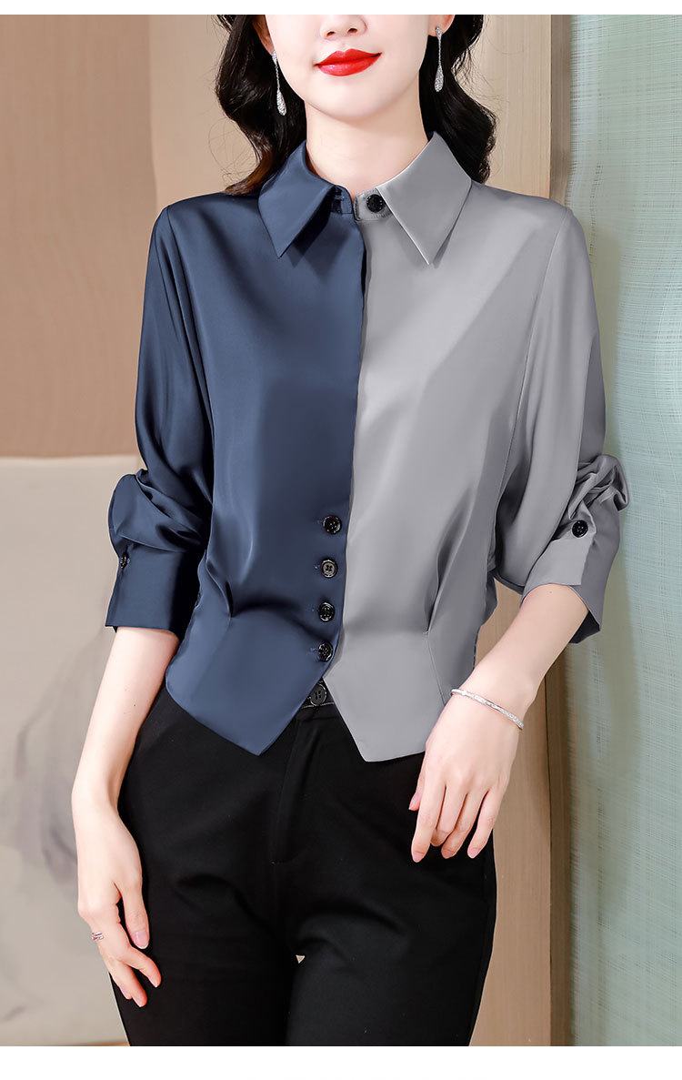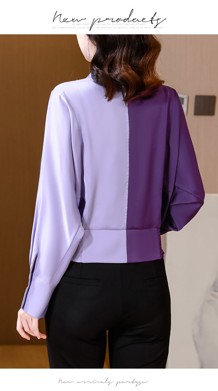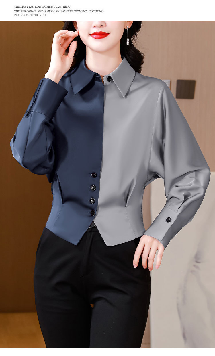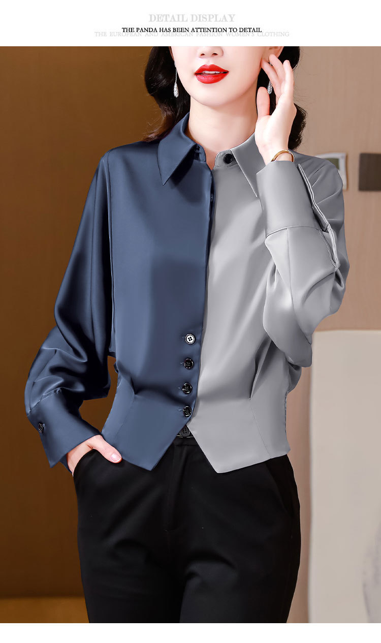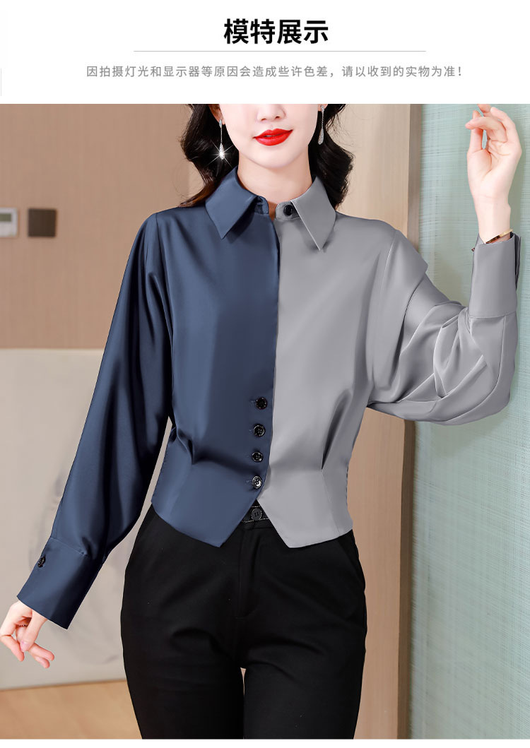 KQL A83N6917复古感撞色法式衬衫别致收腰上衣