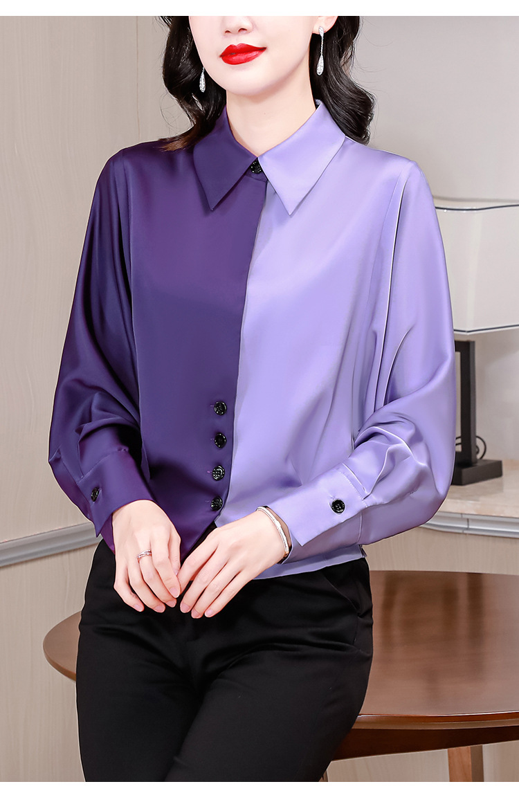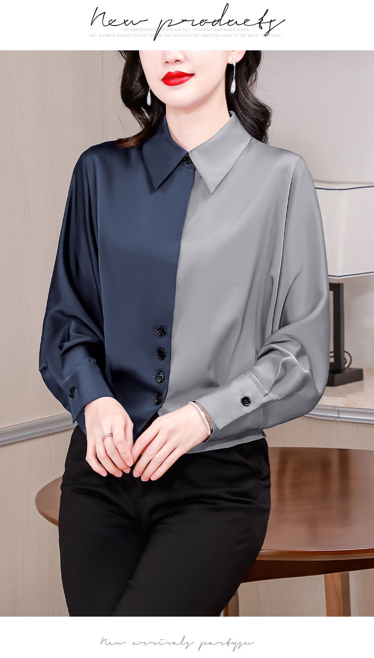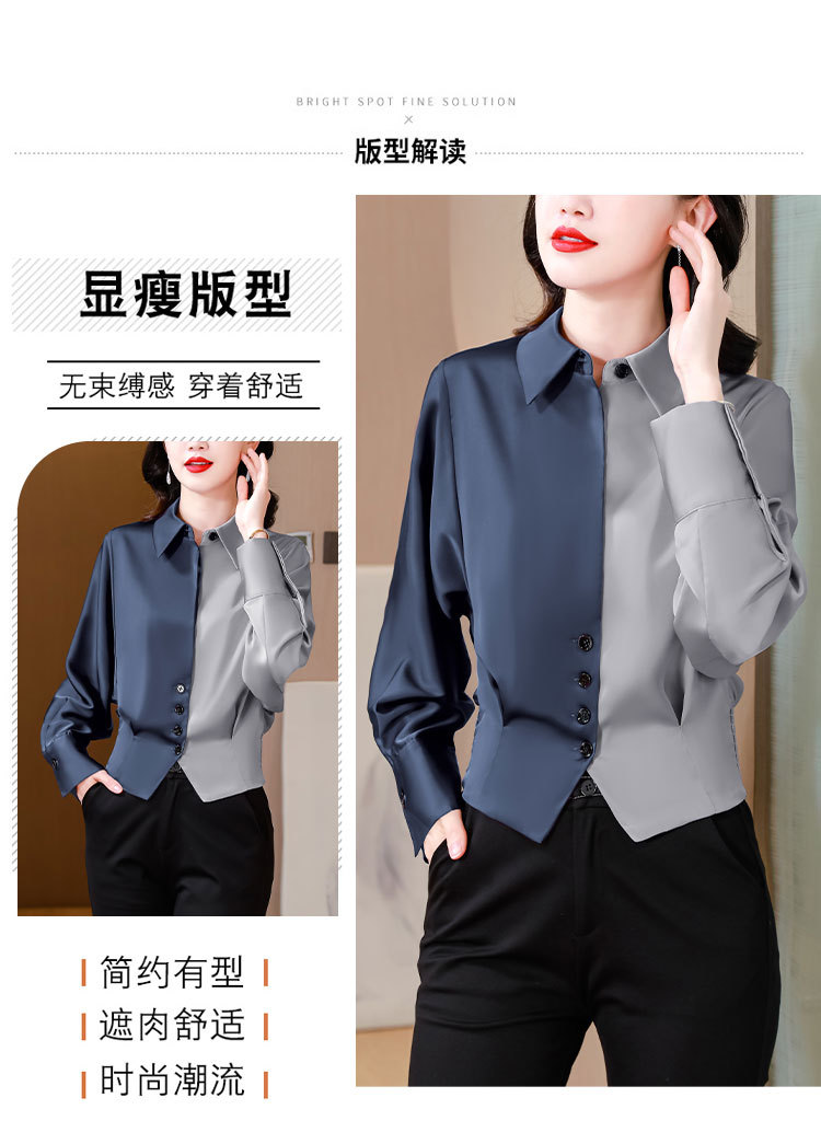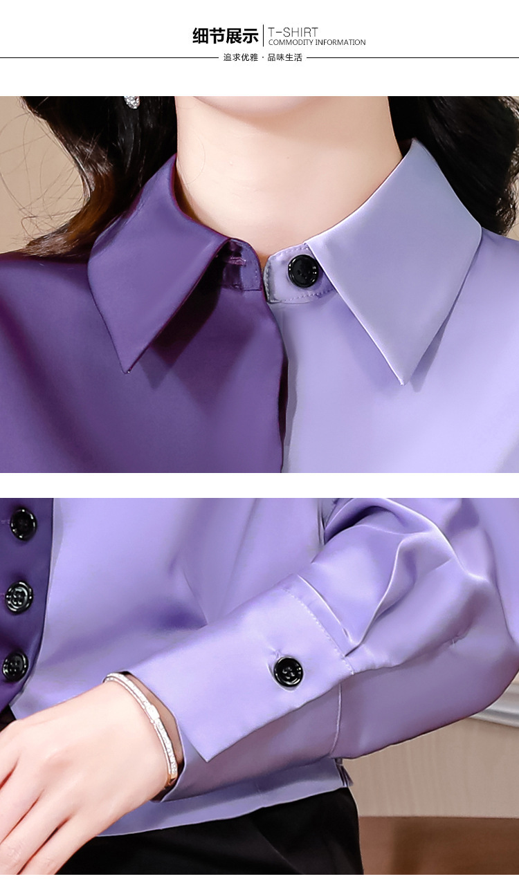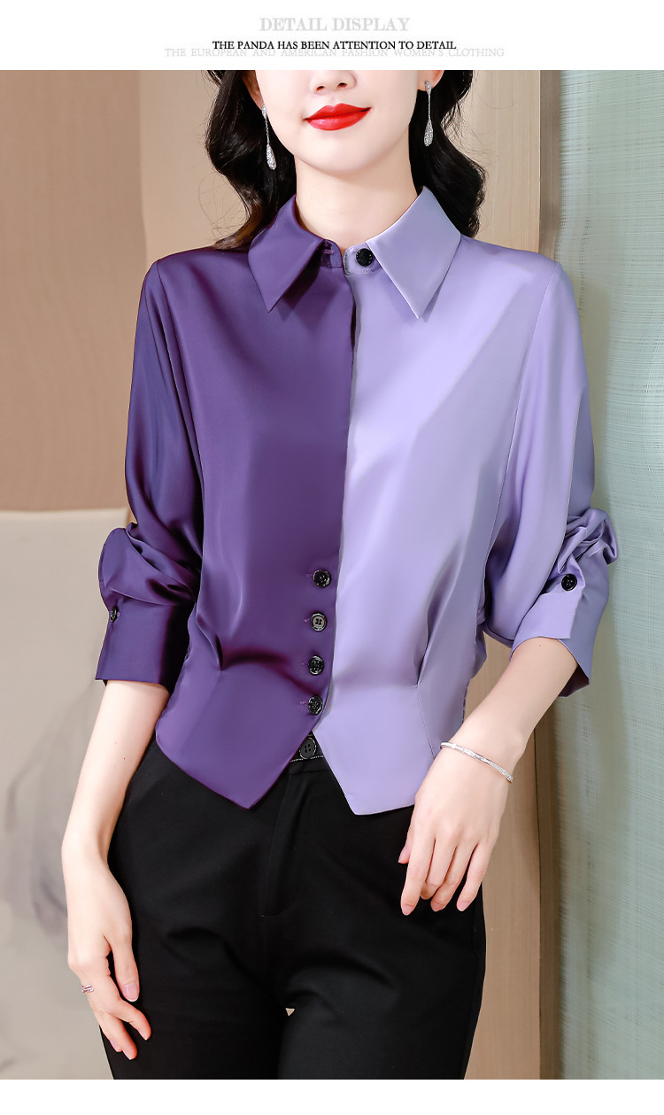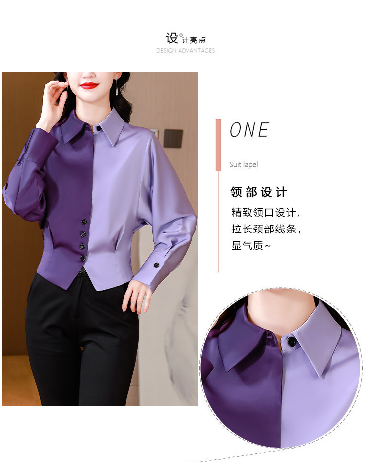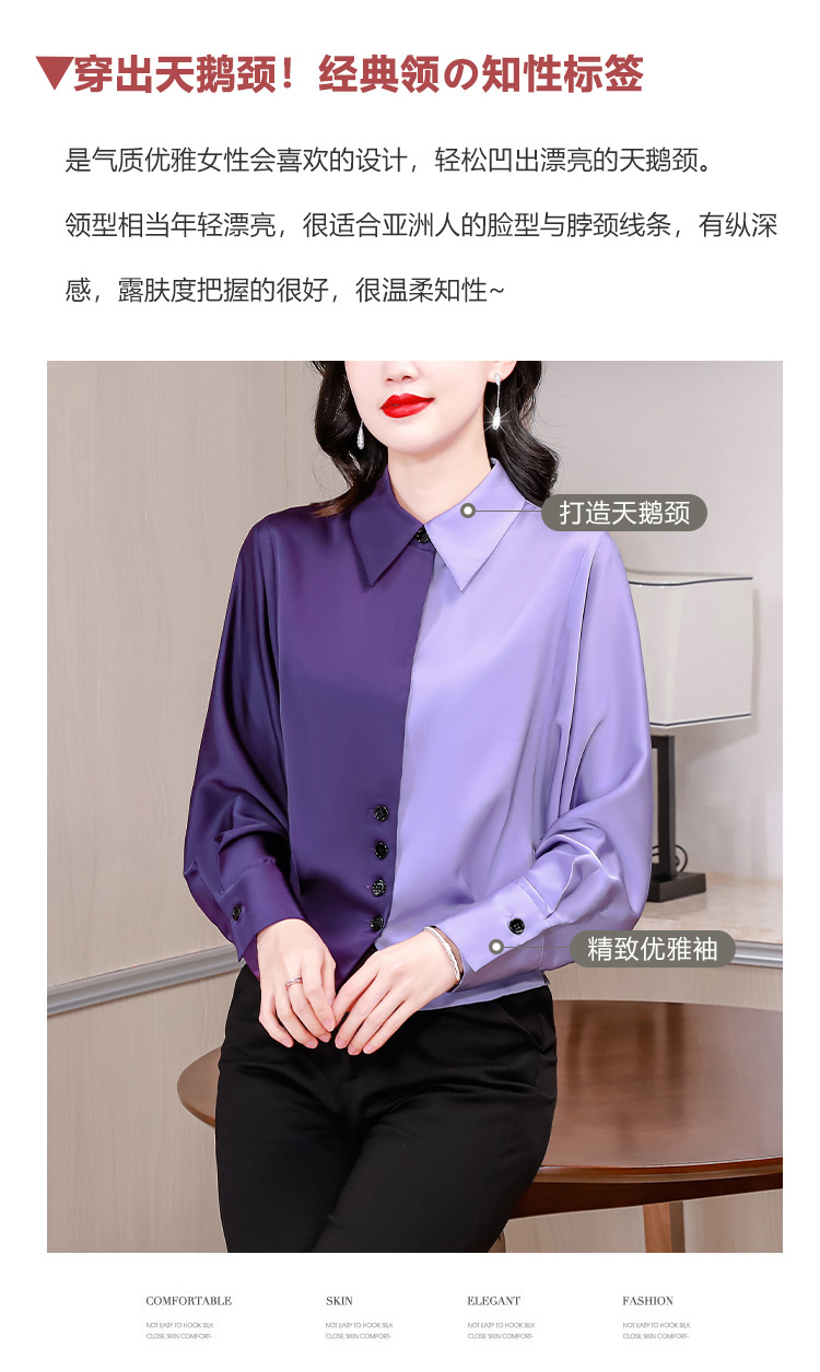 KQL A83N6917复古感撞色法式衬衫别致收腰上衣