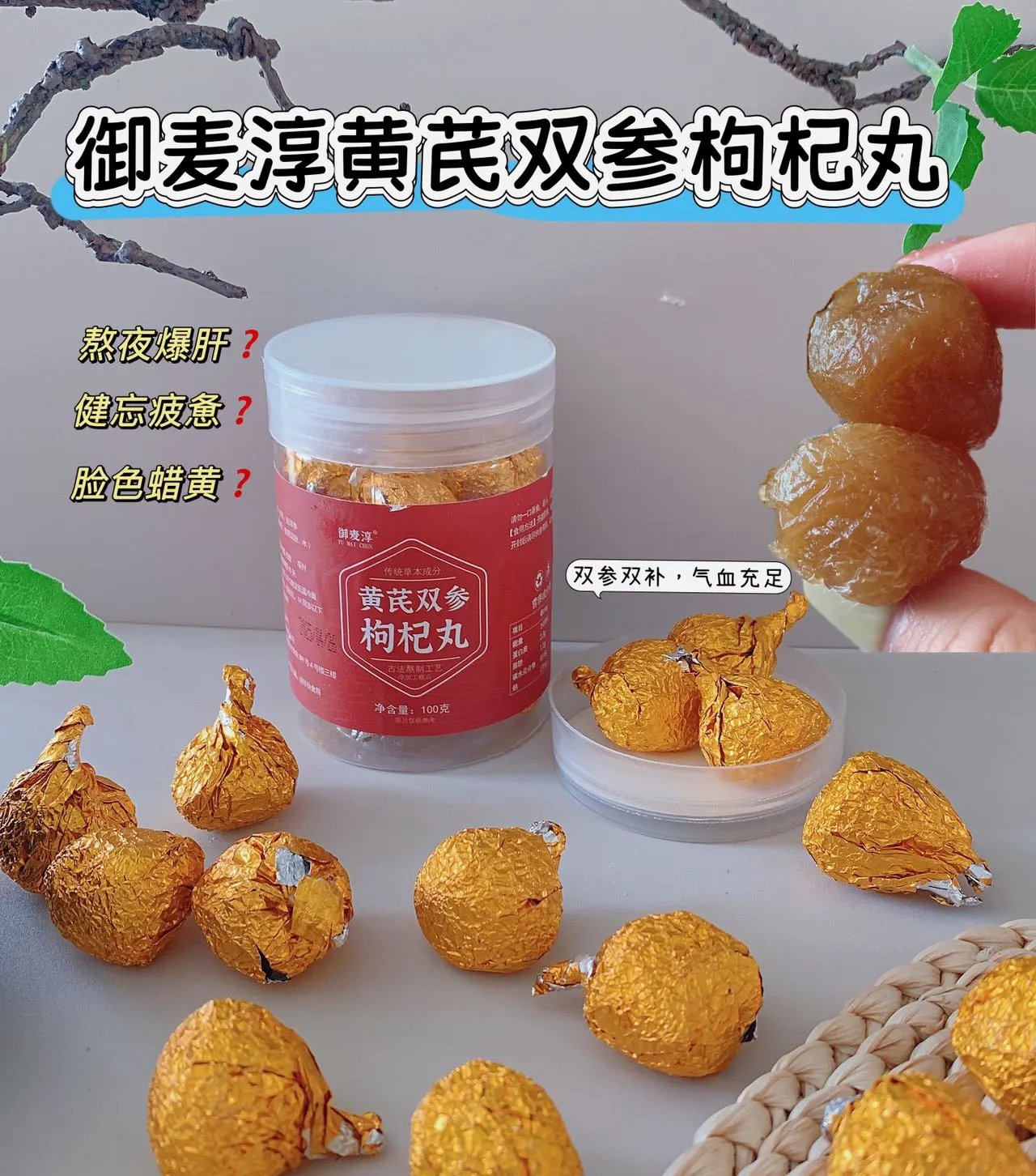 【打工人续命神器!熬夜不垮脸】御麦淳黄芪双参枸杞丸 键盘侠、加班狗、熬夜党必入!黄芪+双参+枸杞+红枣,科学配比 ✅ 独立小颗粒包装,塞包里、放办公桌,随时随地嚼两粒,元气随时在线! ✅ 1天2粒,熬夜党、体虚星人、久坐族的“移动充电站”,给身体加足元气Buff! ✅纯天然草本打粉制成,入口甘润不腻。 老祖宗的方子,现代人的刚需❗