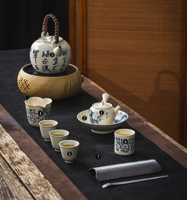 茶香记苏打釉青花文人竹石侧把壶170ml景德镇陶瓷泡茶壶茶室茶具