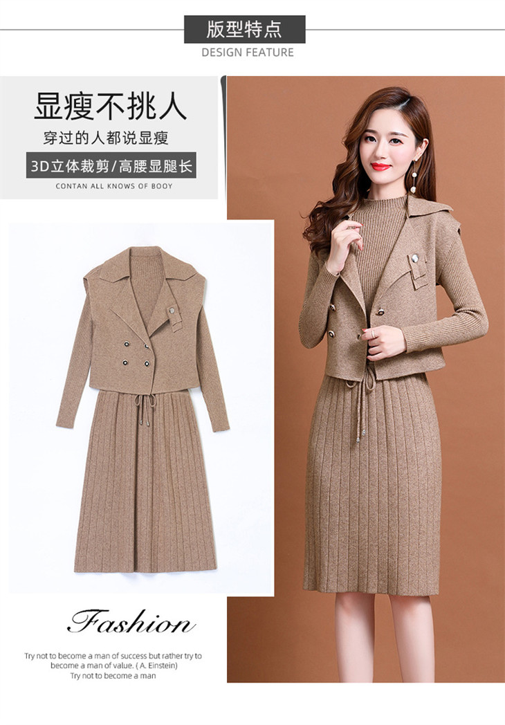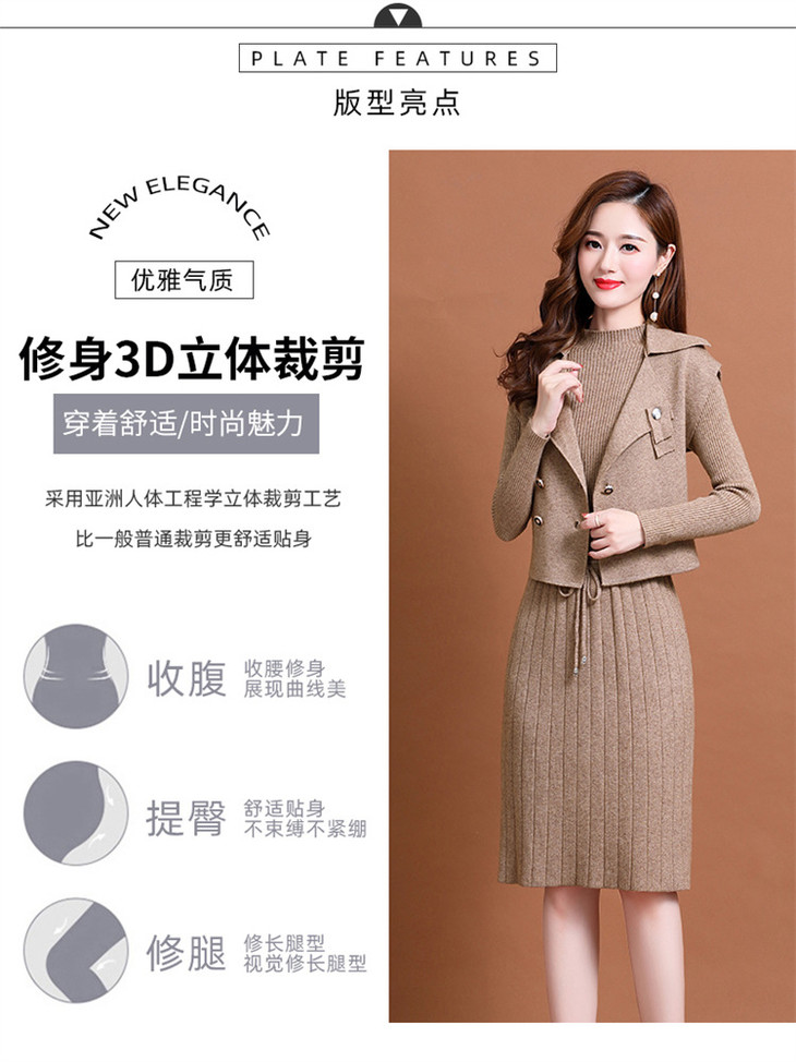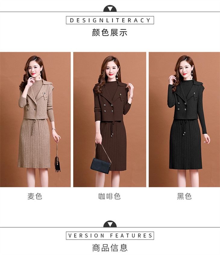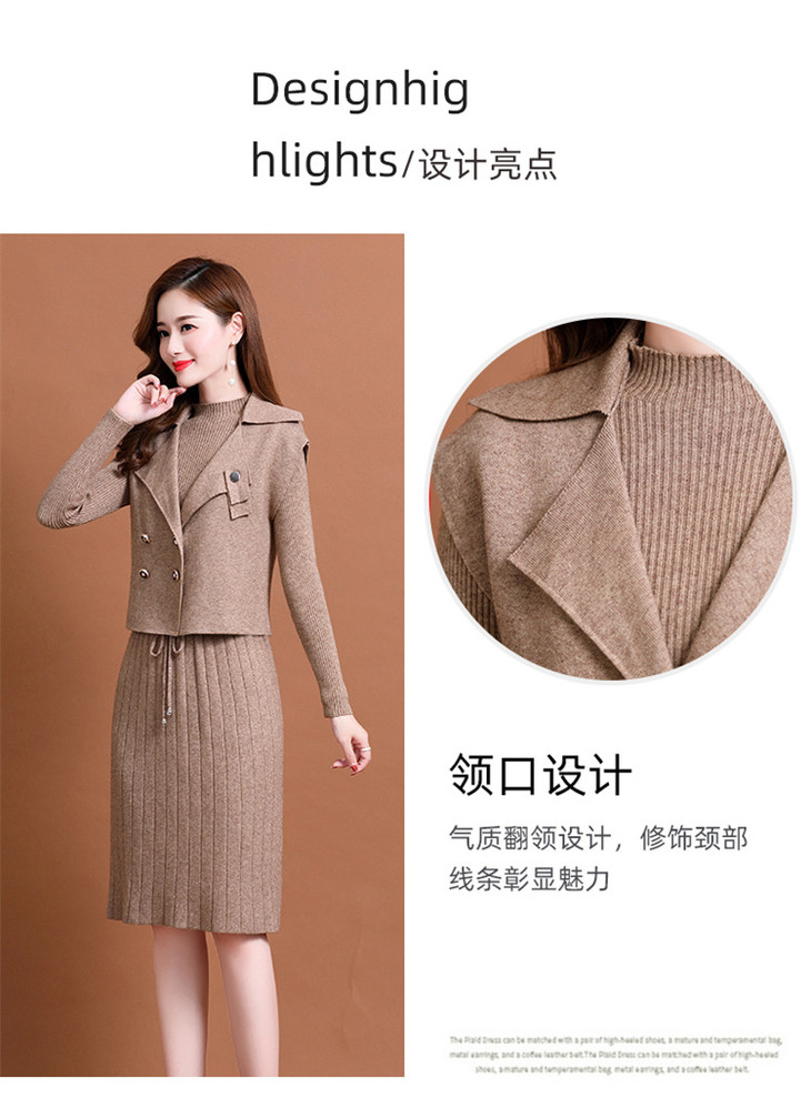 2022秋季新款时尚气质修身显瘦百搭套装两件套毛衫连衣裙 HR22079