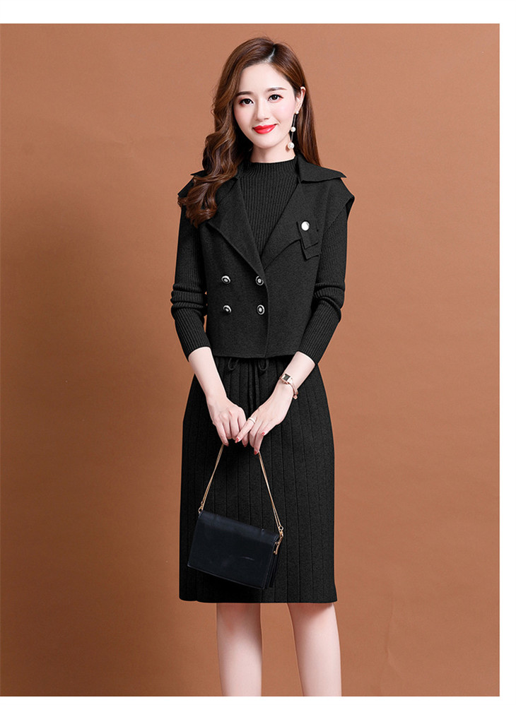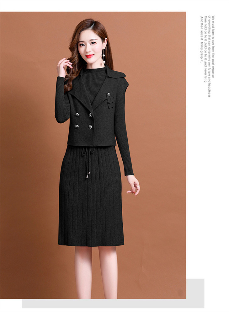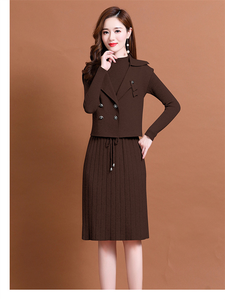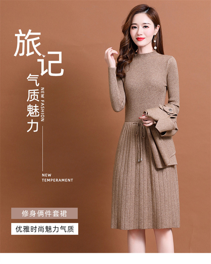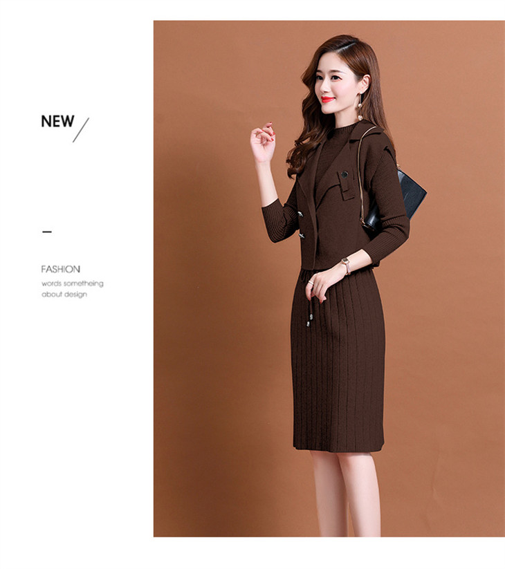 2022秋季新款时尚气质修身显瘦百搭套装两件套毛衫连衣裙 HR22079