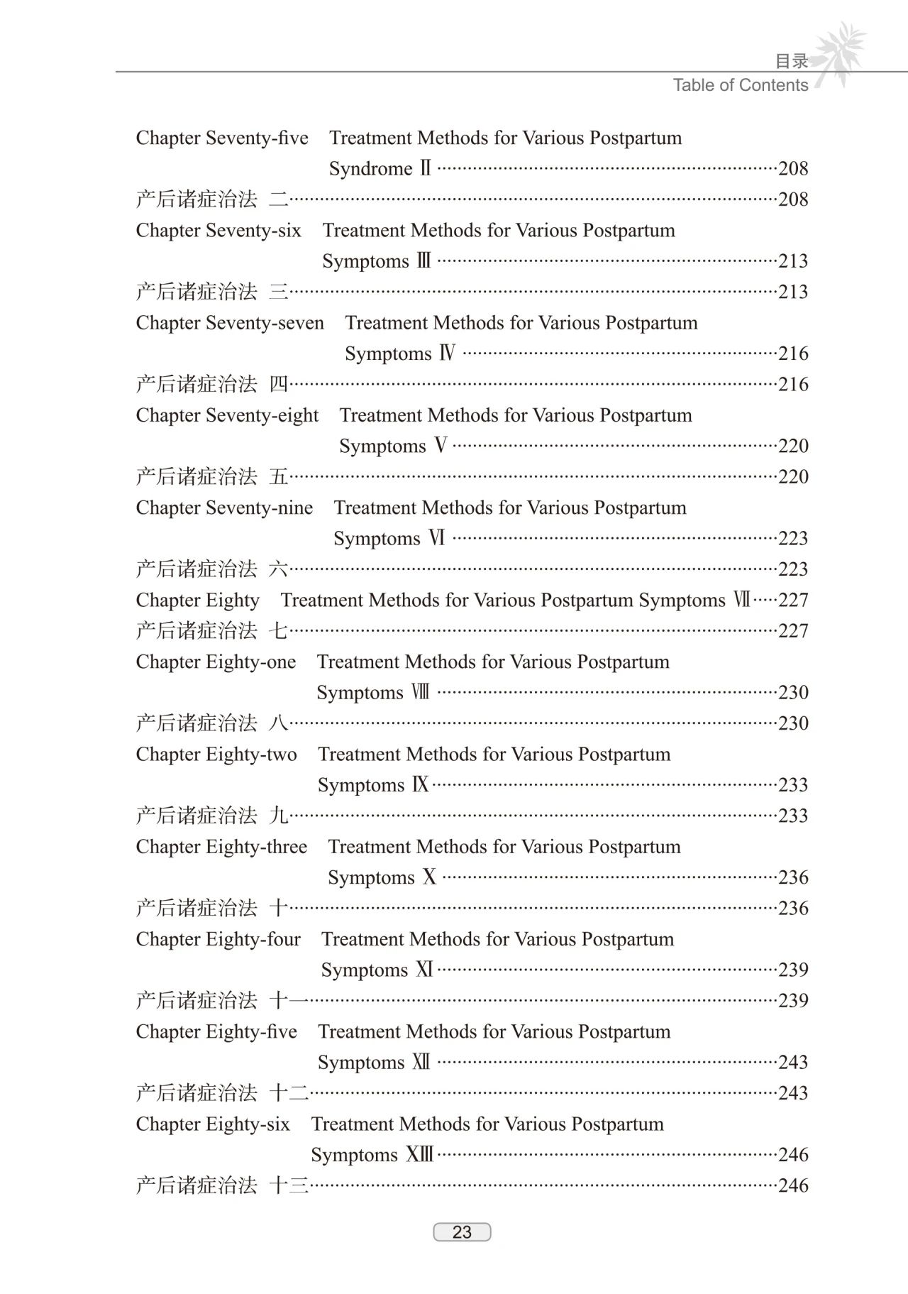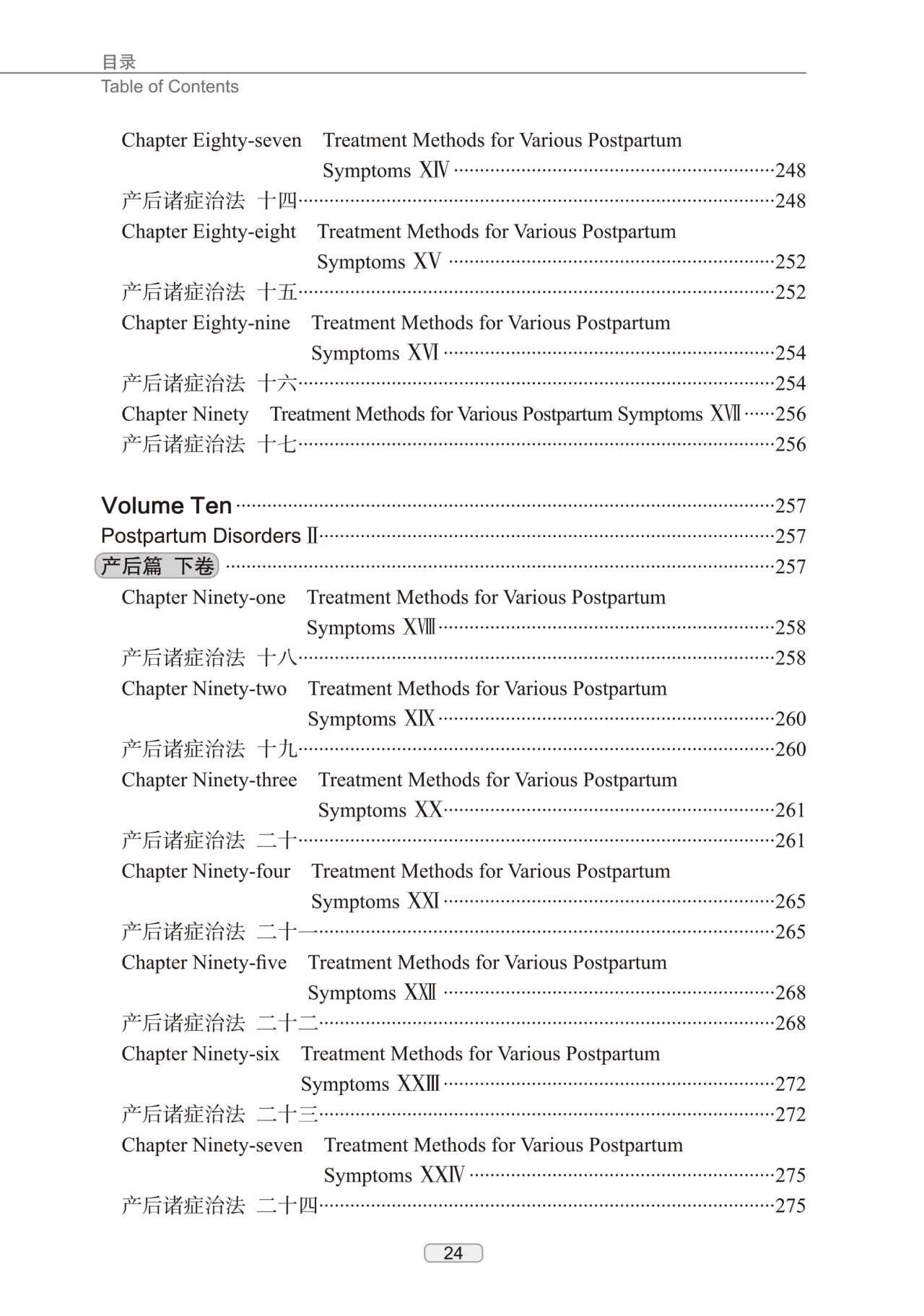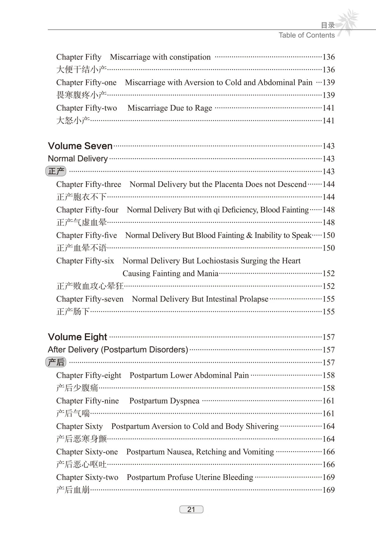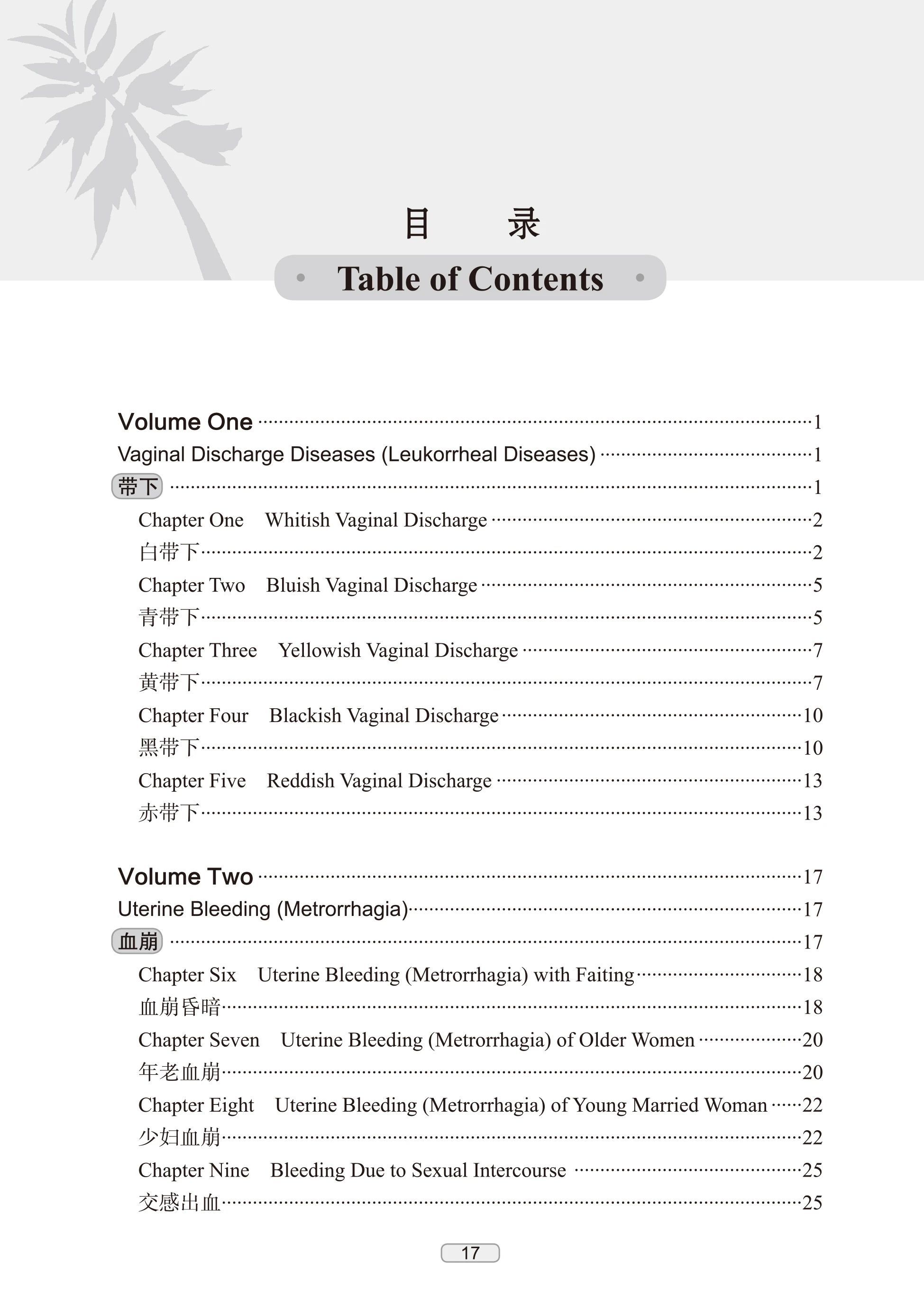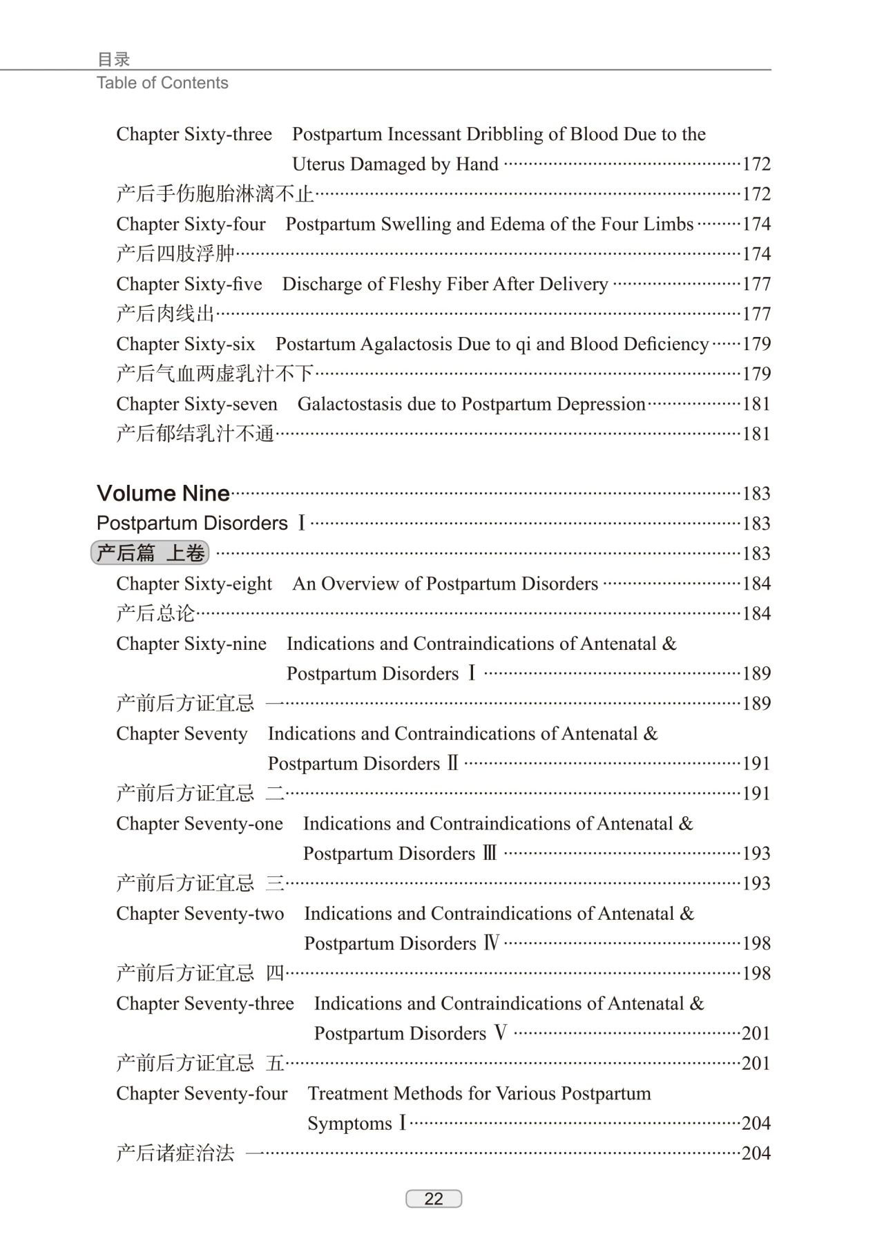全书包括带下、血崩、调经、种子、妊娠、小产、正产、产后、产后篇(上)、产后篇(下)和补集共11部分。书中提及的方剂和中药的中英文对照汇总表以附录形式附后。对国内外从事中医妇产科疾病预防、诊断、治疗相关临床及研究的医务人员和医务管理工作者、医学生等均具有重要参考价值。本书由人民卫生出版社出版。