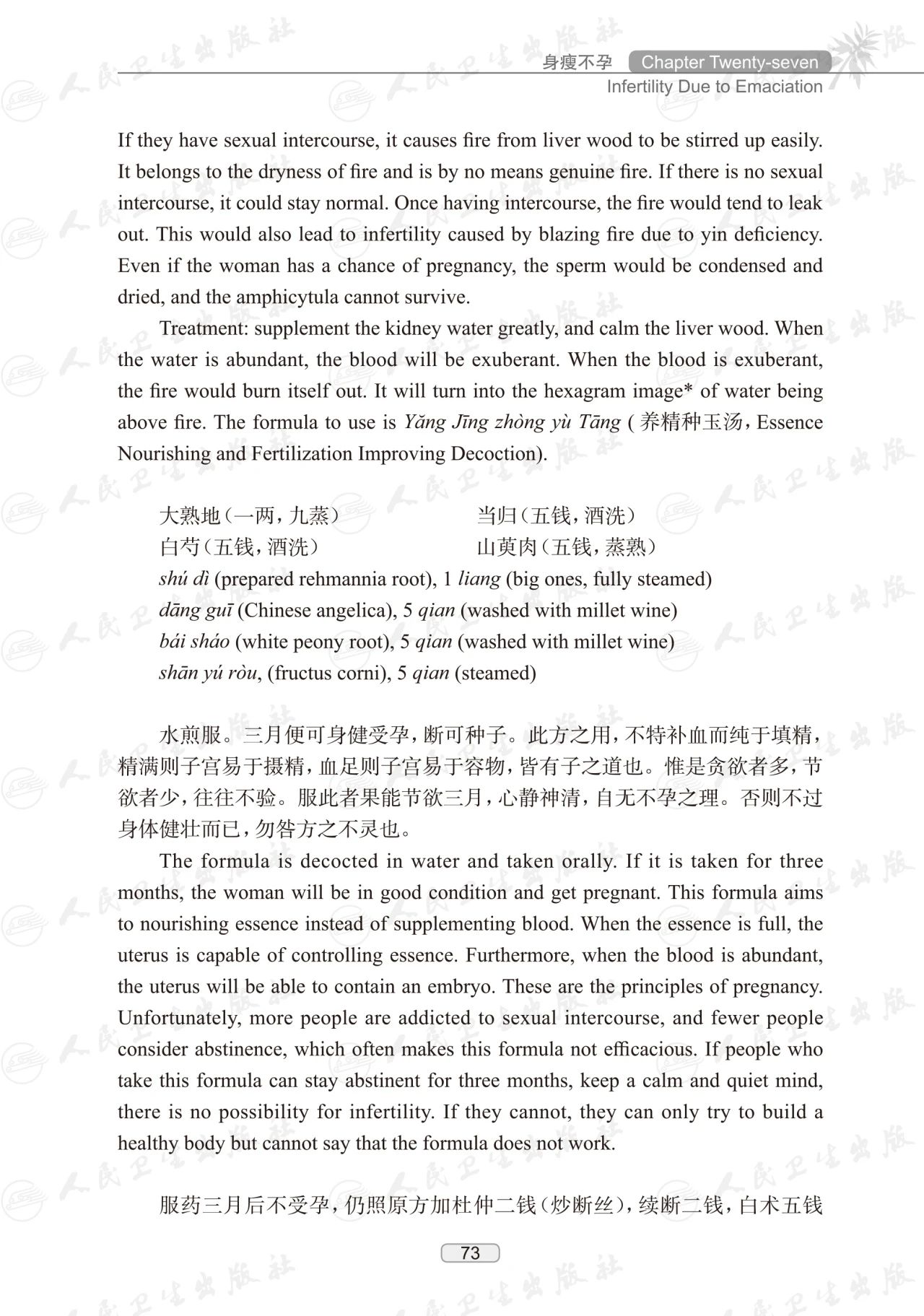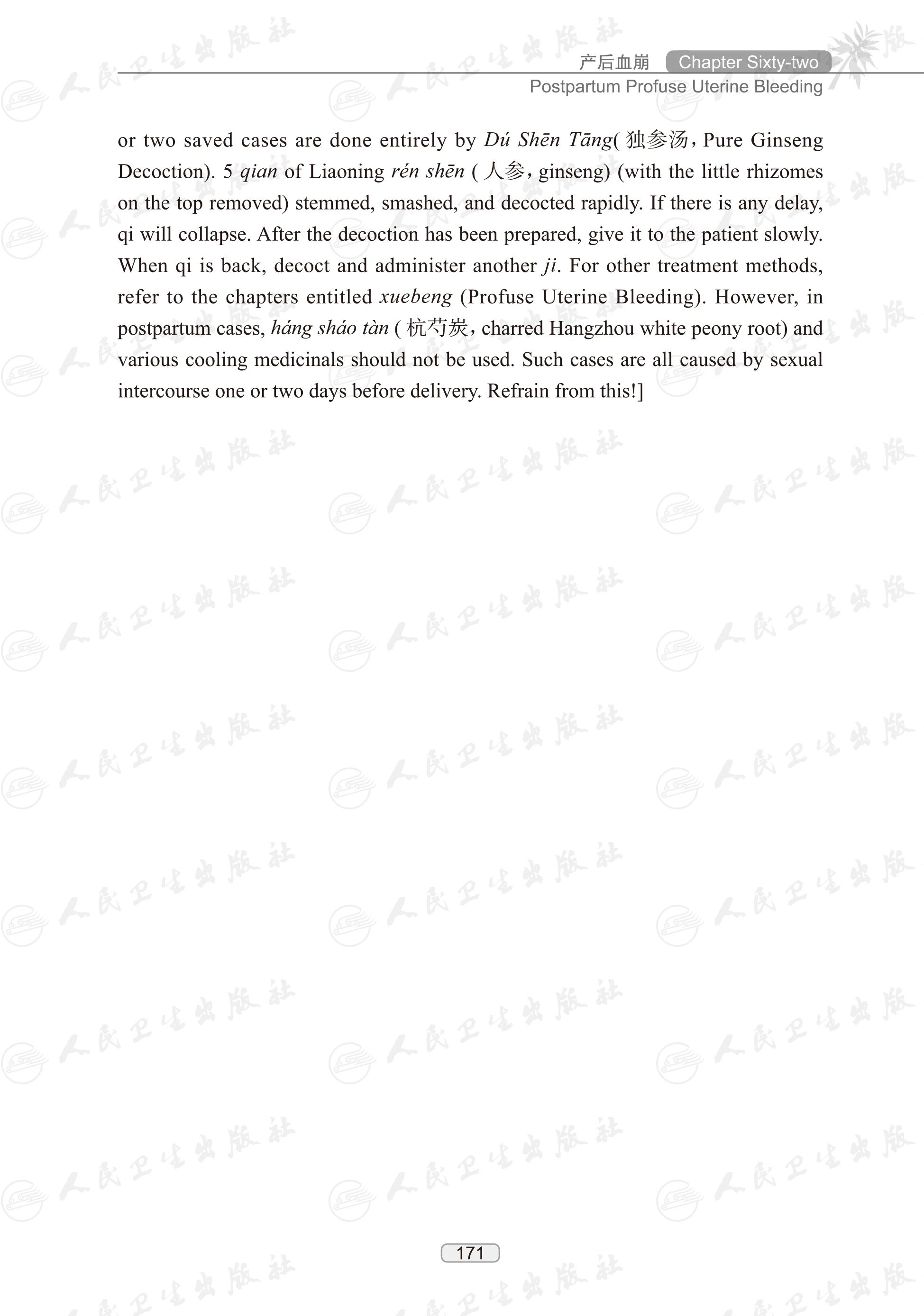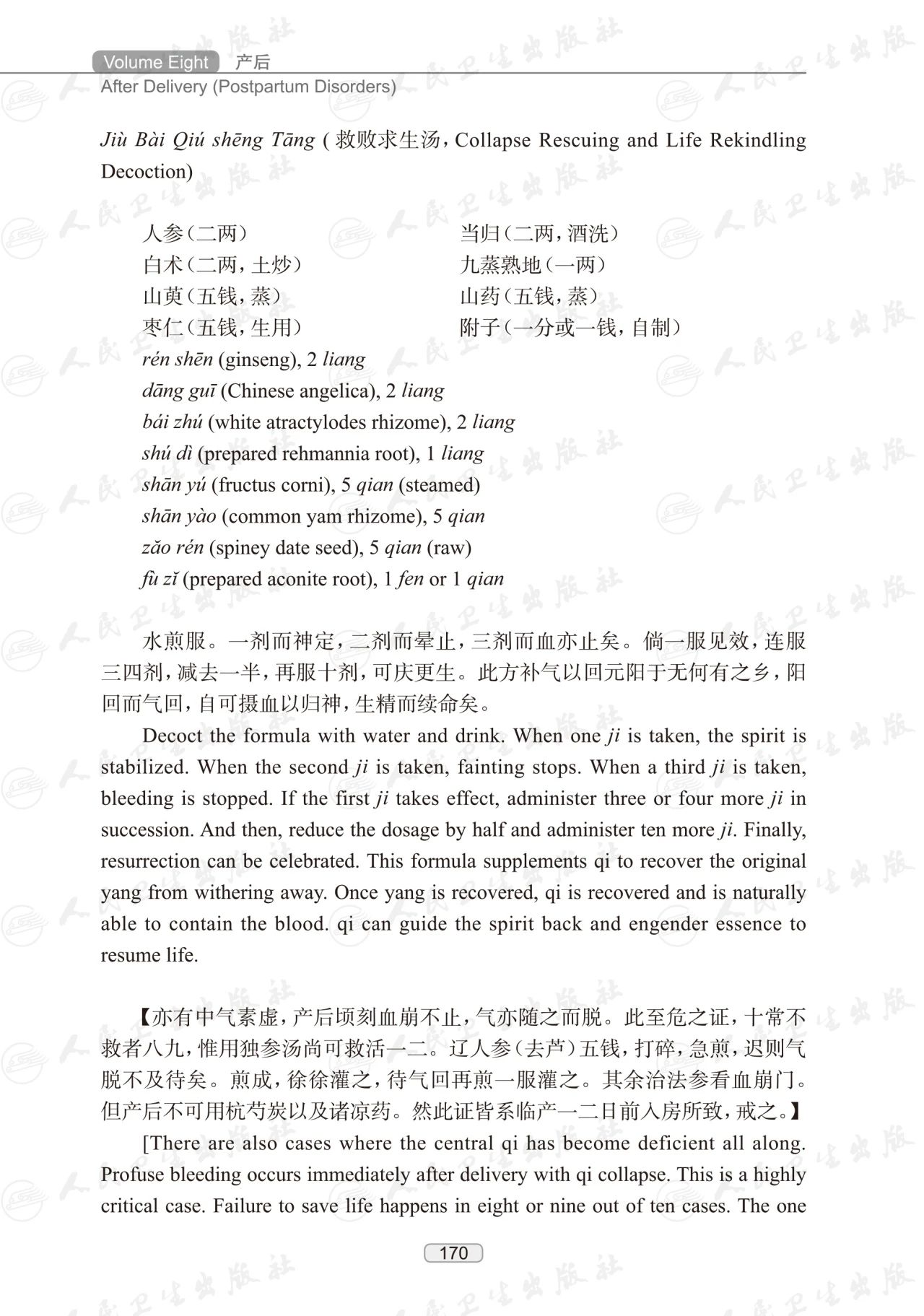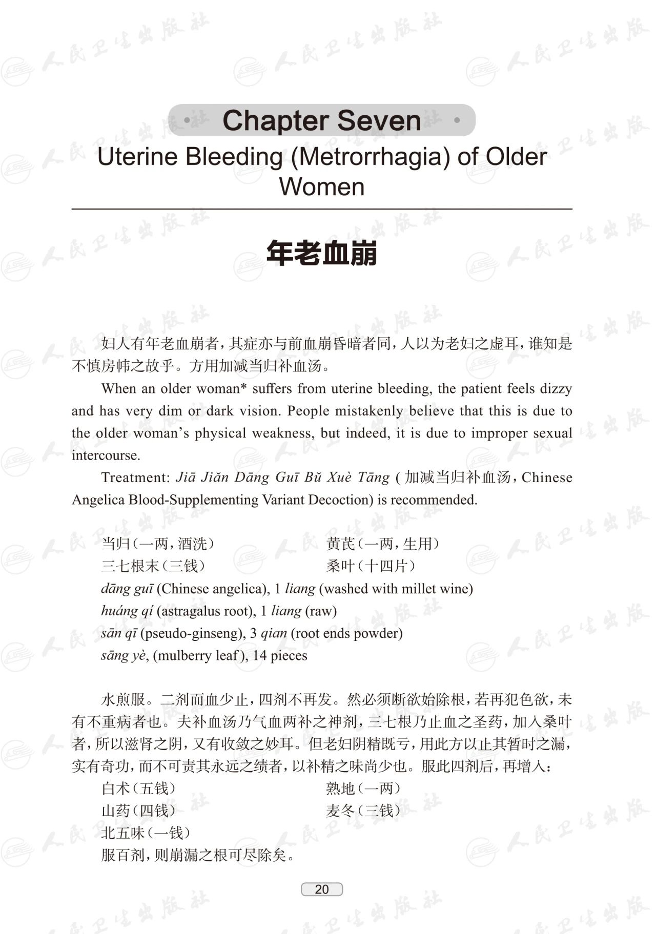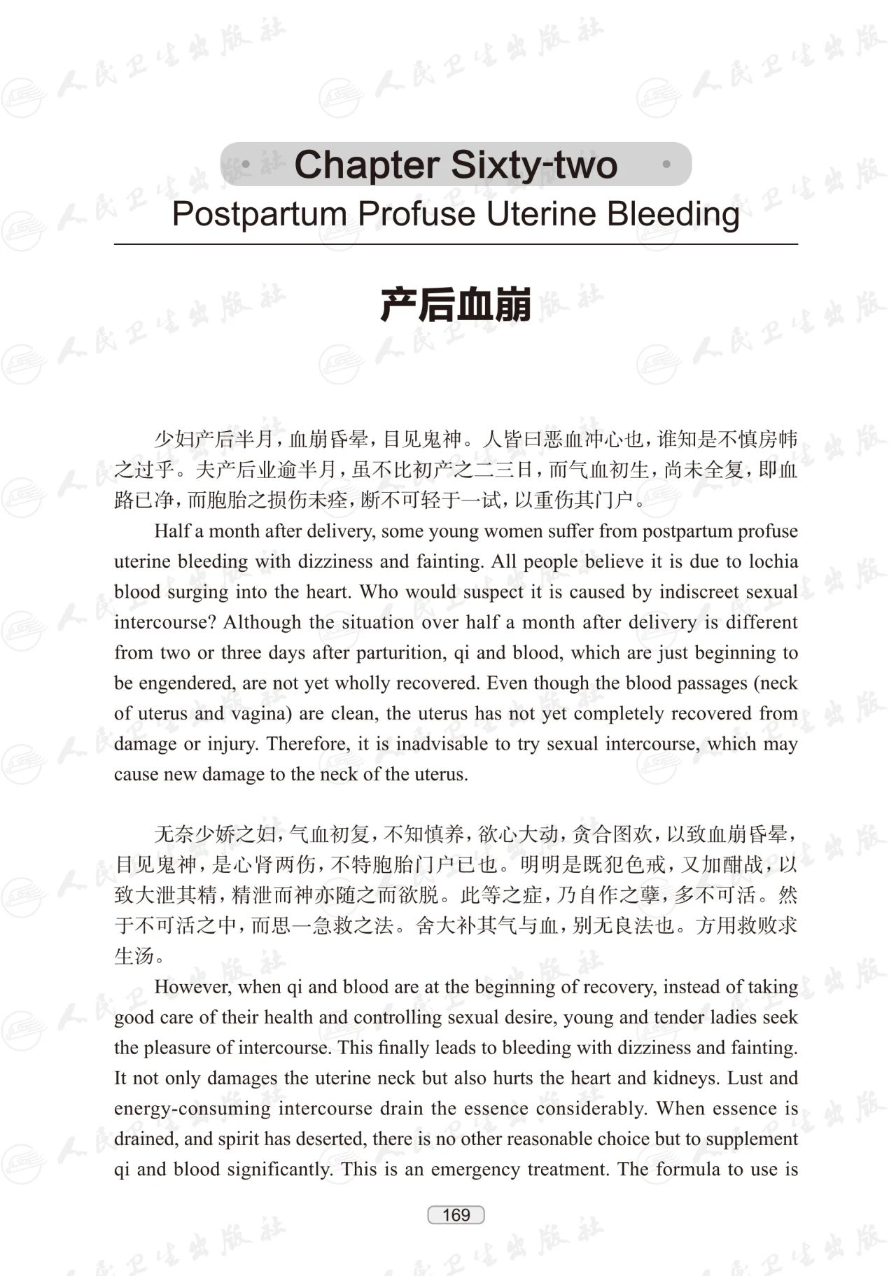 全书包括带下、血崩、调经、种子、妊娠、小产、正产、产后、产后篇(上)、产后篇(下)和补集共11部分。书中提及的方剂和中药的中英文对照汇总表以附录形式附后。对国内外从事中医妇产科疾病预防、诊断、治疗相关临床及研究的医务人员和医务管理工作者、医学生等均具有重要参考价值。本书由人民卫生出版社出版。