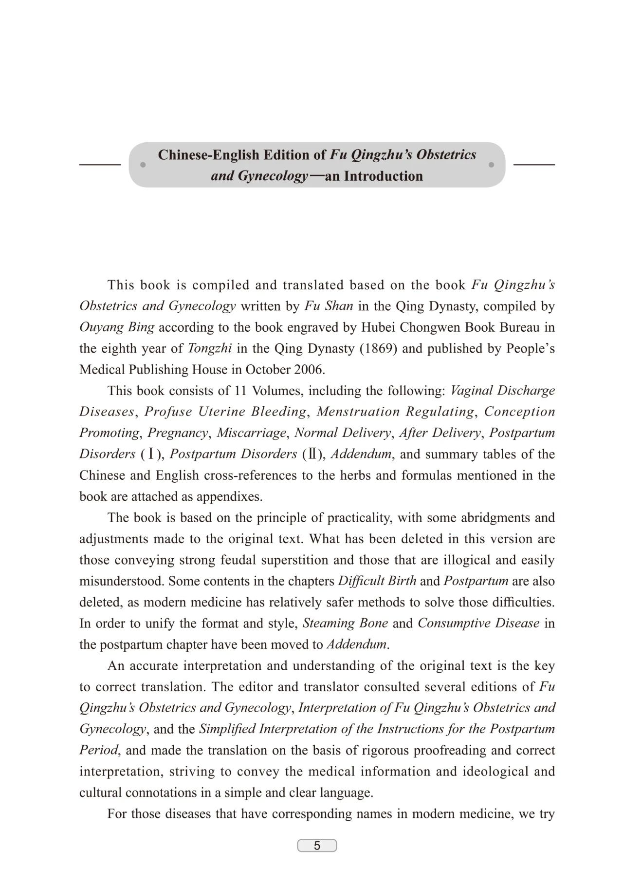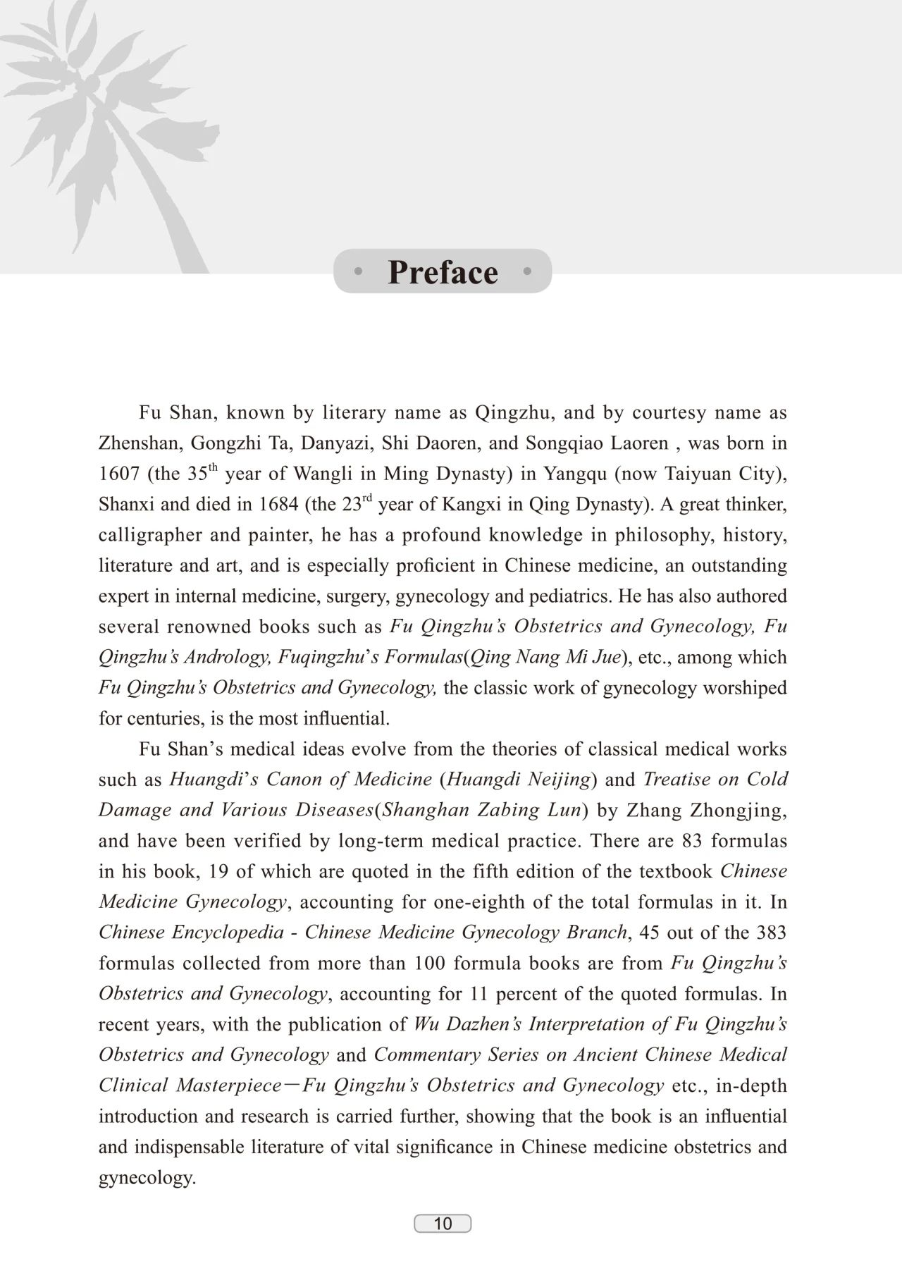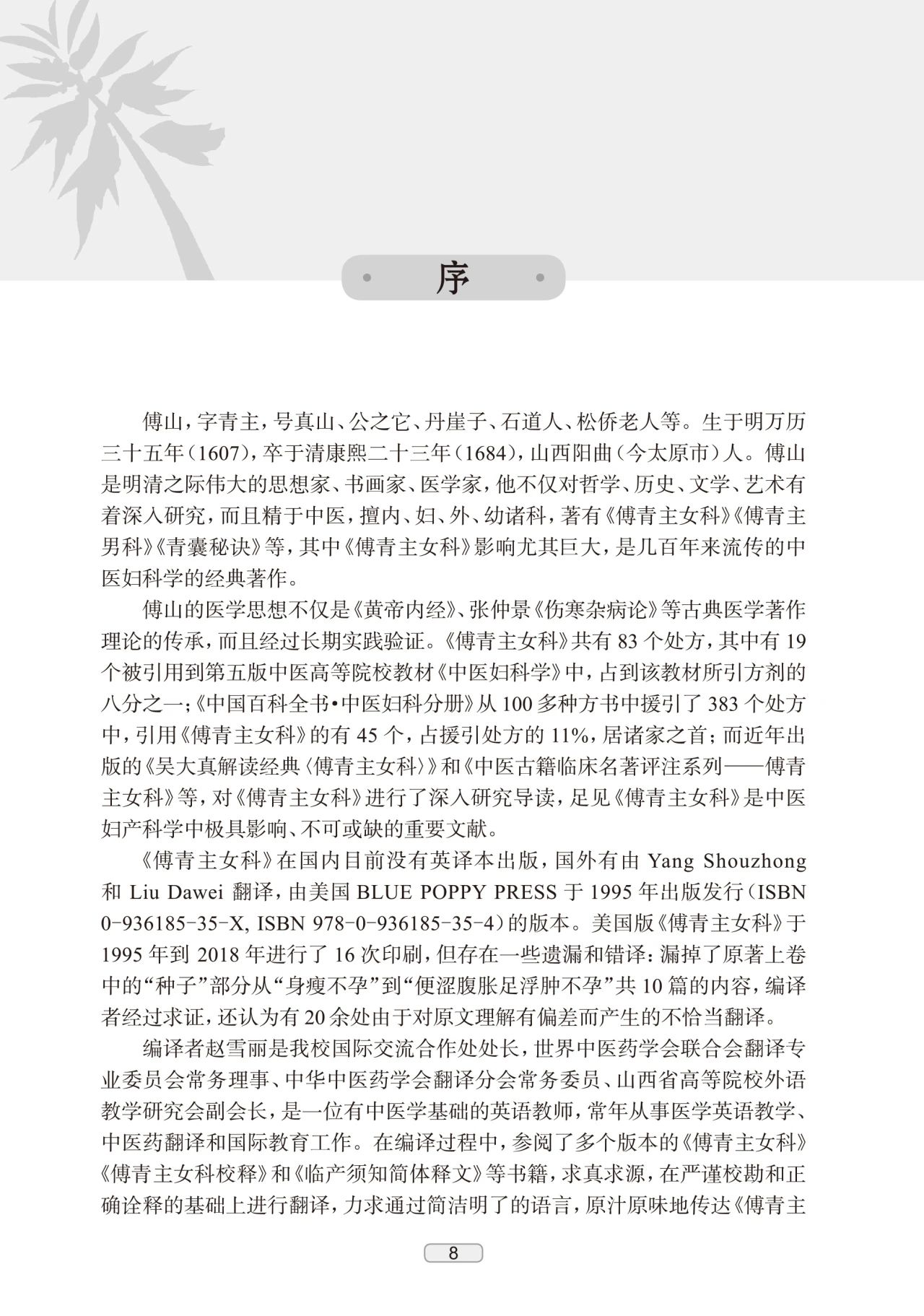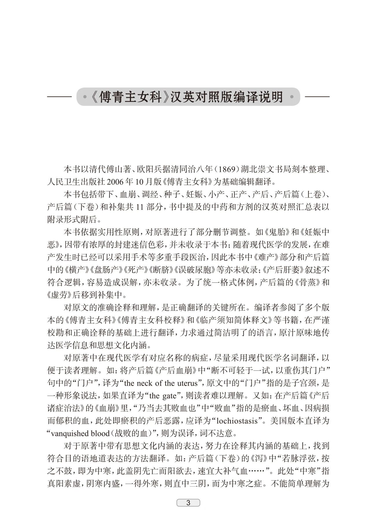 本书以清代傅山所著、欧阳兵据清同治八年(1869)湖北崇文书局刻本整理、人民卫生出版社2006年10月版《傅青主女科》为基础编辑翻译。