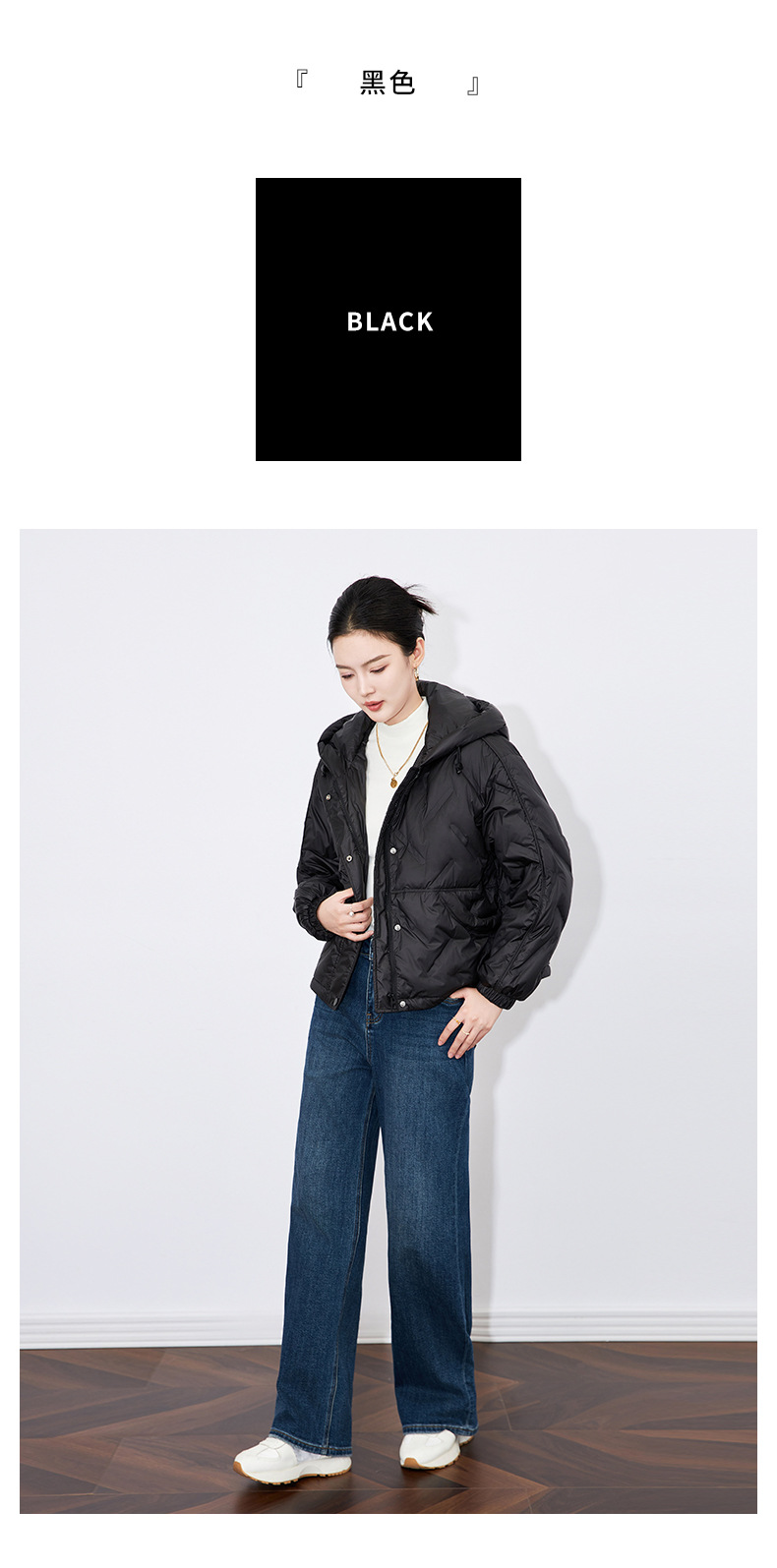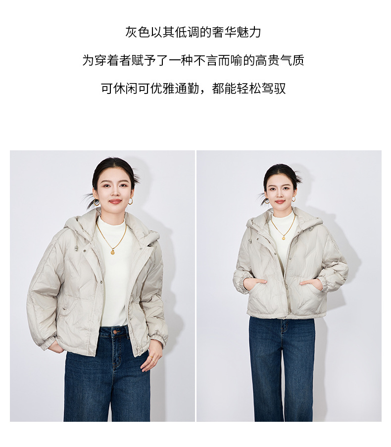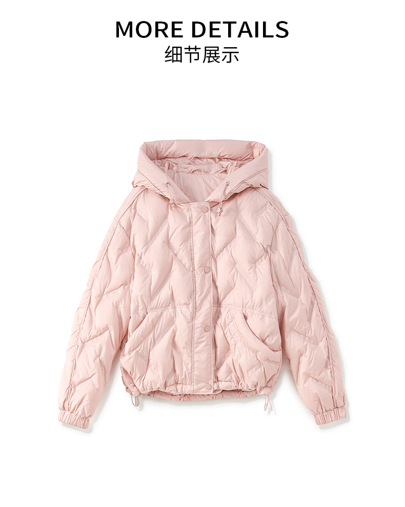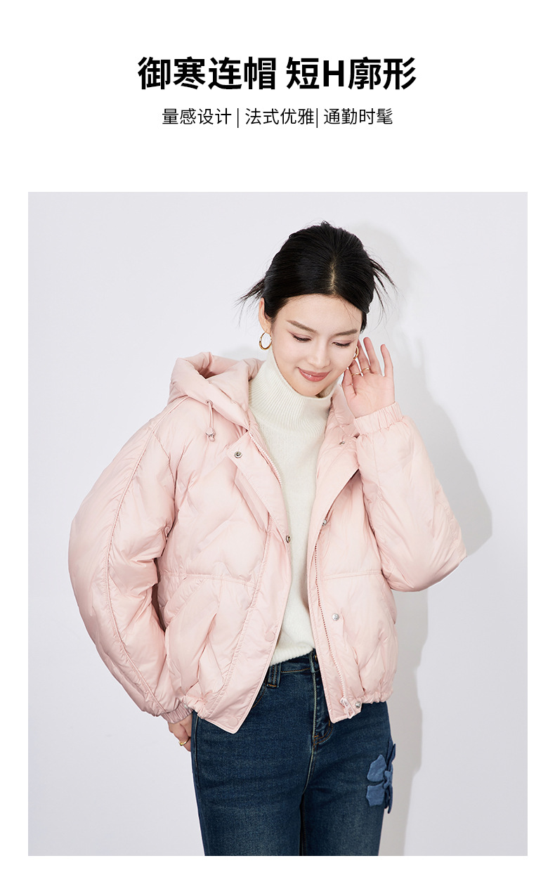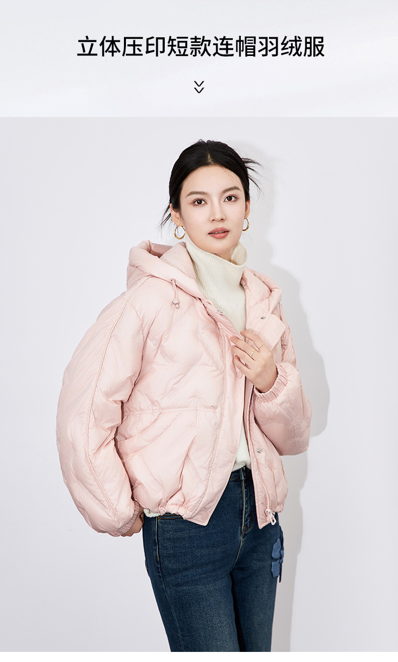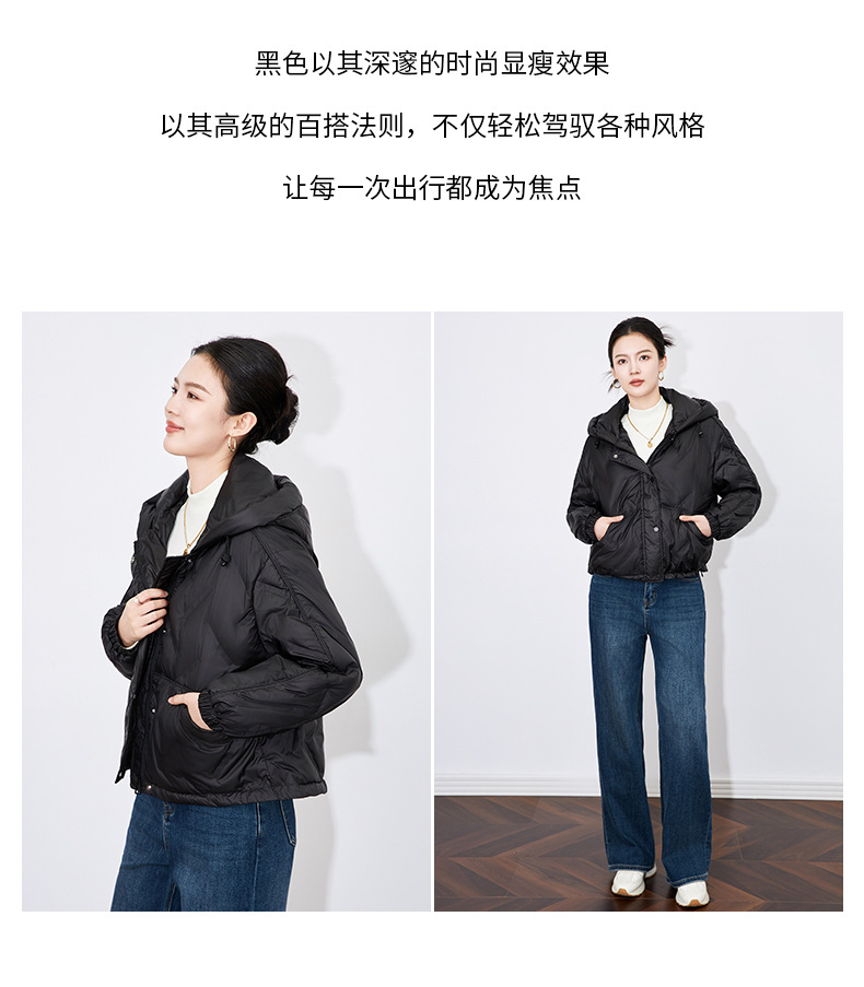 【高货wl】全新升级【铂金会员395/天猫529/差价134】(12828) 洛诗琳秋冬时尚轻暖长袖短款连帽衔缝线鸭绒保暖羽绒服