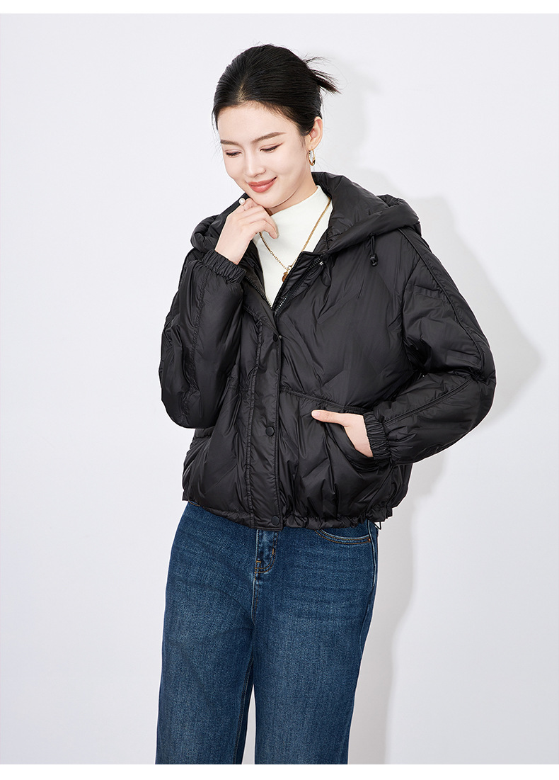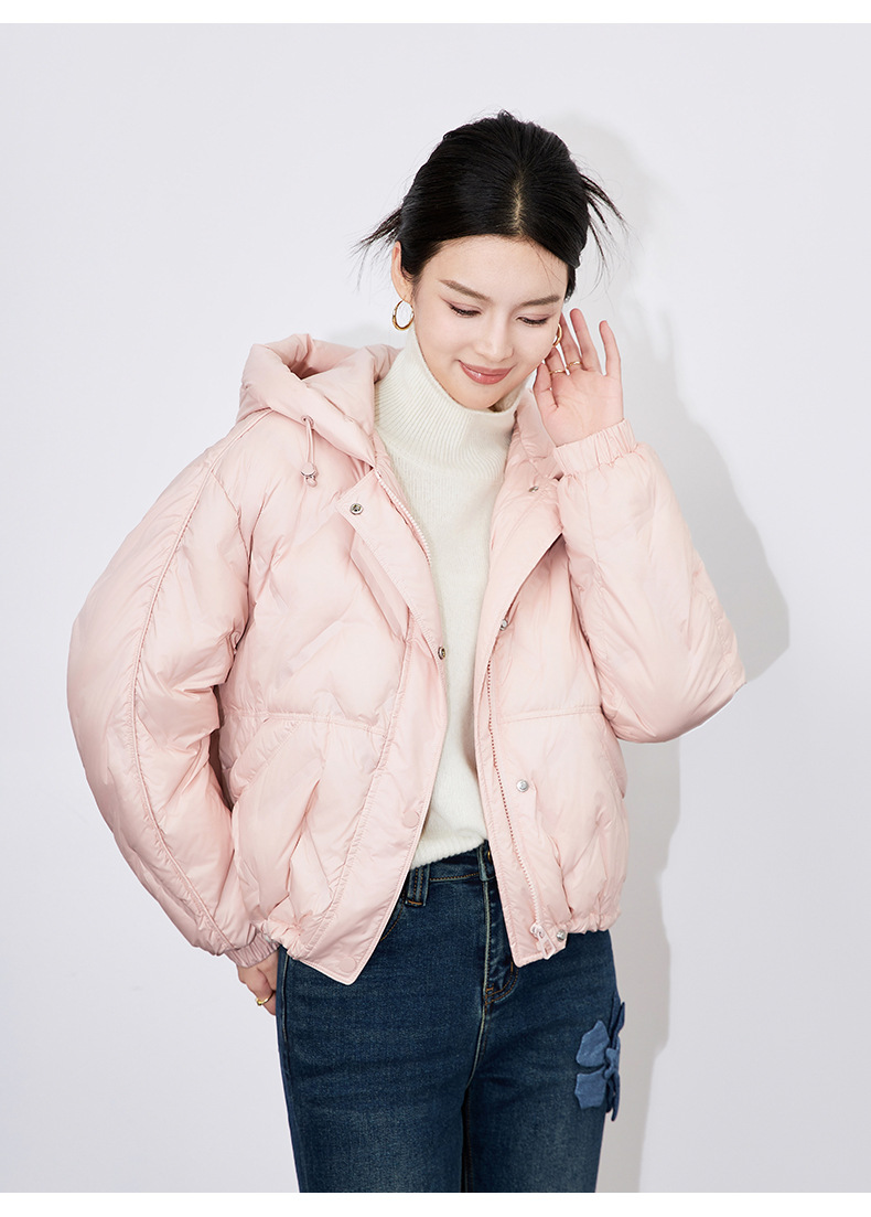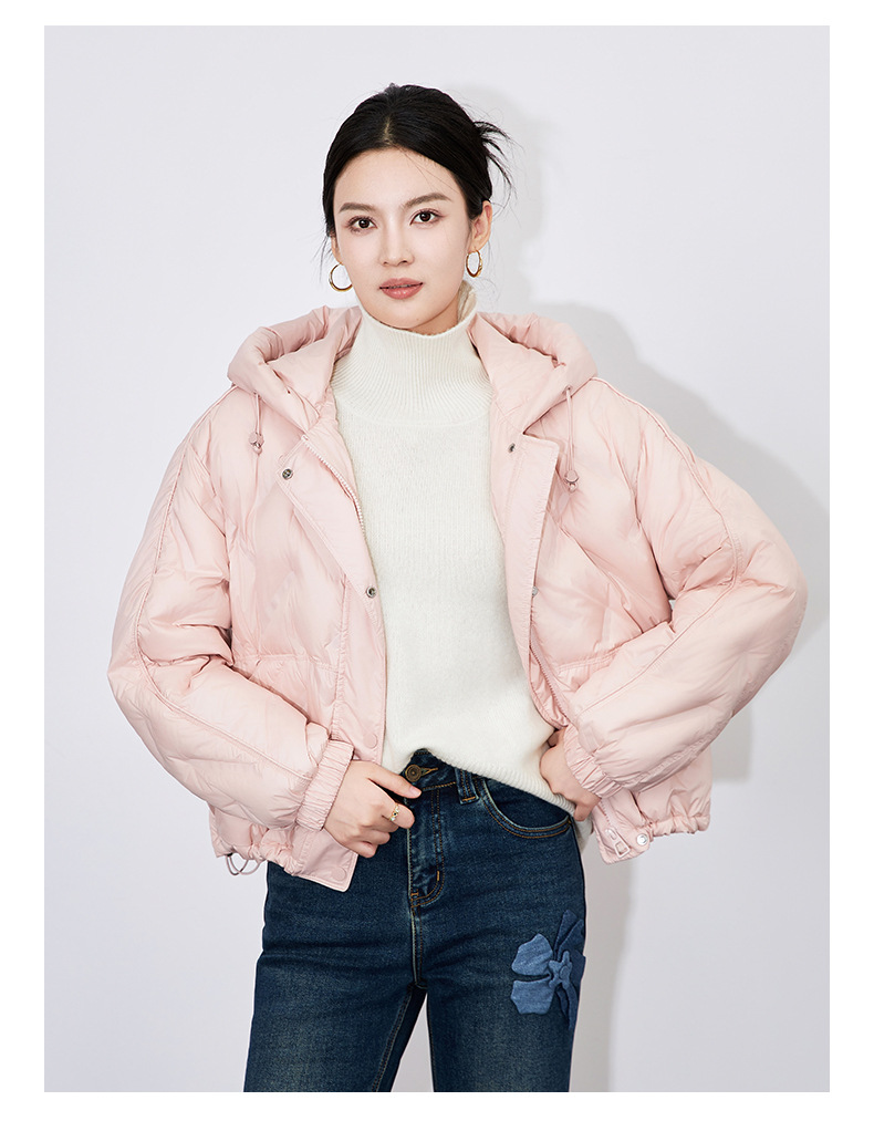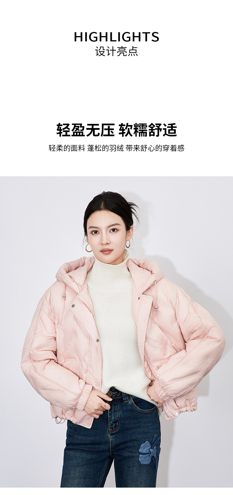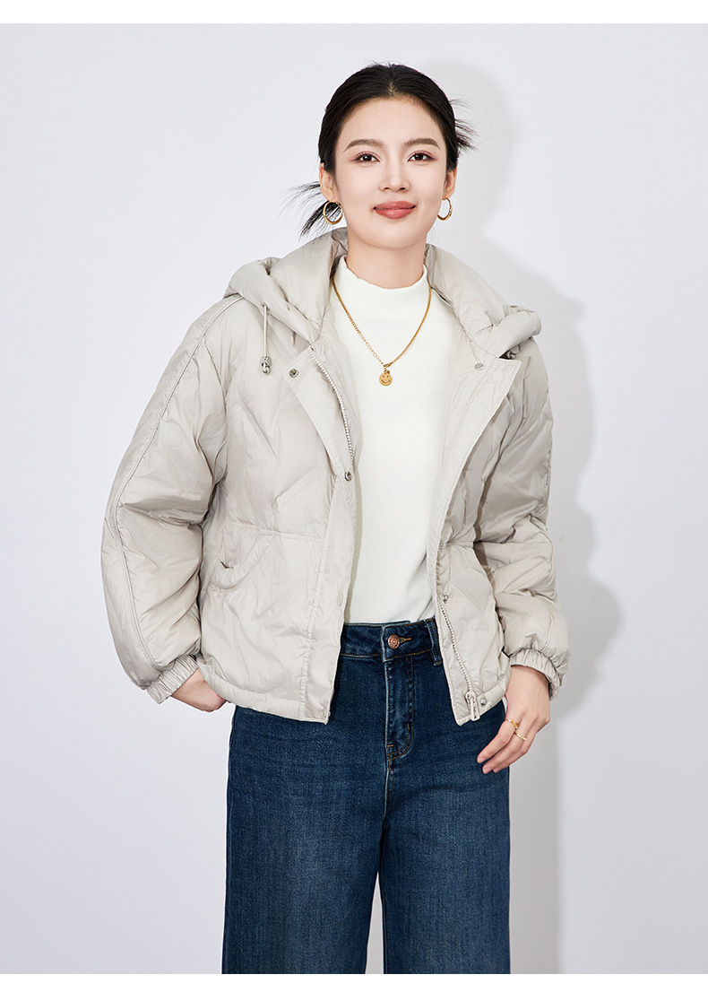【高货wl】全新升级【铂金会员395/天猫529/差价134】(12828) 洛诗琳秋冬时尚轻暖长袖短款连帽衔缝线鸭绒保暖羽绒服