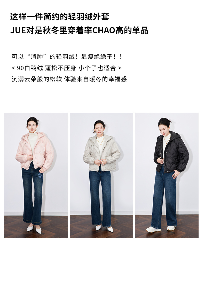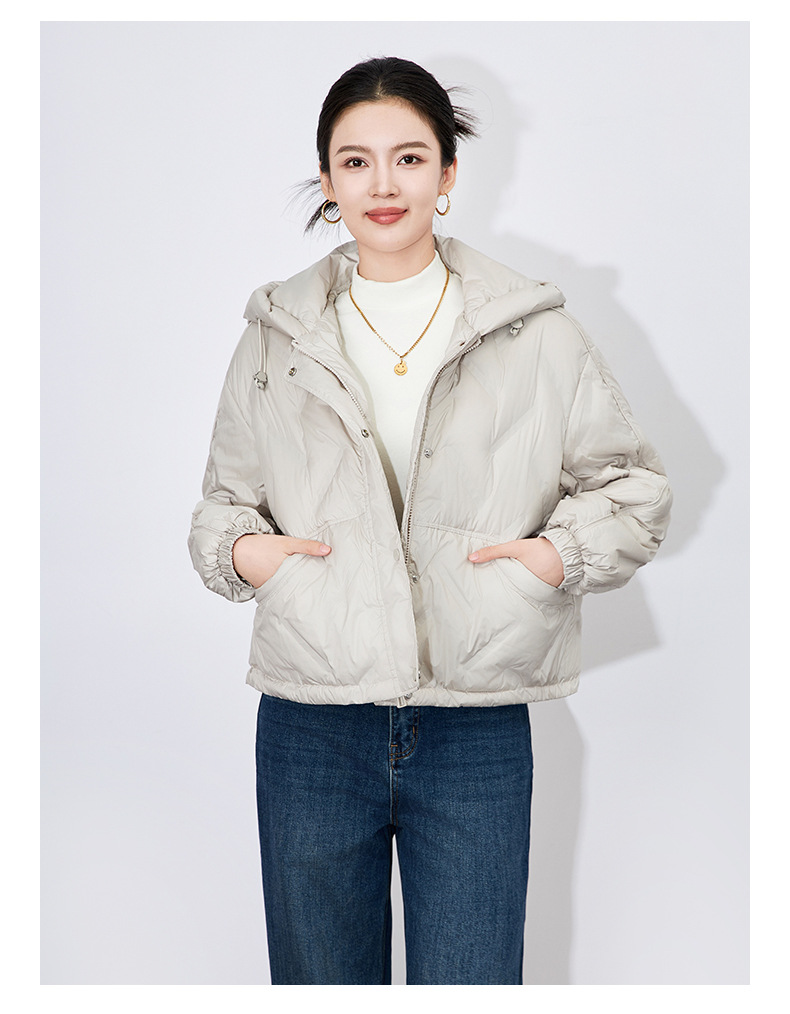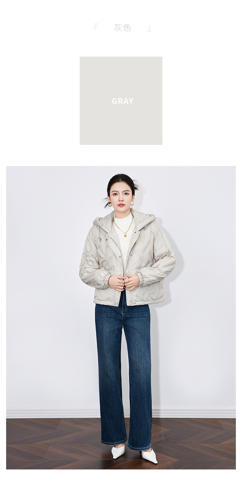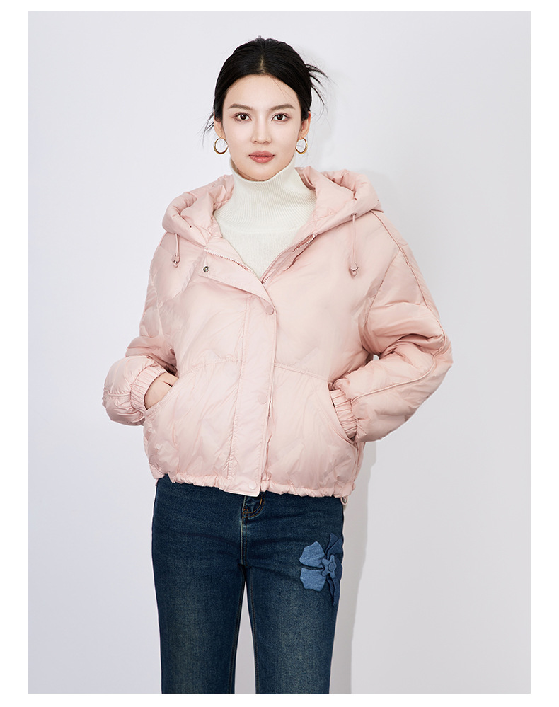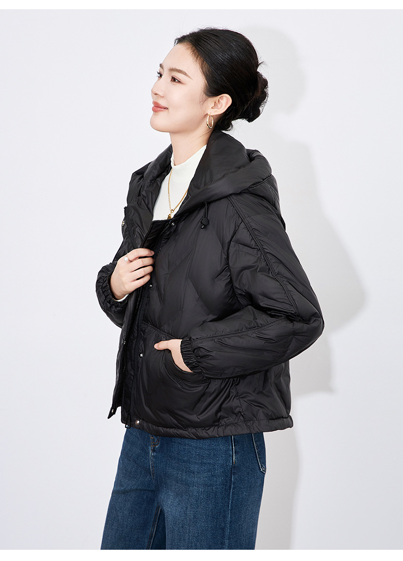 【高货wl】全新升级【铂金会员395/天猫529/差价134】(12828) 洛诗琳秋冬时尚轻暖长袖短款连帽衔缝线鸭绒保暖羽绒服