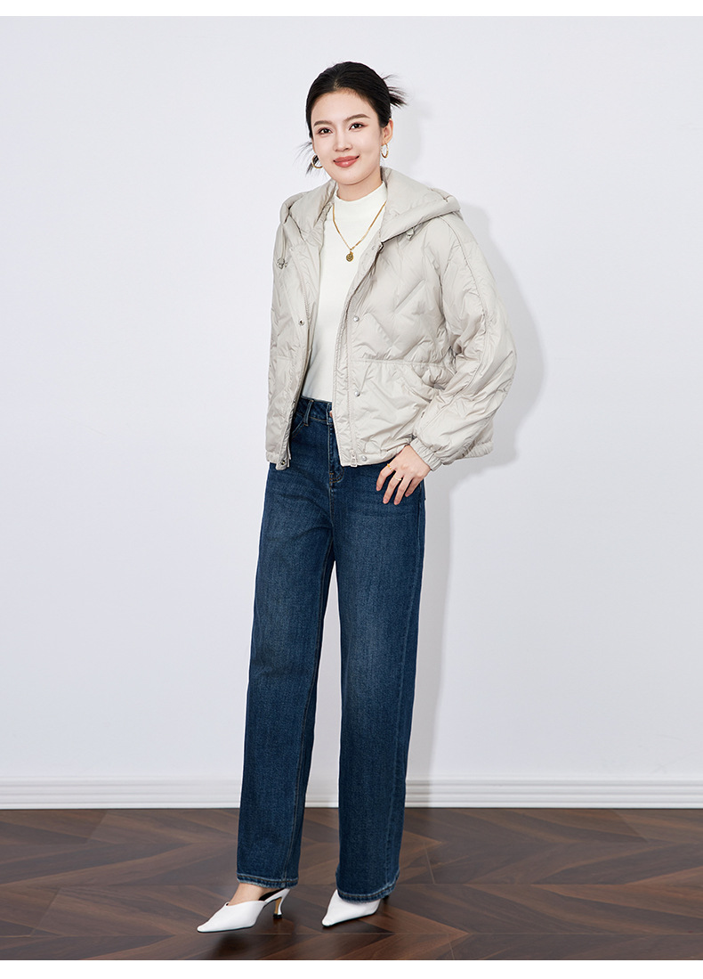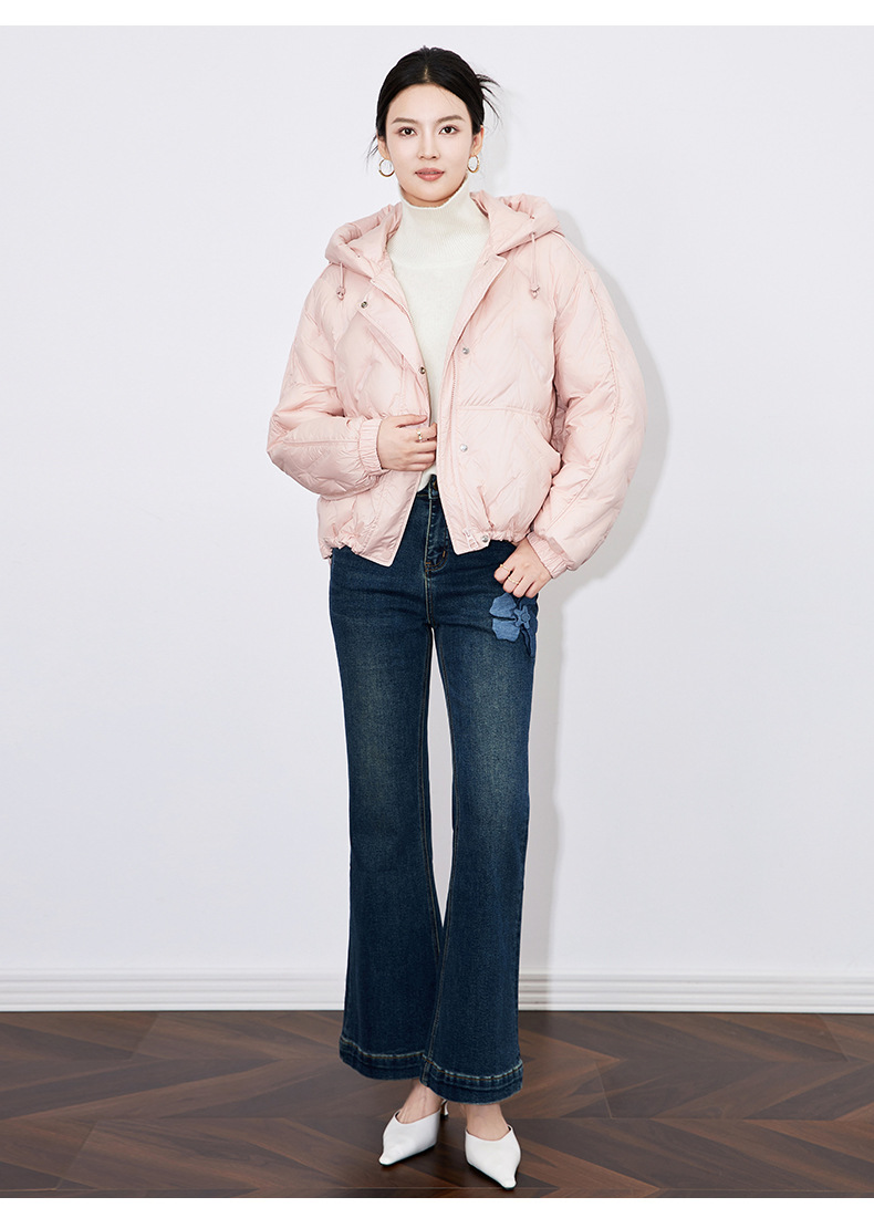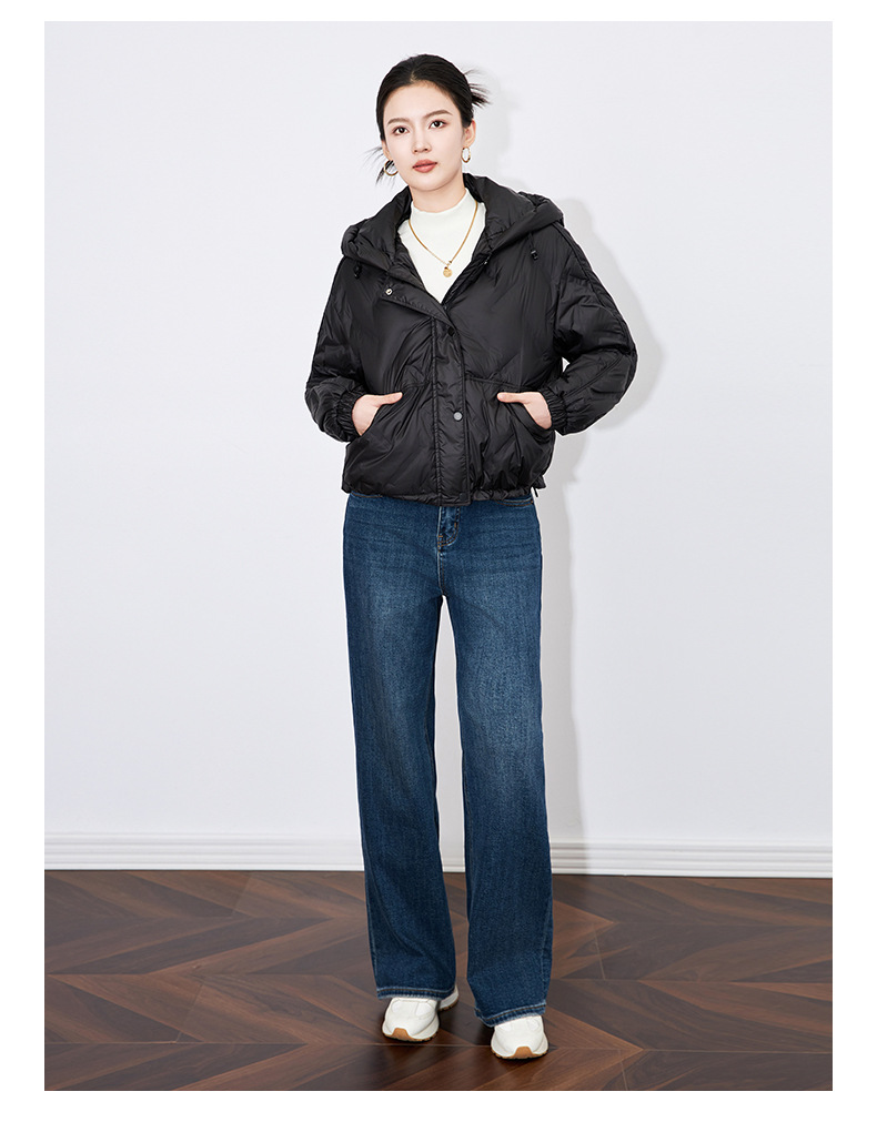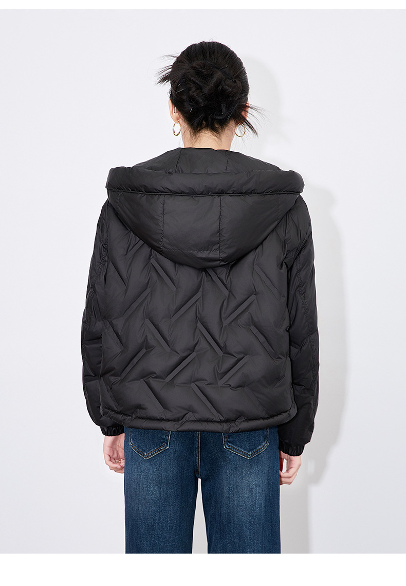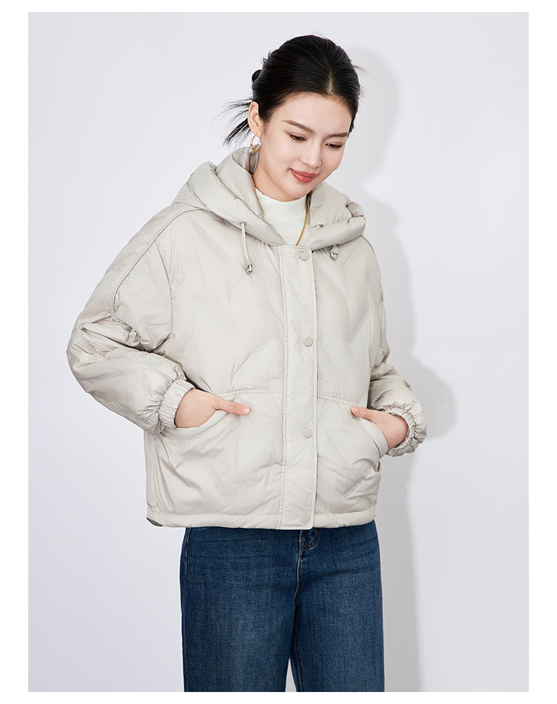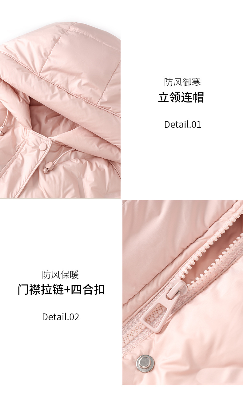 【高货wl】全新升级【铂金会员395/天猫529/差价134】(12828) 洛诗琳秋冬时尚轻暖长袖短款连帽衔缝线鸭绒保暖羽绒服