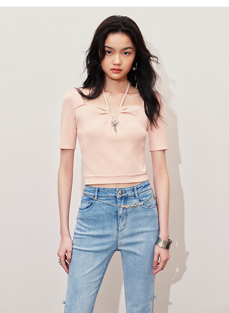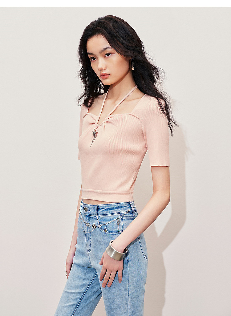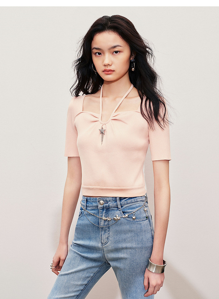温柔甜美风套头针织衫设计感夏季上衣女修身显瘦(货号:MS85SW064R0003)