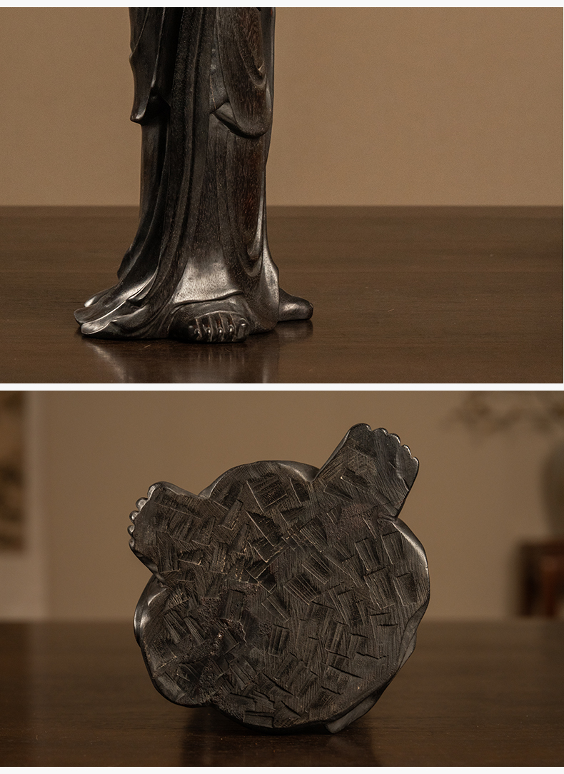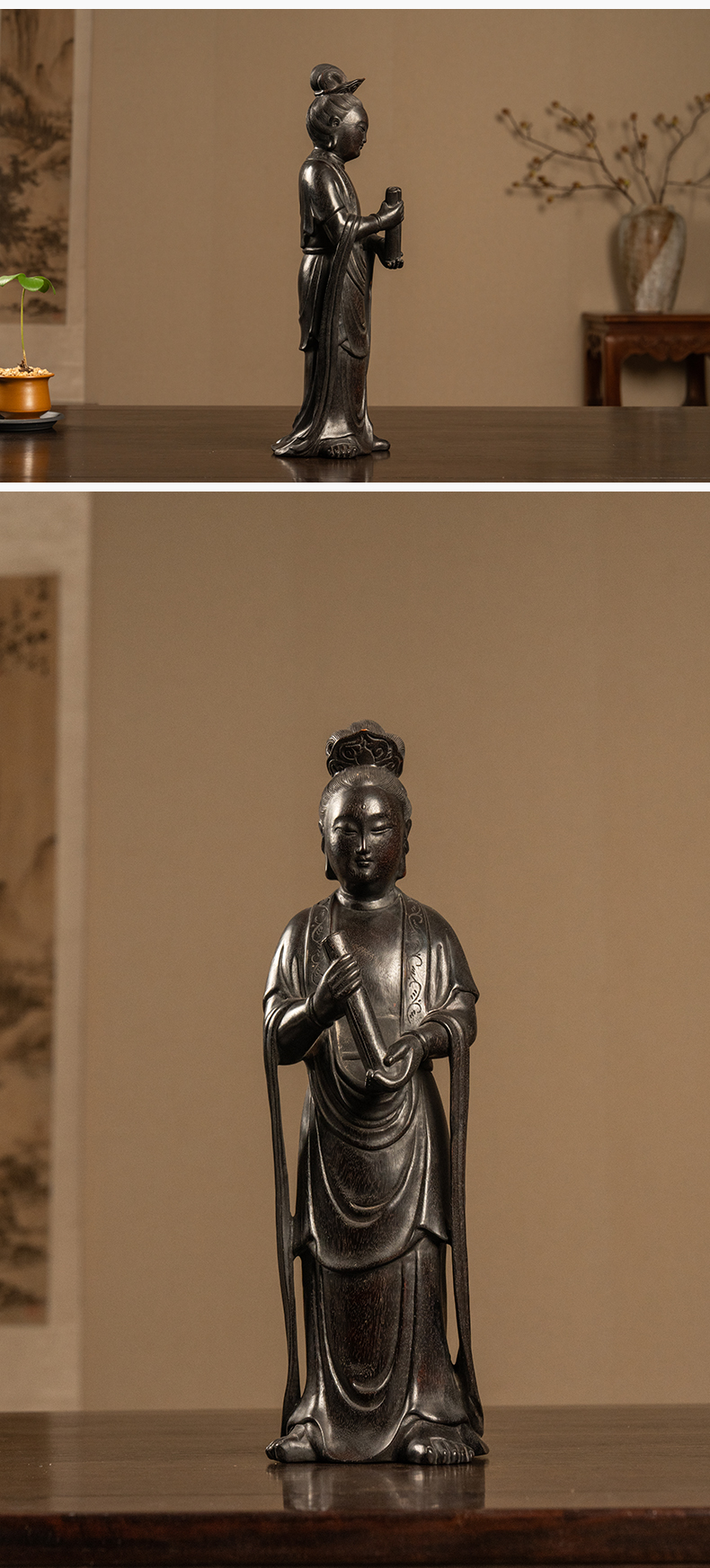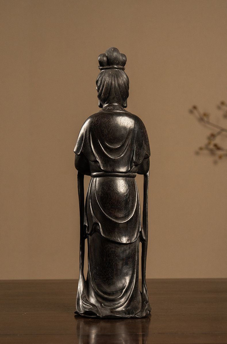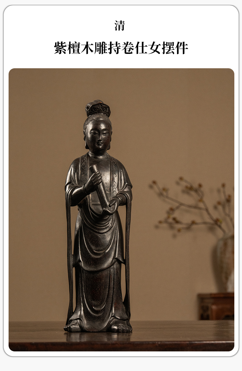 清 紫檀木雕持卷仕女摆件