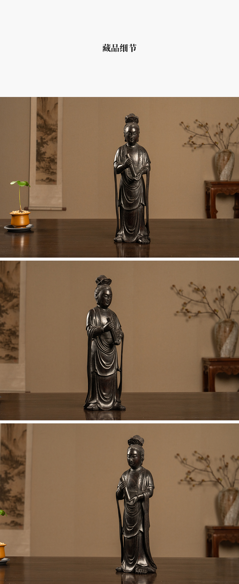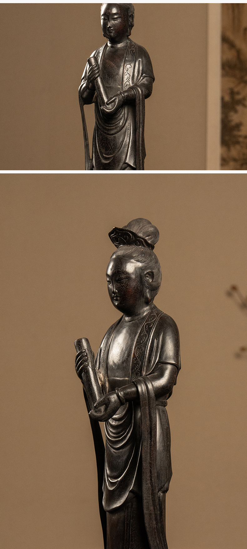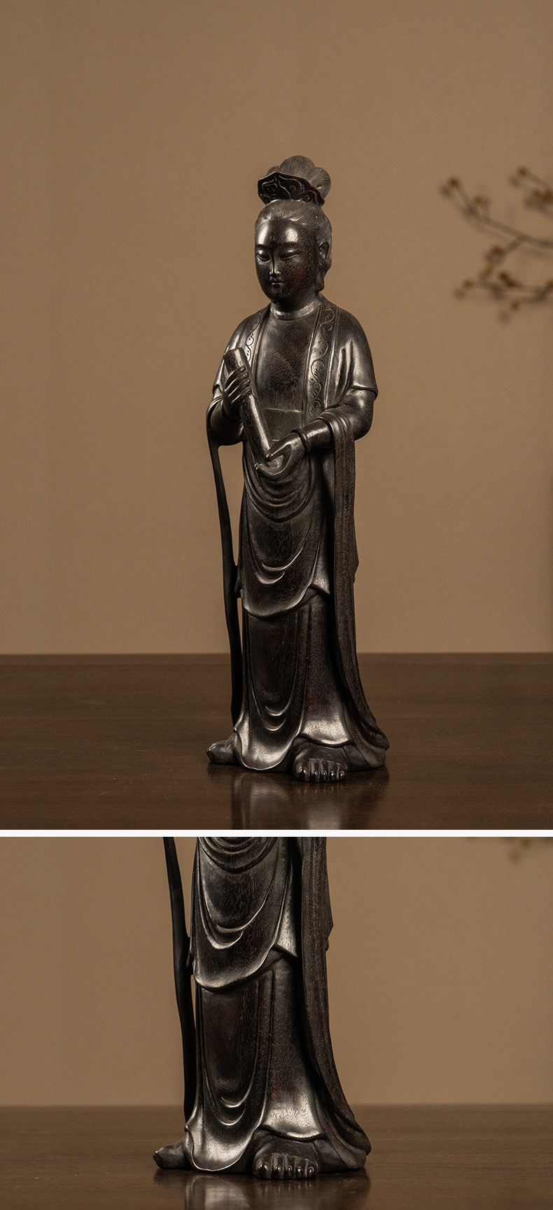 清 紫檀木雕持卷仕女摆件