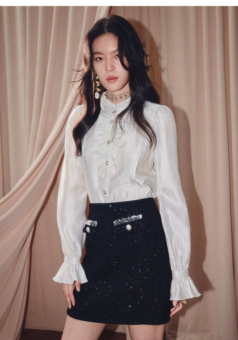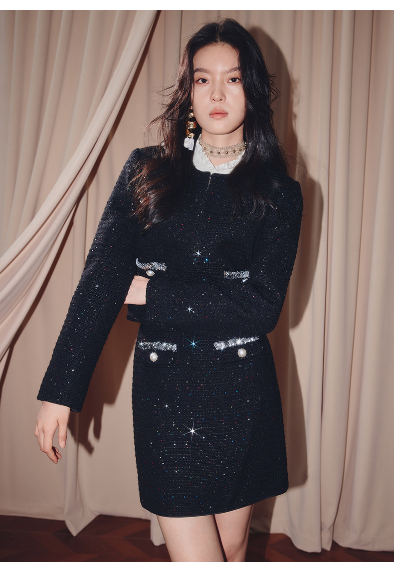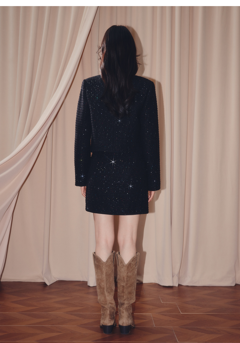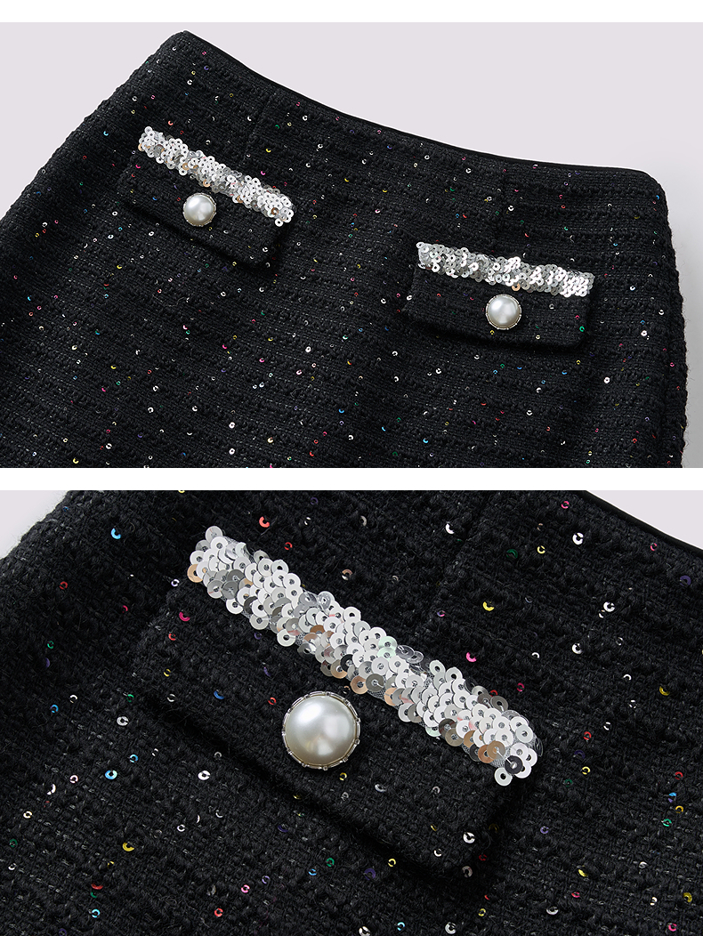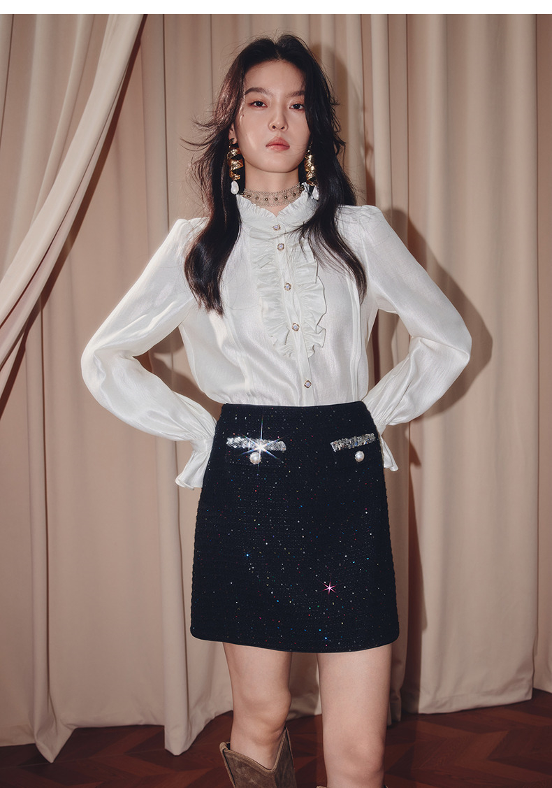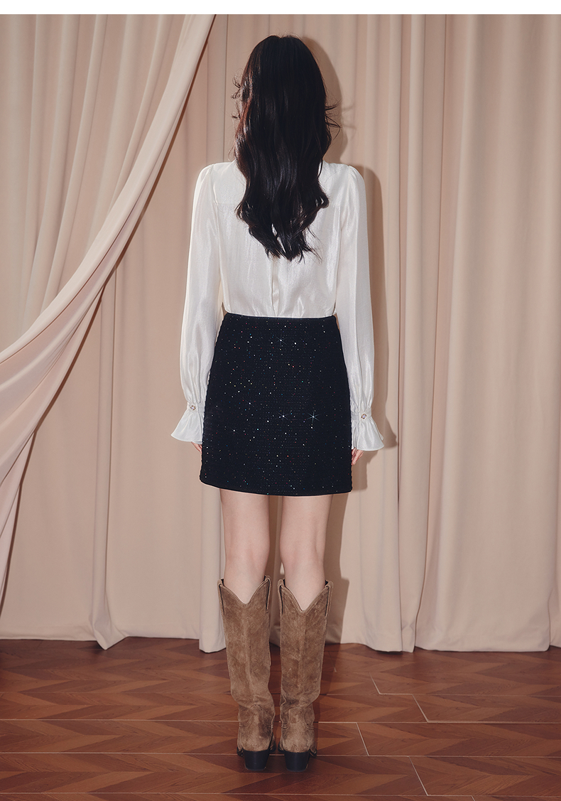 MAXRIENY优雅复古小香风收腰短款小A半裙25秋款烫钻a字高腰短裙(货号:MF86SK504)