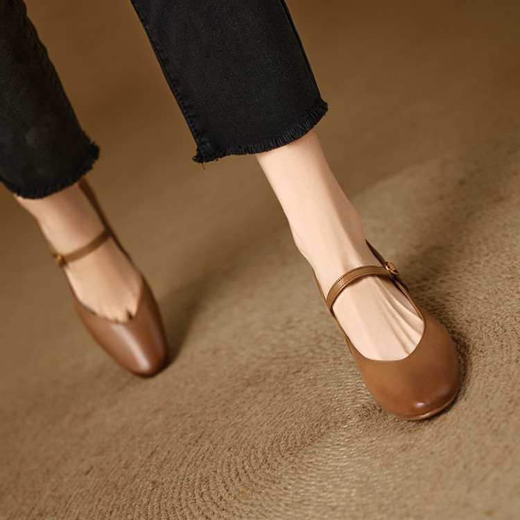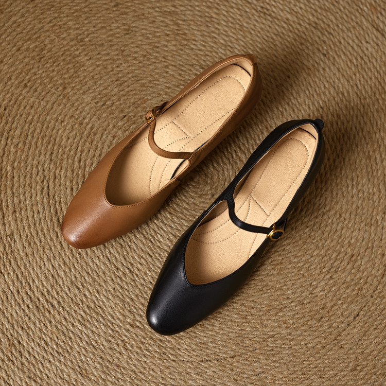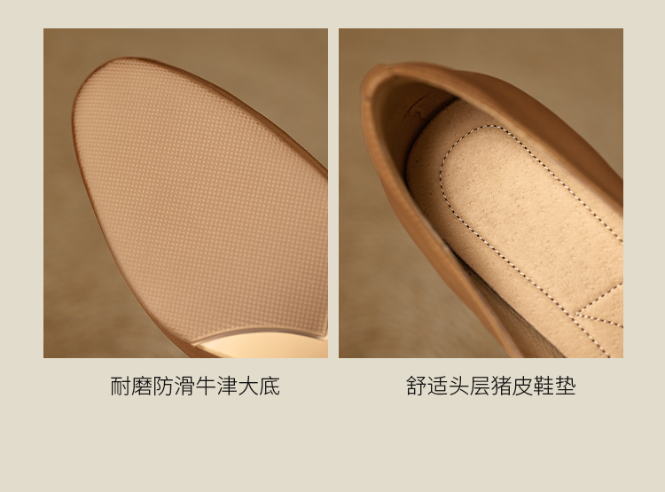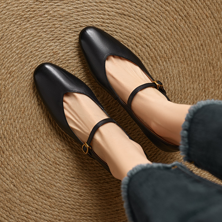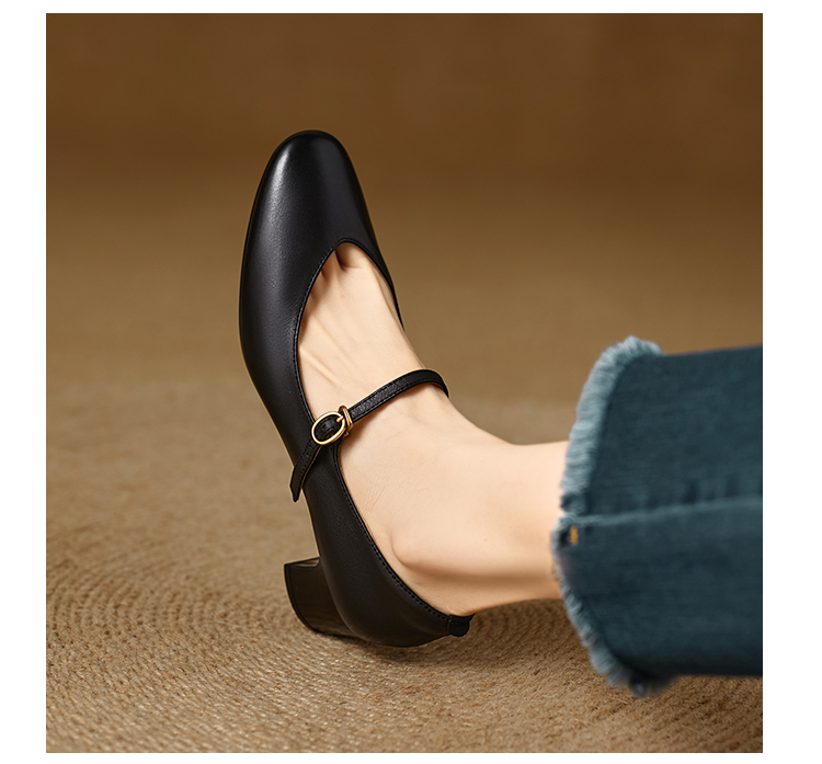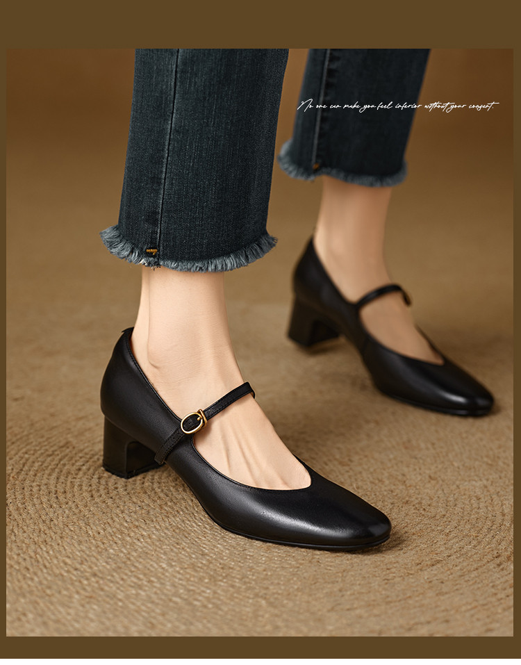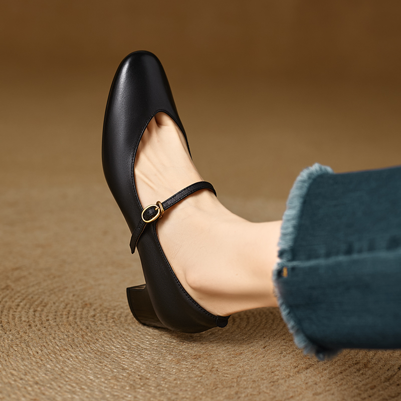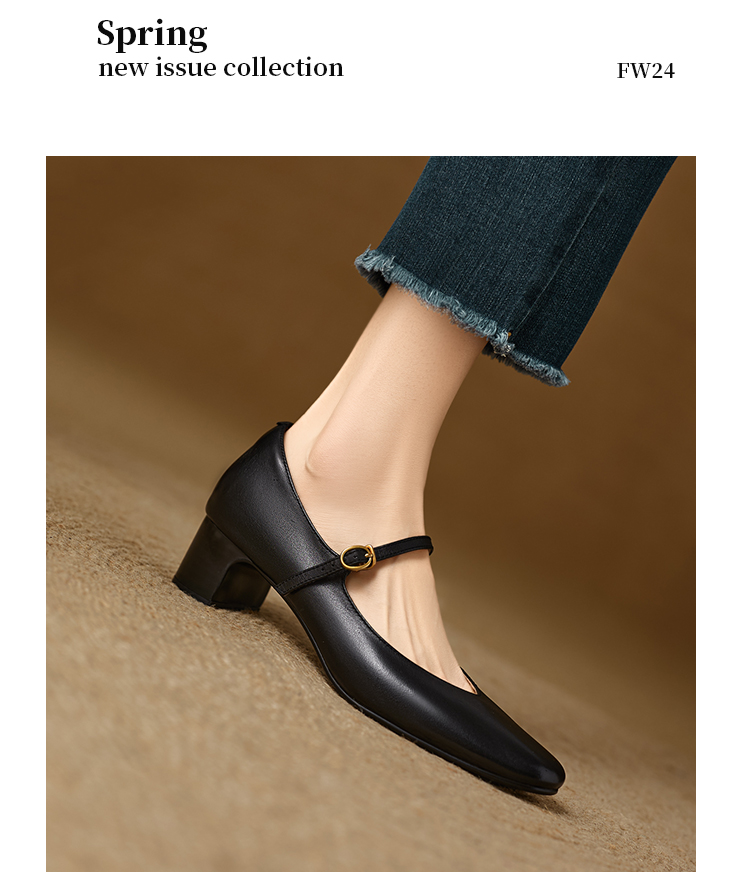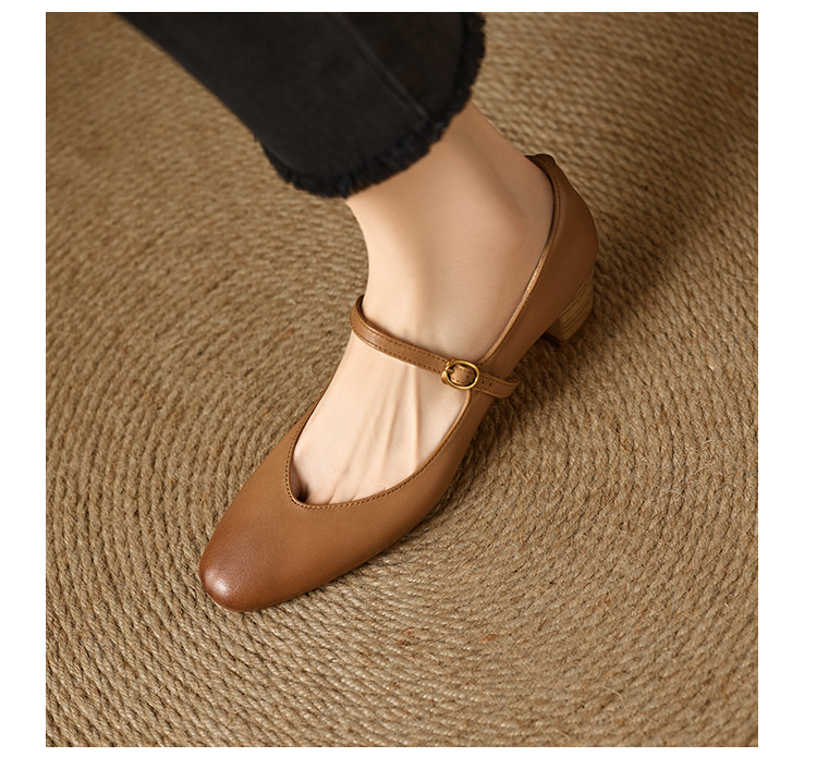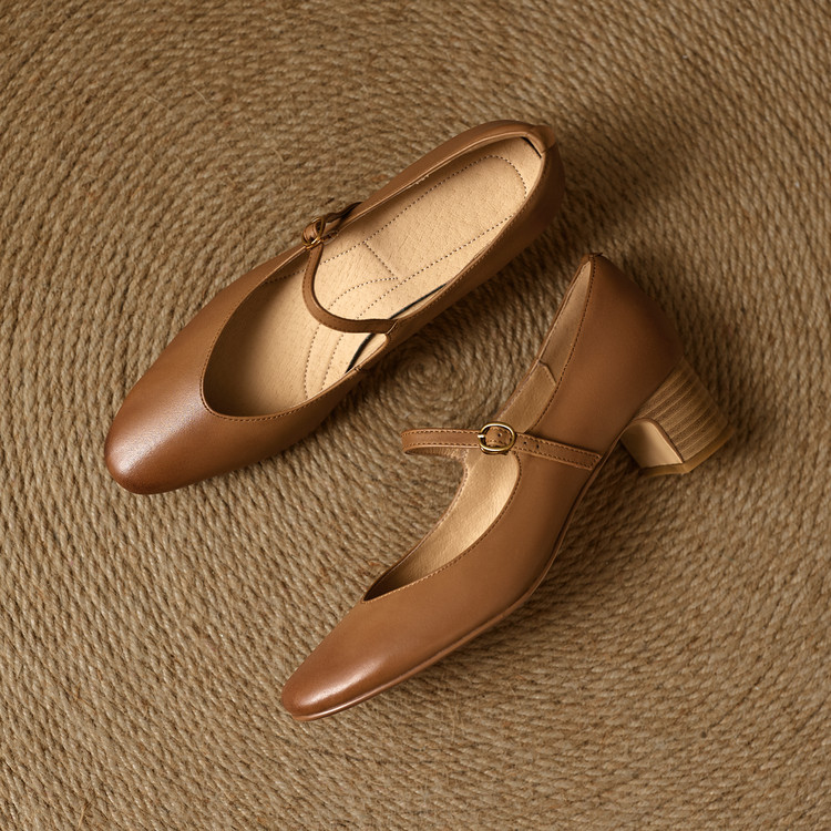 【预售5天】法式气质复古木纹跟浅口玛丽珍单鞋四季款牛皮百搭简约高跟鞋女MNLS&D2540