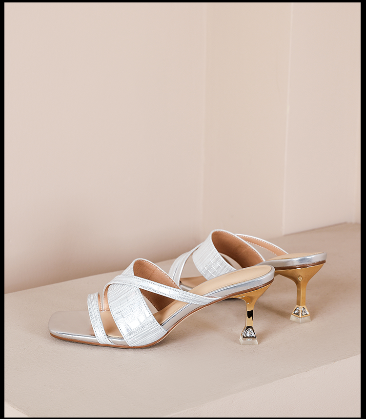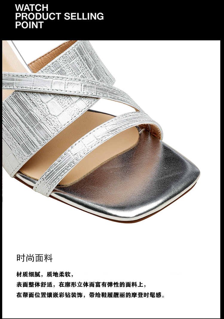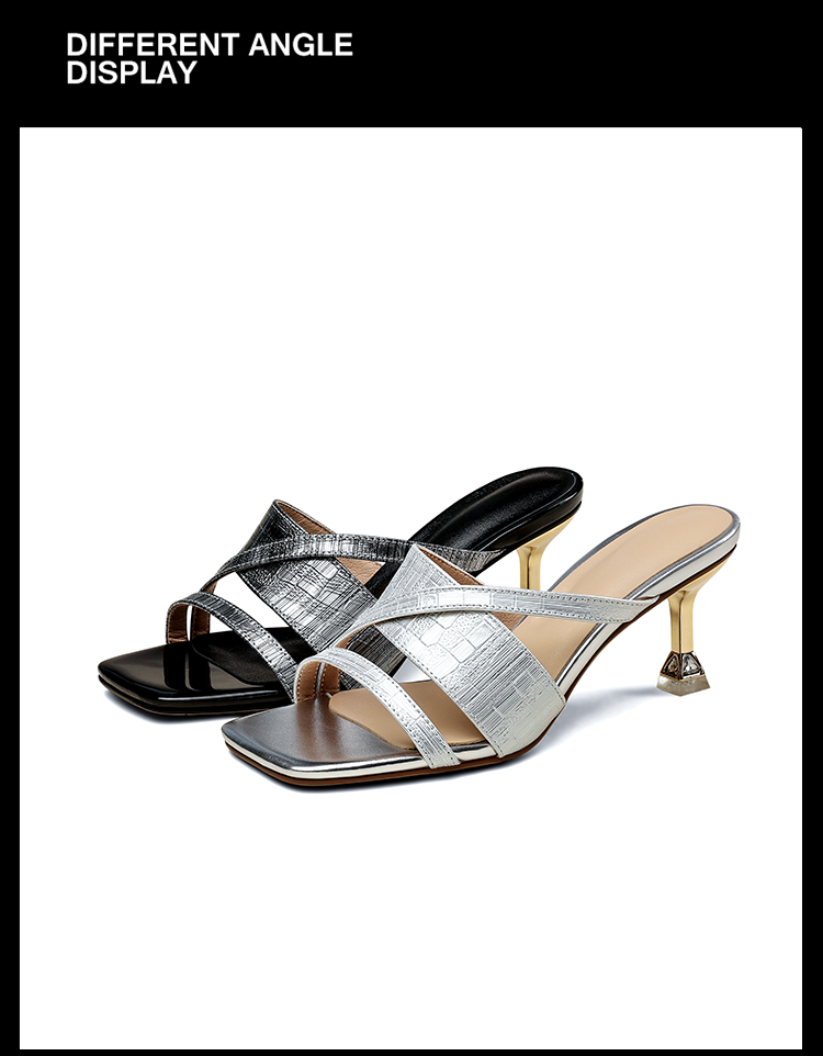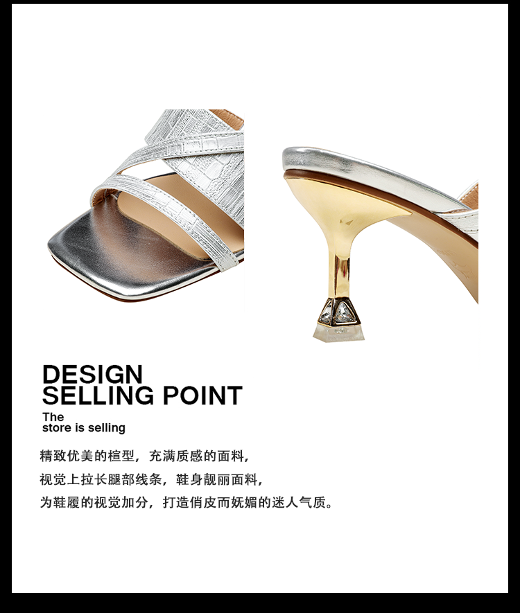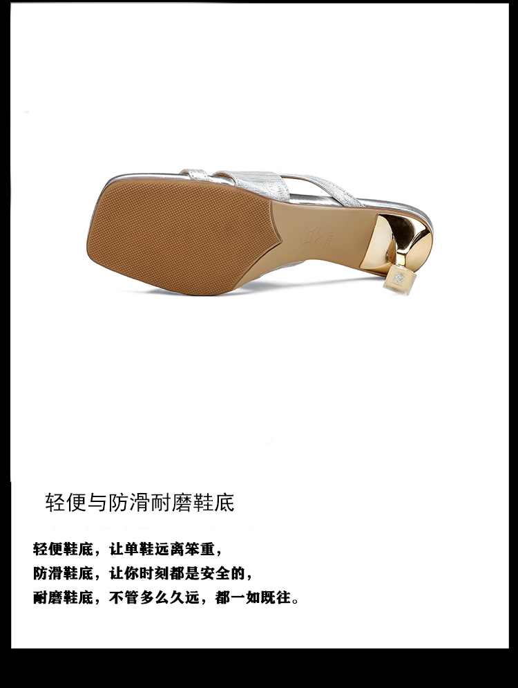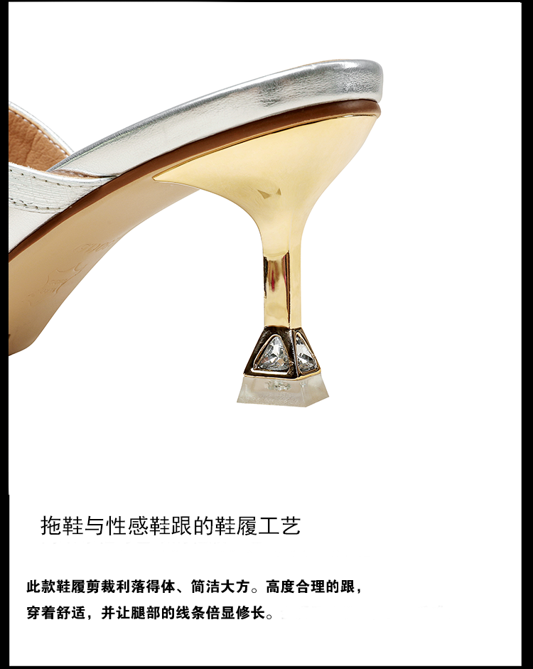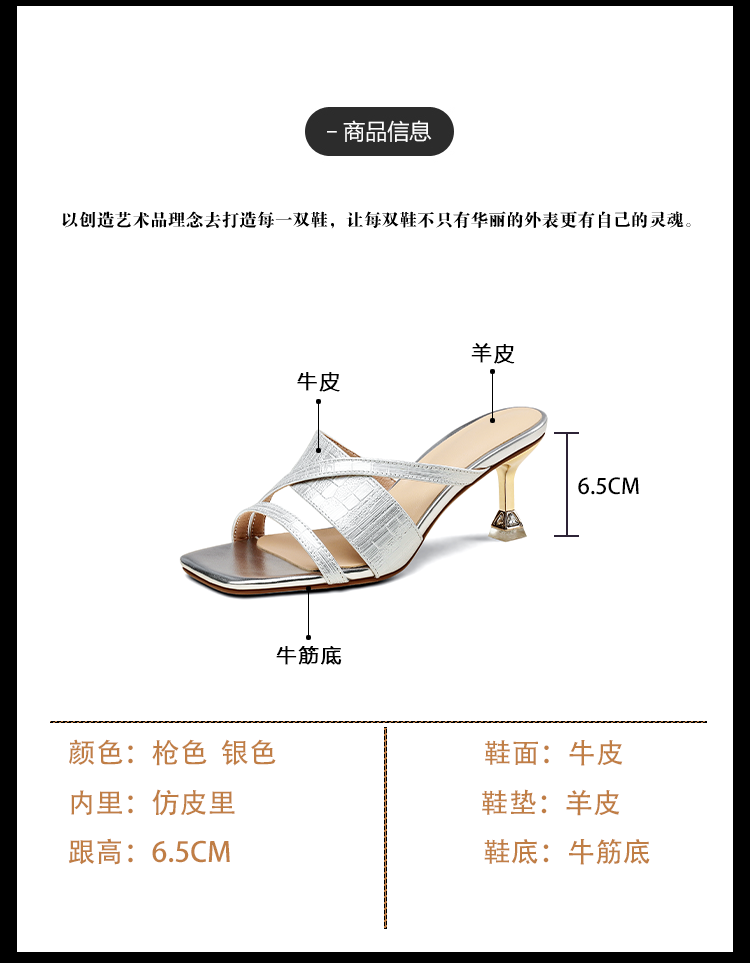 夏季新款,真皮银色枪色外穿简约细跟高跟凉拖鞋PLGZ-D109-6
