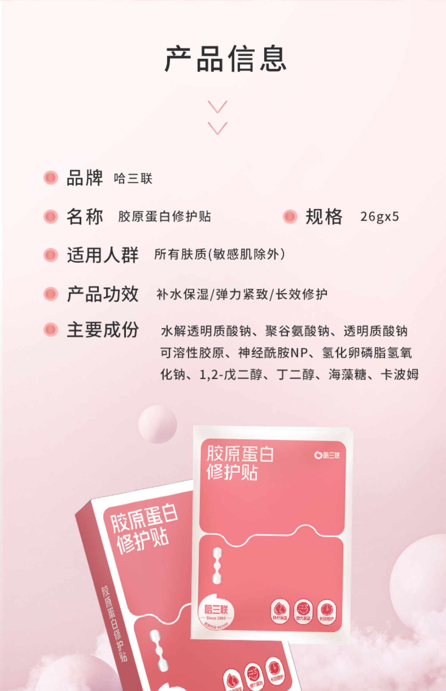 哈三联胶原蛋白修复贴 26g*5p(粉)妆