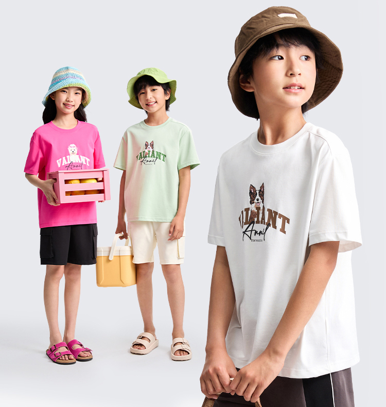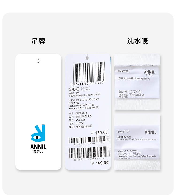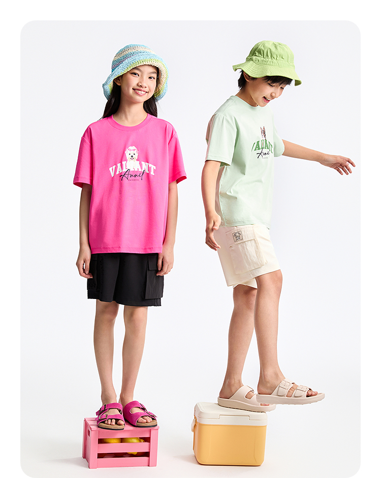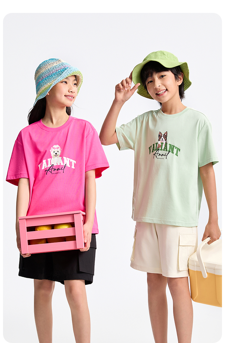 【凉感】男女童SORONA凉感圆领短袖针织衫夏季新款安奈儿童装EM521112