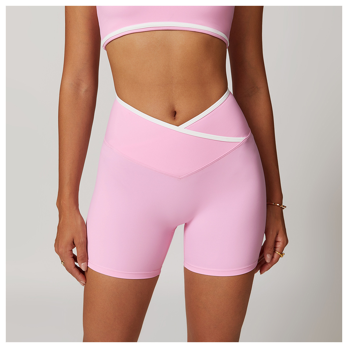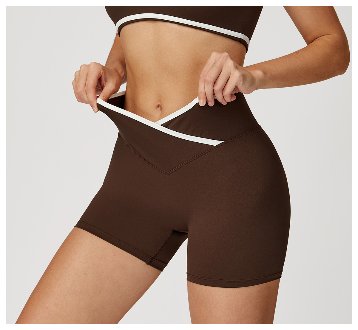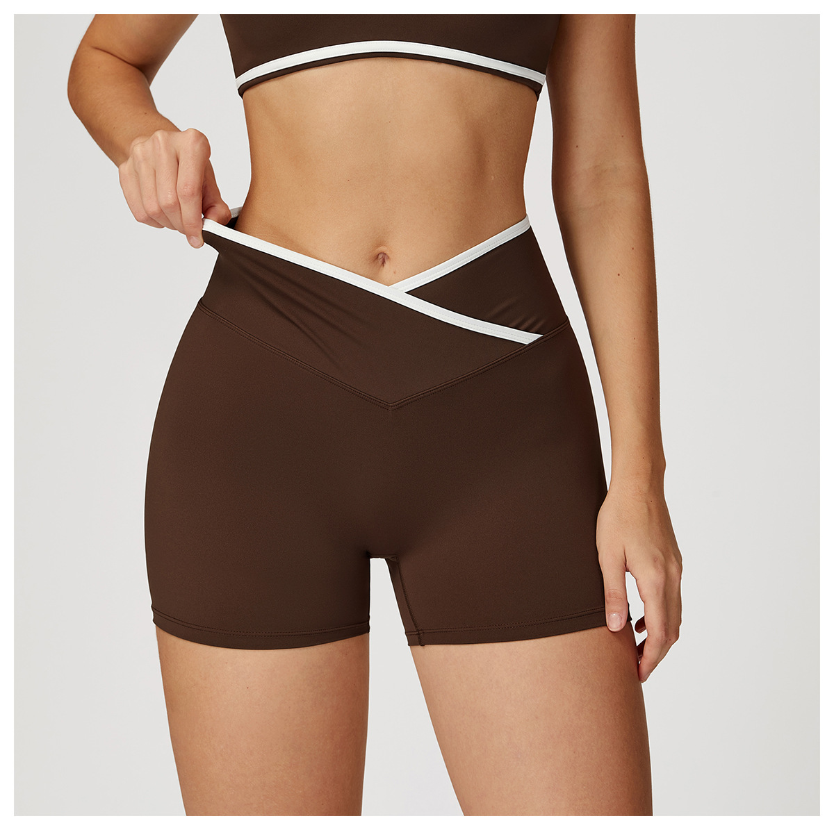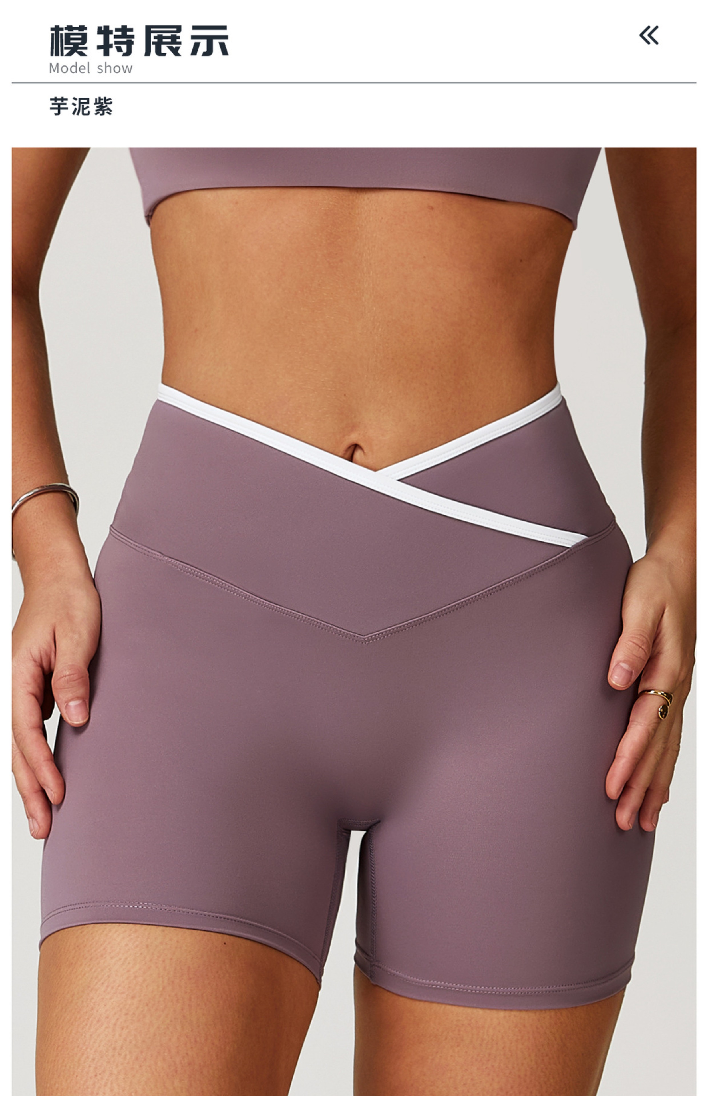 跃牌【轻匀系列】交叉高腰瑜伽短裤紧身裸感蜜桃提臀运动短裤女健身裤DK7109