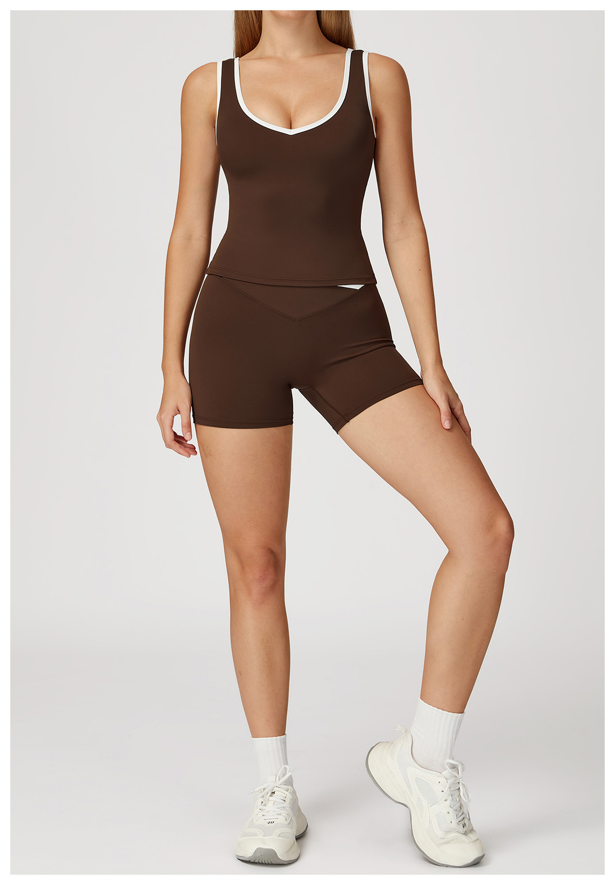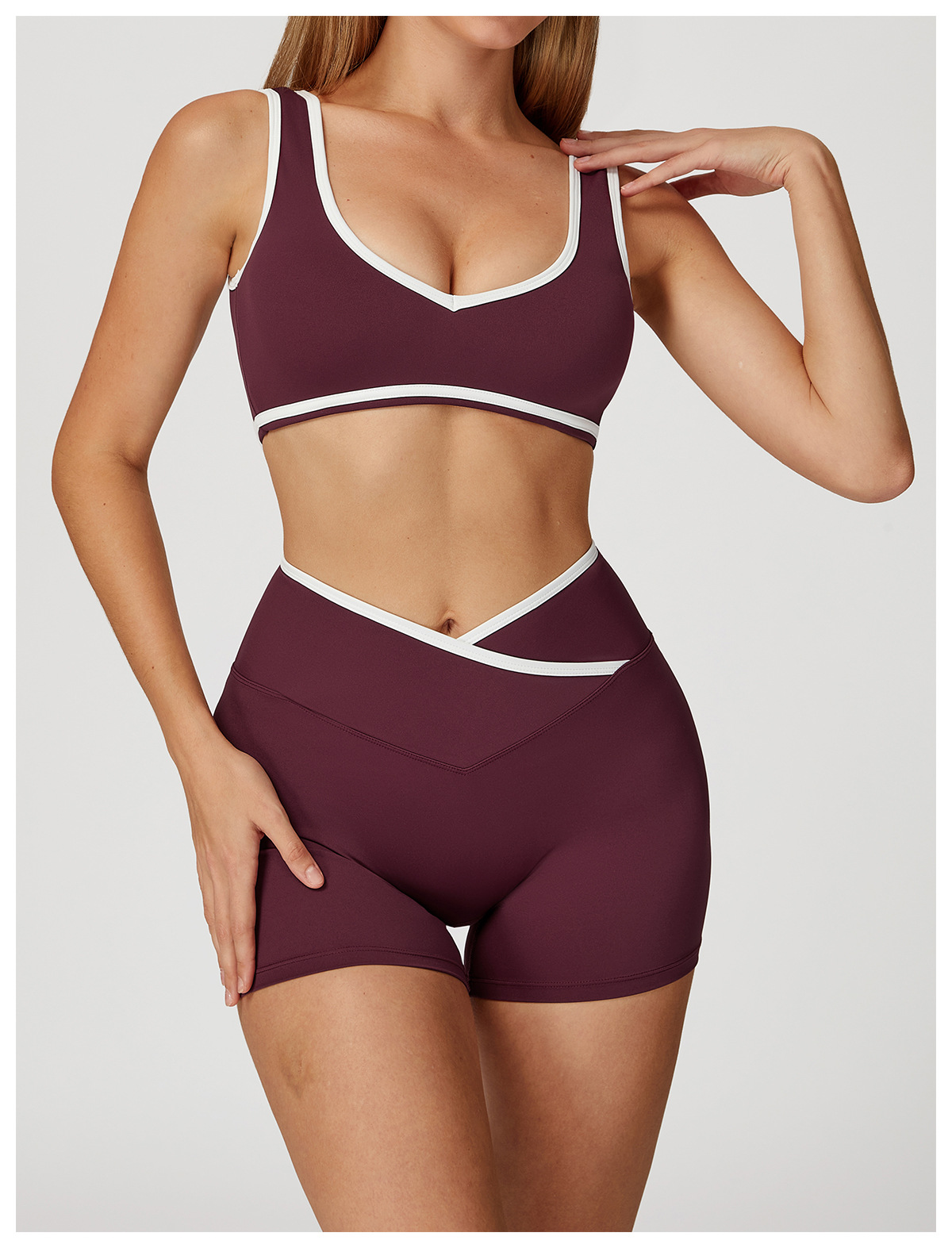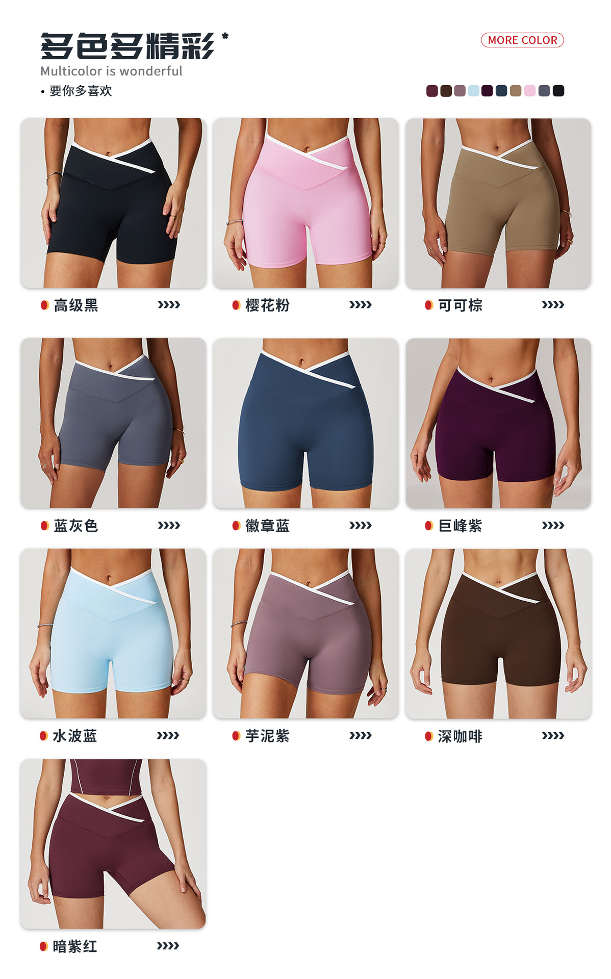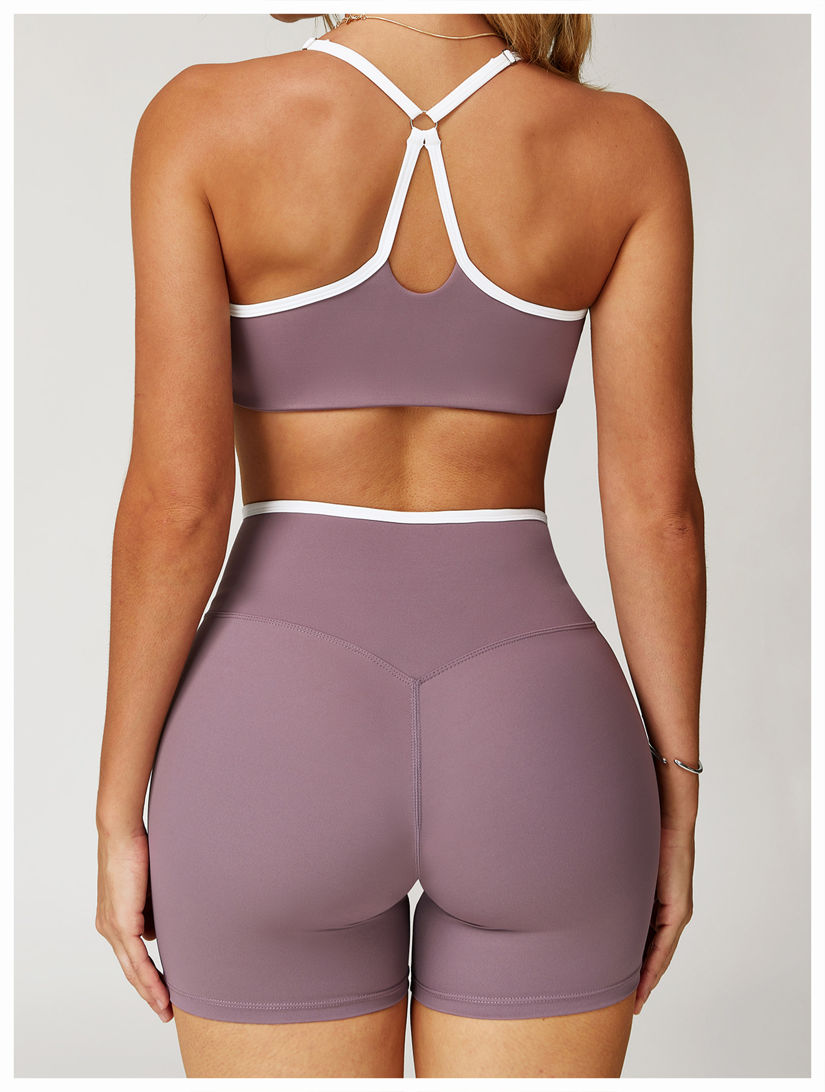 跃牌【轻匀系列】交叉高腰瑜伽短裤紧身裸感蜜桃提臀运动短裤女健身裤DK7109
