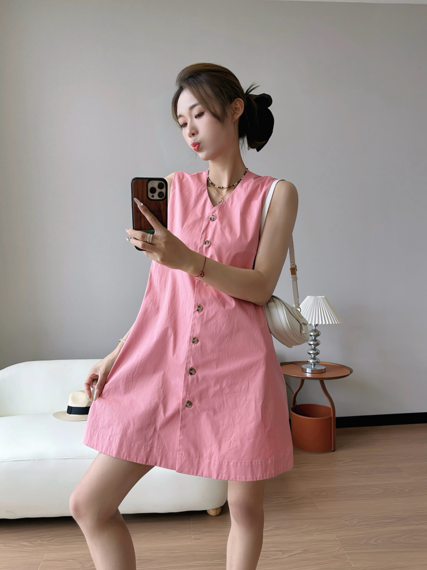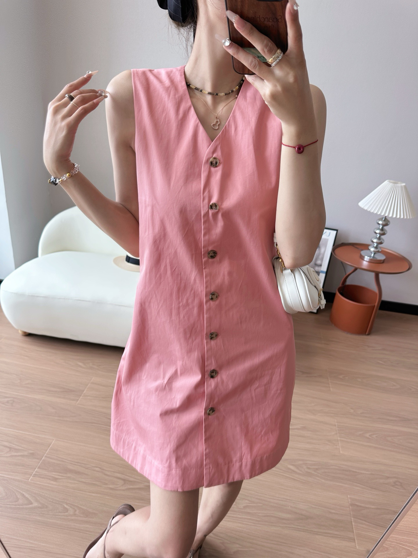 🔺CO*S夏季V领棉质无袖背心裙~)这条背心裙也太文艺太温柔了吧,是人群中一眼就能看到的存在!上身遮肉显瘦不说,松弛高级的气场不请自来,日常通勤独家是完全不在话下的,就算是一些隆重点的场合,带个妆,没有它控不了的场!粉色真的太太太温柔了