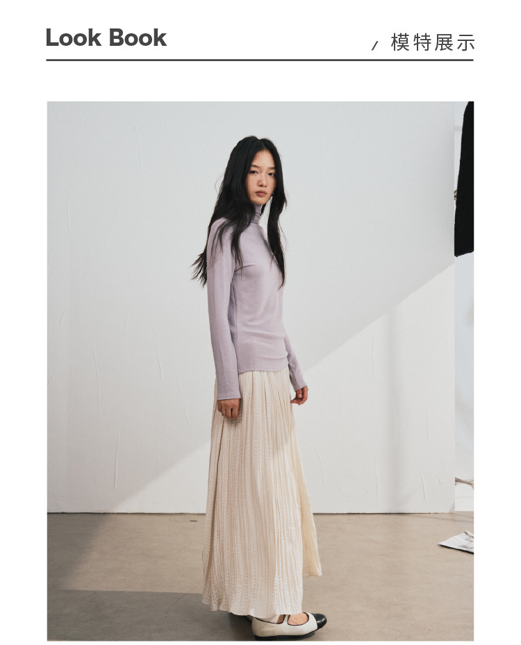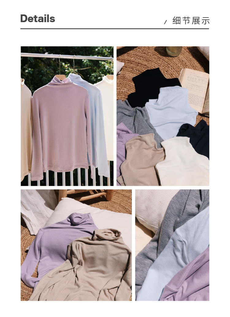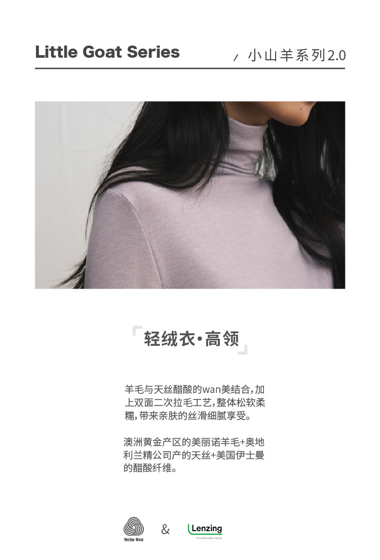 【2025秋冬新品】天丝醋酸羊毛・高领轻绒衣 莱赛尔打底衫上衣简约纯色保暖长袖T恤