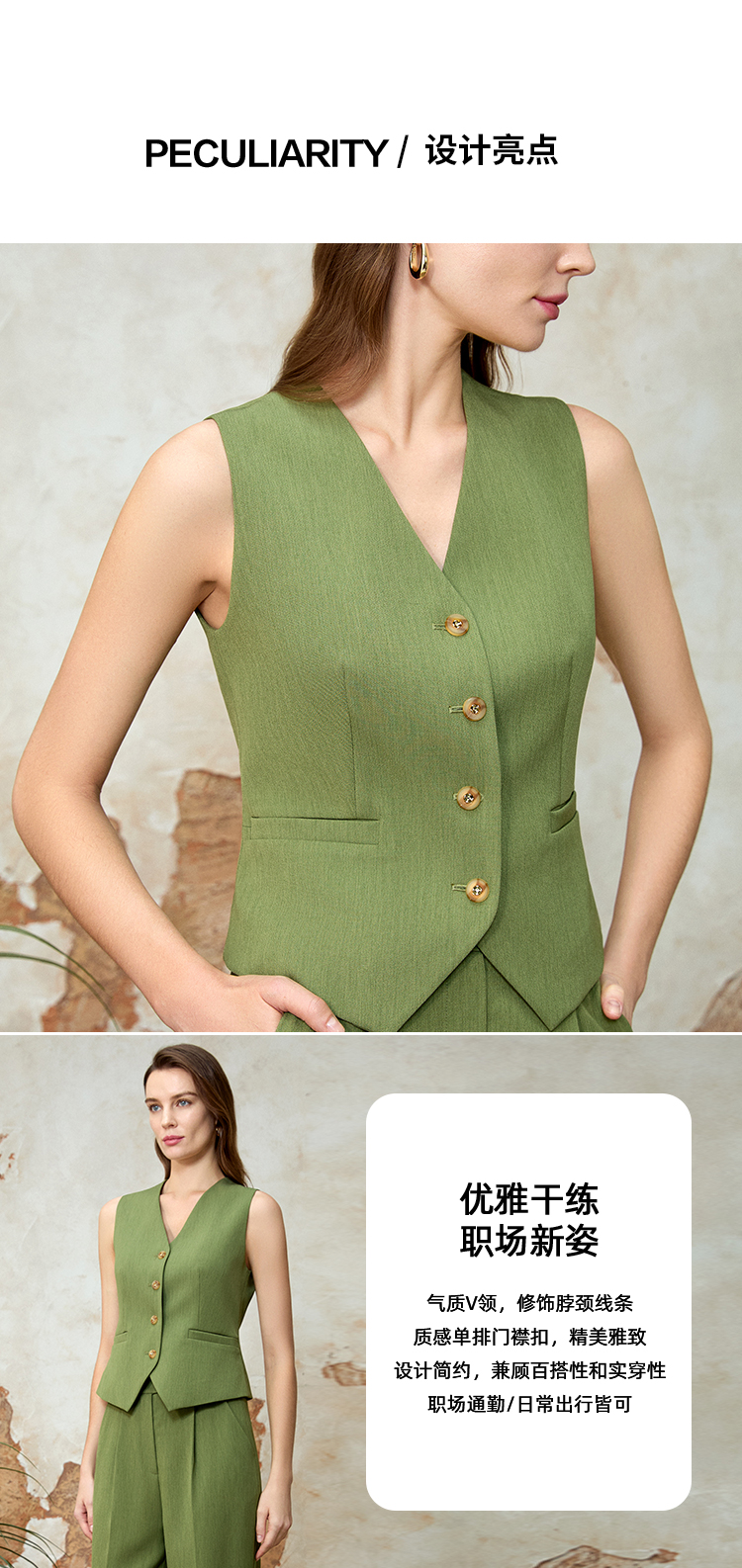 EITIE爱特爱气质通勤V领百搭无袖马甲外套春季新款8103807
