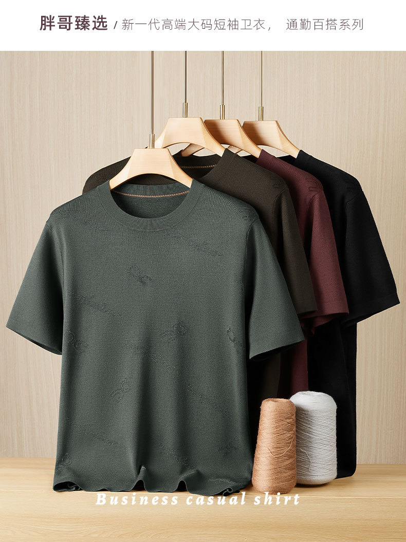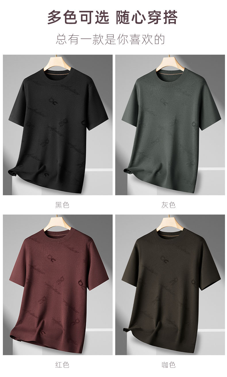 【DDS】大依优型大码男装秋季圆领提花短袖时尚休闲商务针织打底衫短袖