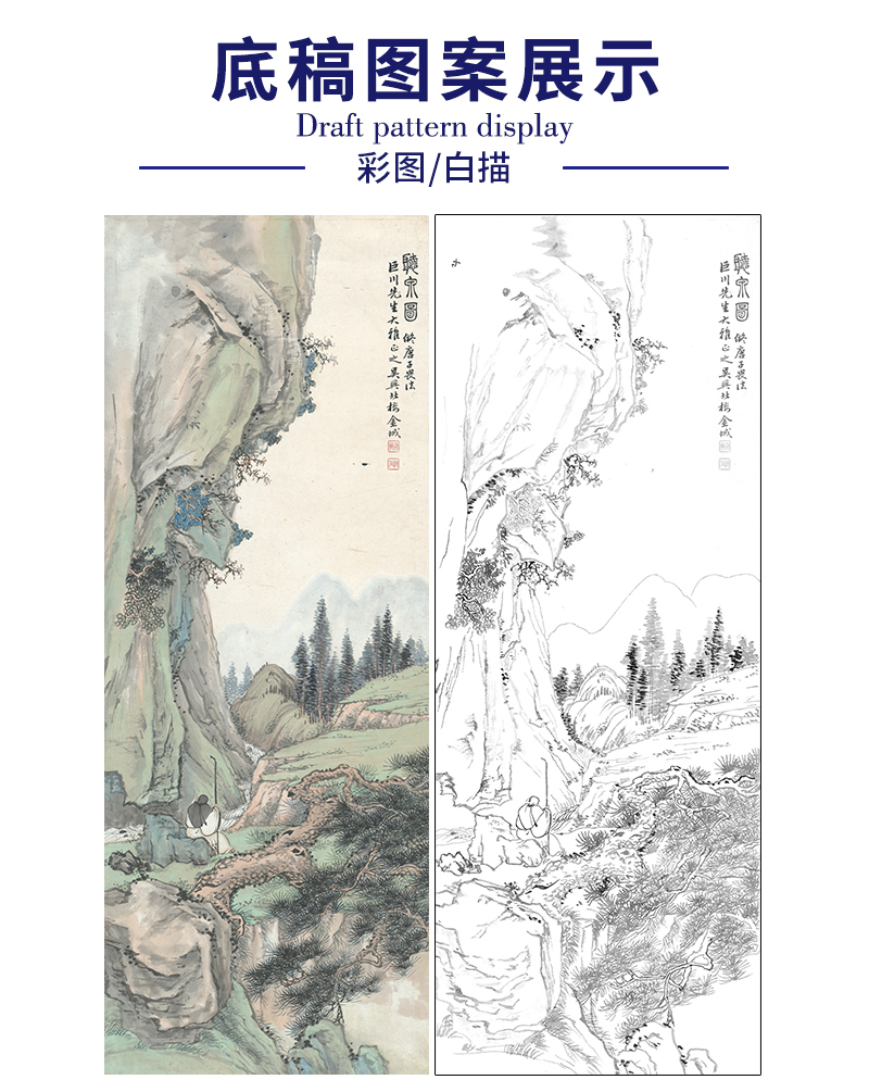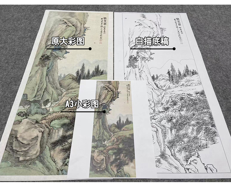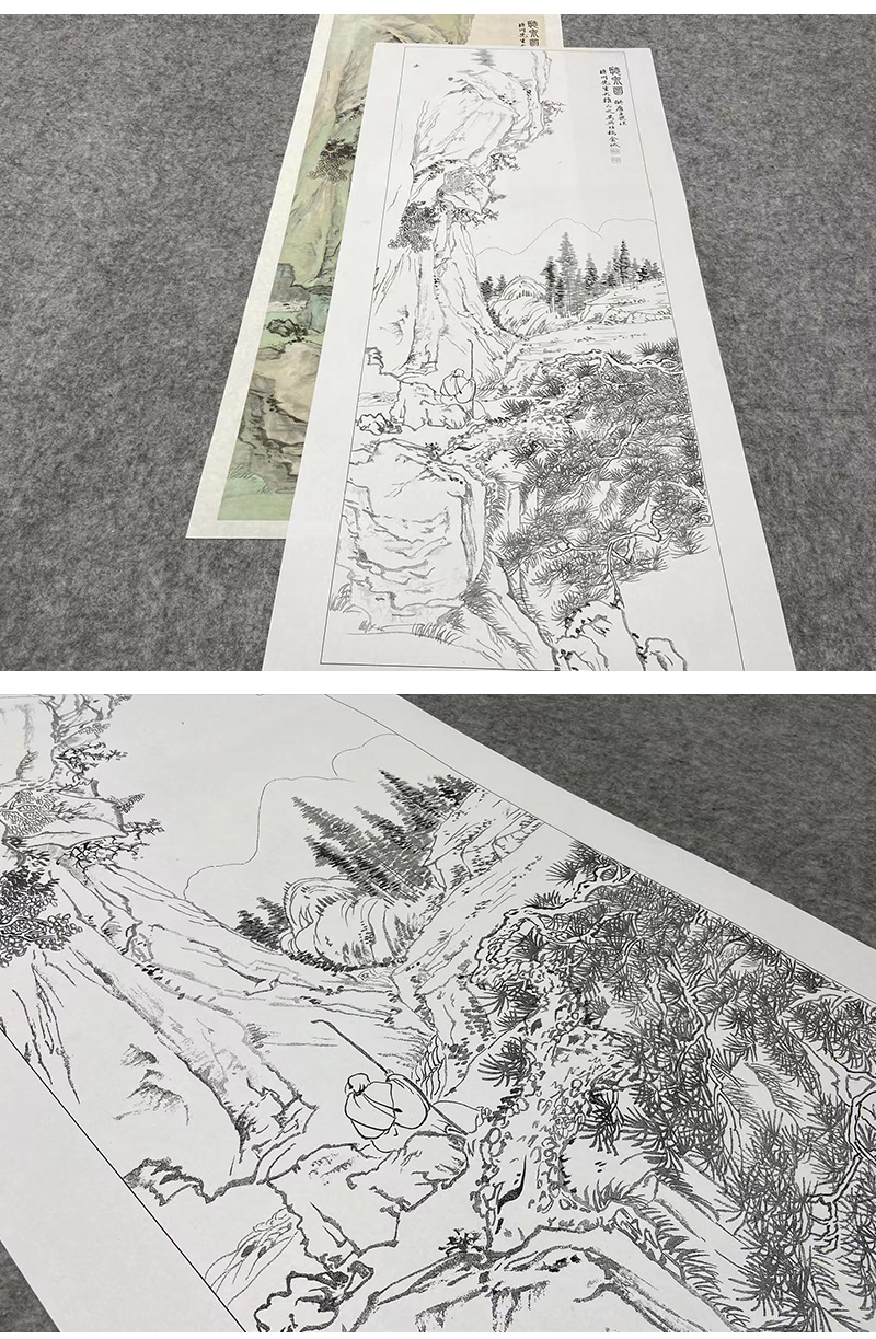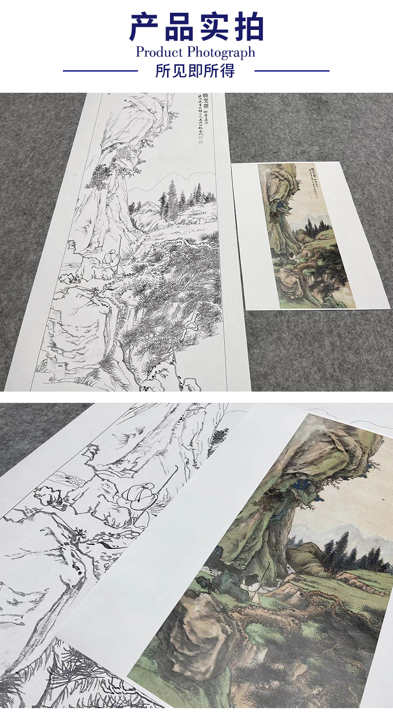 金城工笔画白描底稿《仿唐寅听泉图 》山水底稿FS25