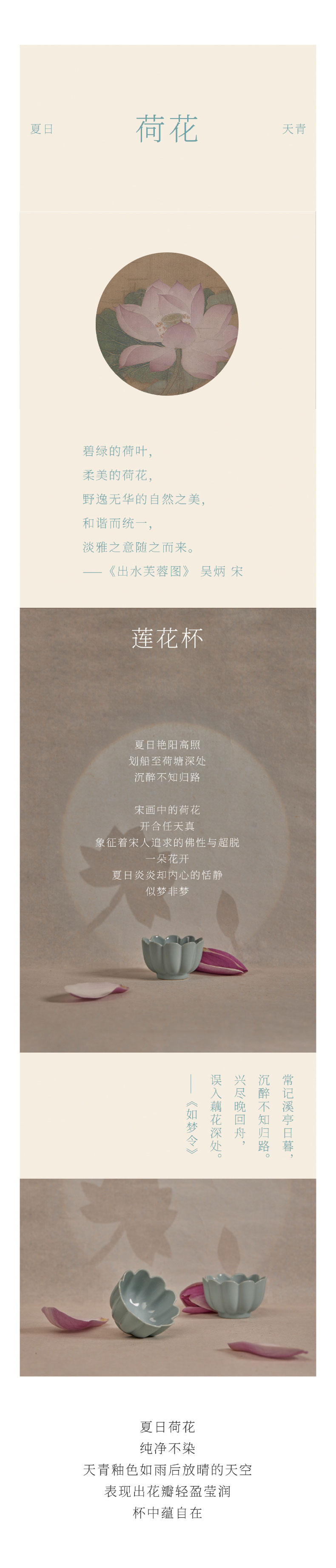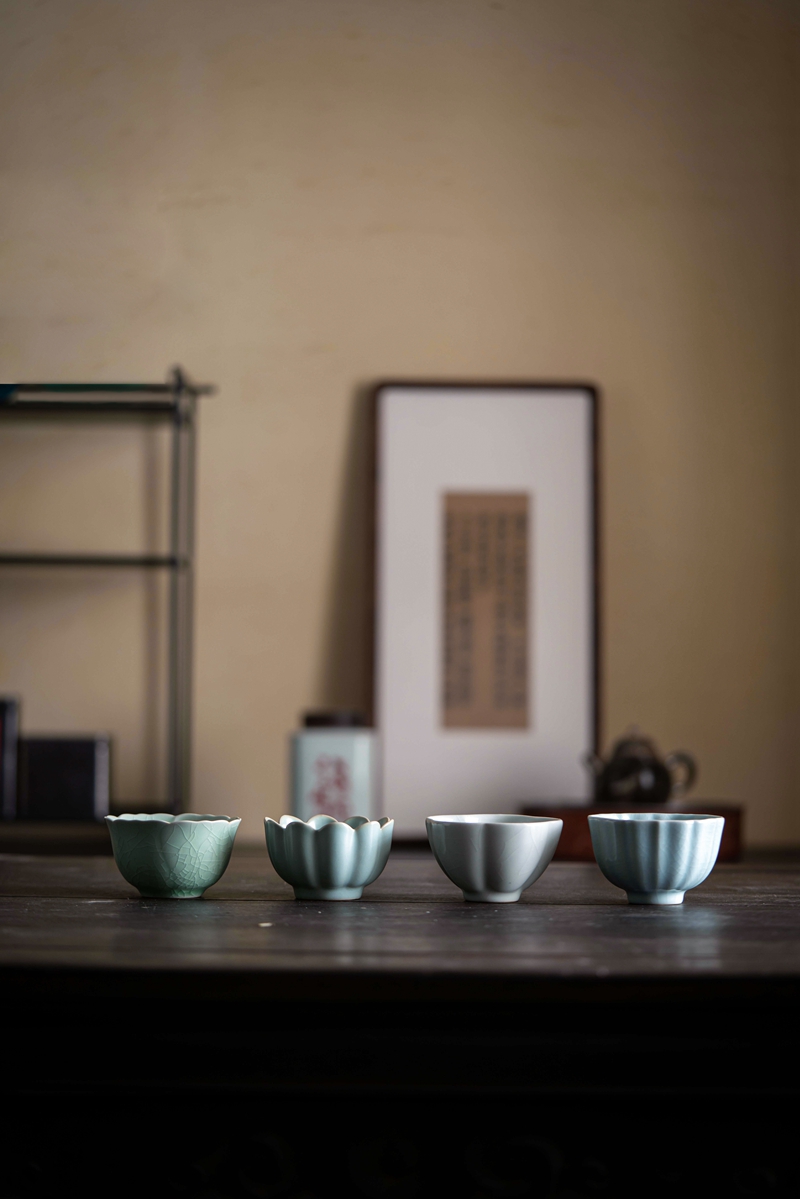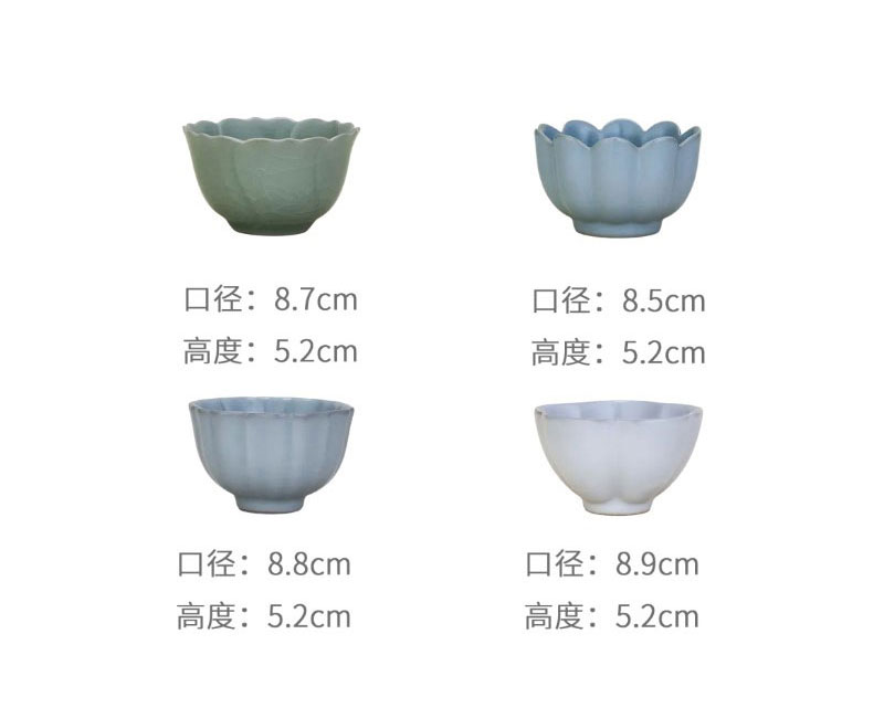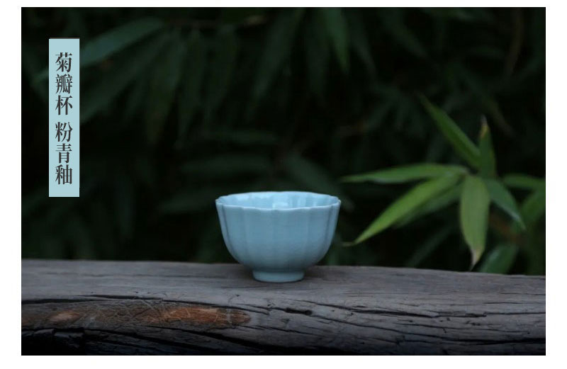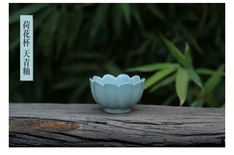 汝山明汝瓷四季花杯 围炉煮茶茶具套装 汝窑主人杯 品茗杯开片可养金线个人杯天青色功夫茶具