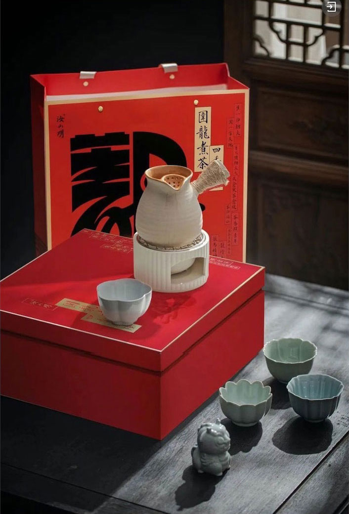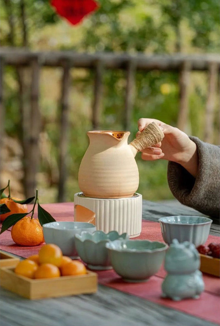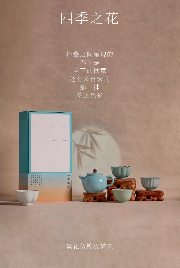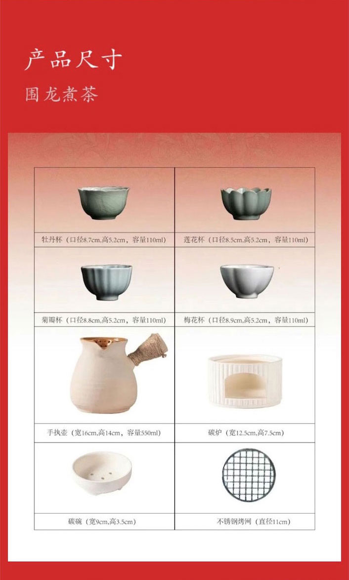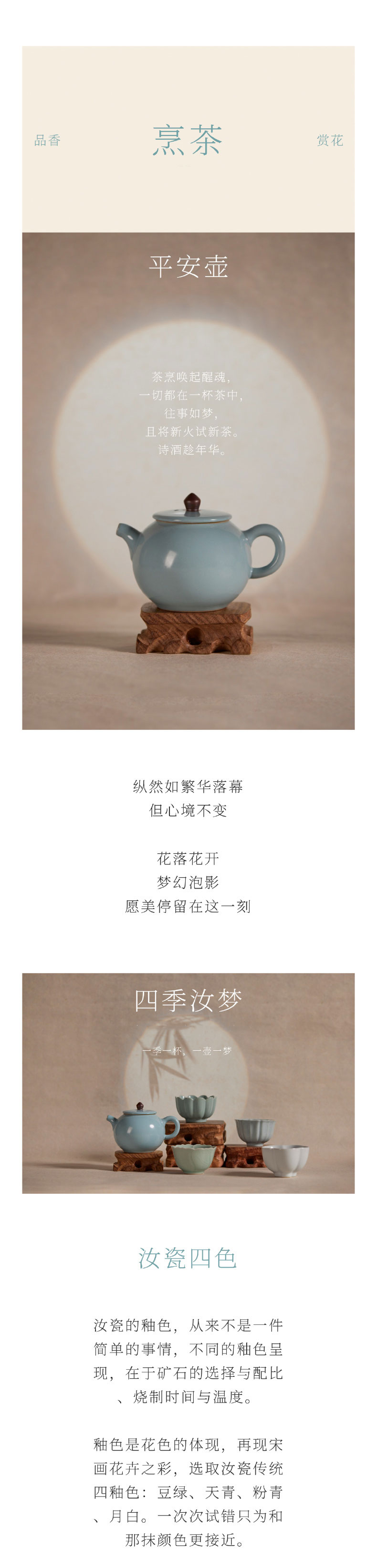 汝山明汝瓷四季花杯 围炉煮茶茶具套装 汝窑主人杯 品茗杯开片可养金线个人杯天青色功夫茶具