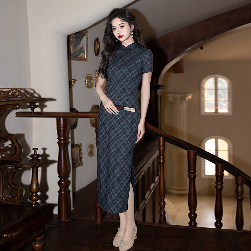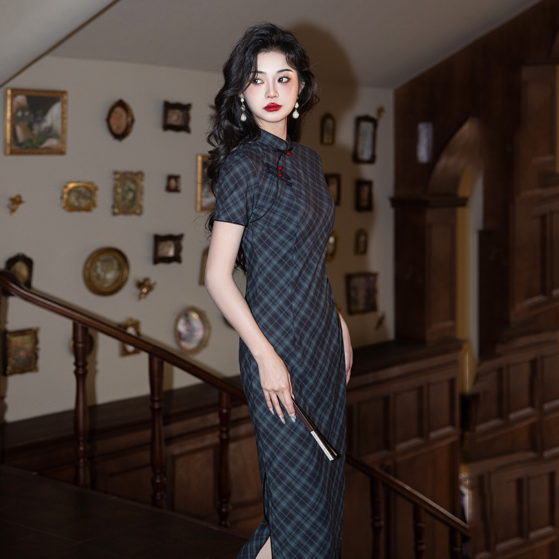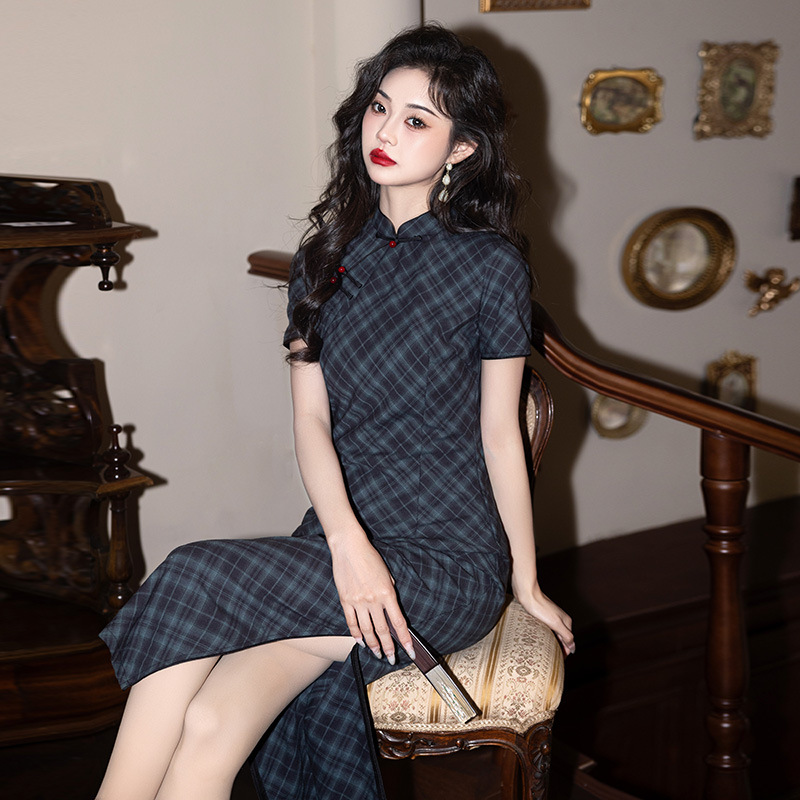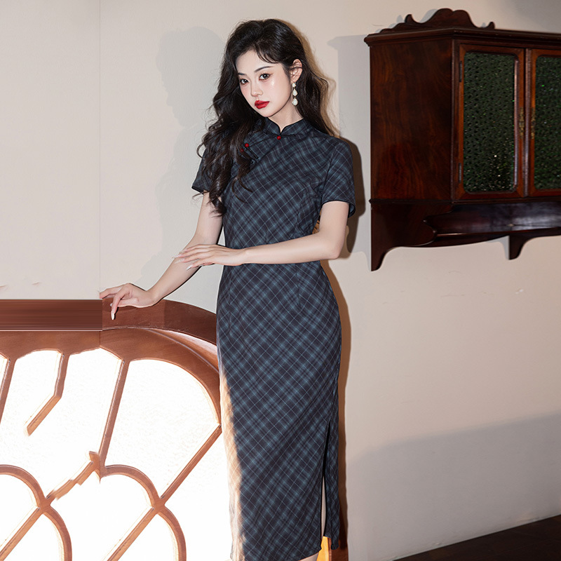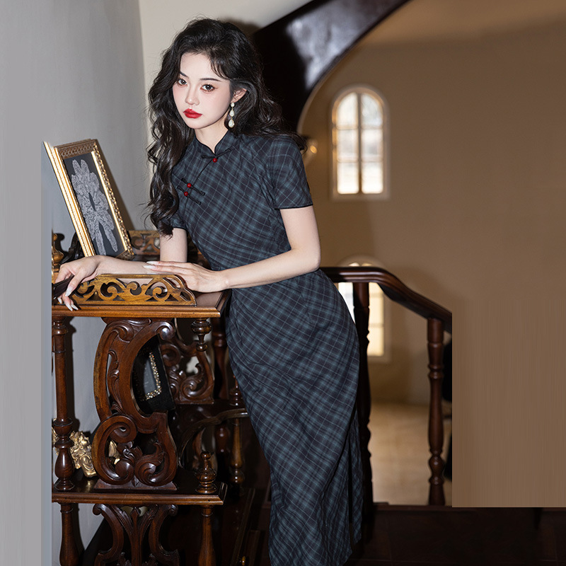 SC21874温柔风粉色格子旗袍2025春夏新款修身显瘦改良少女中式连衣裙女装 商品图2