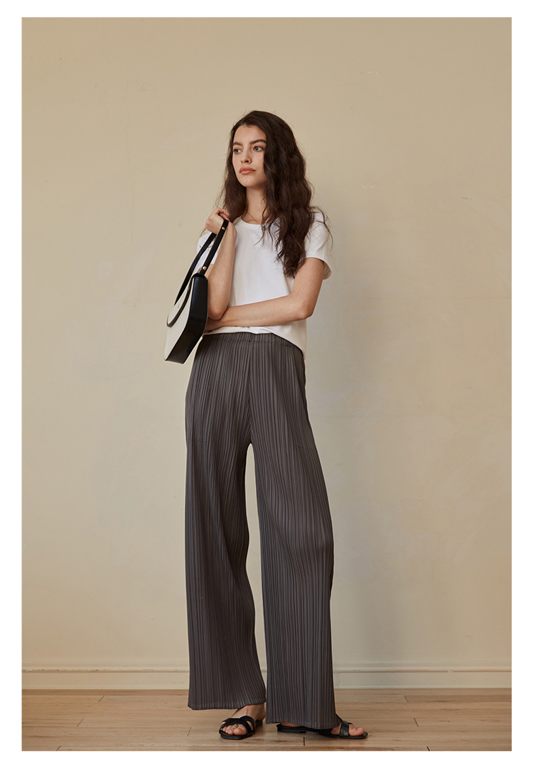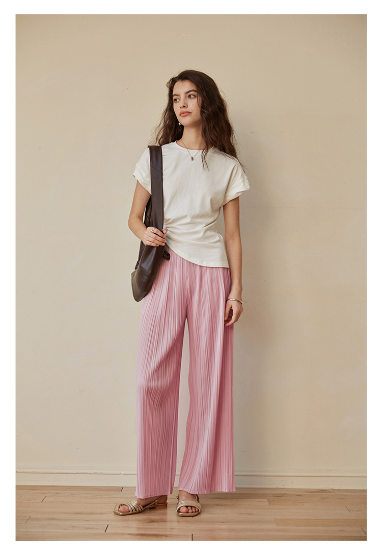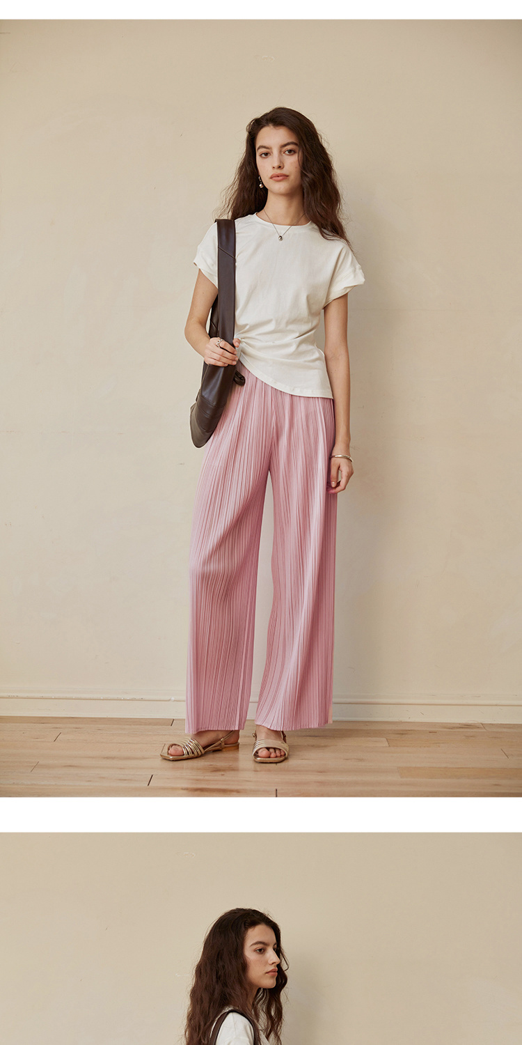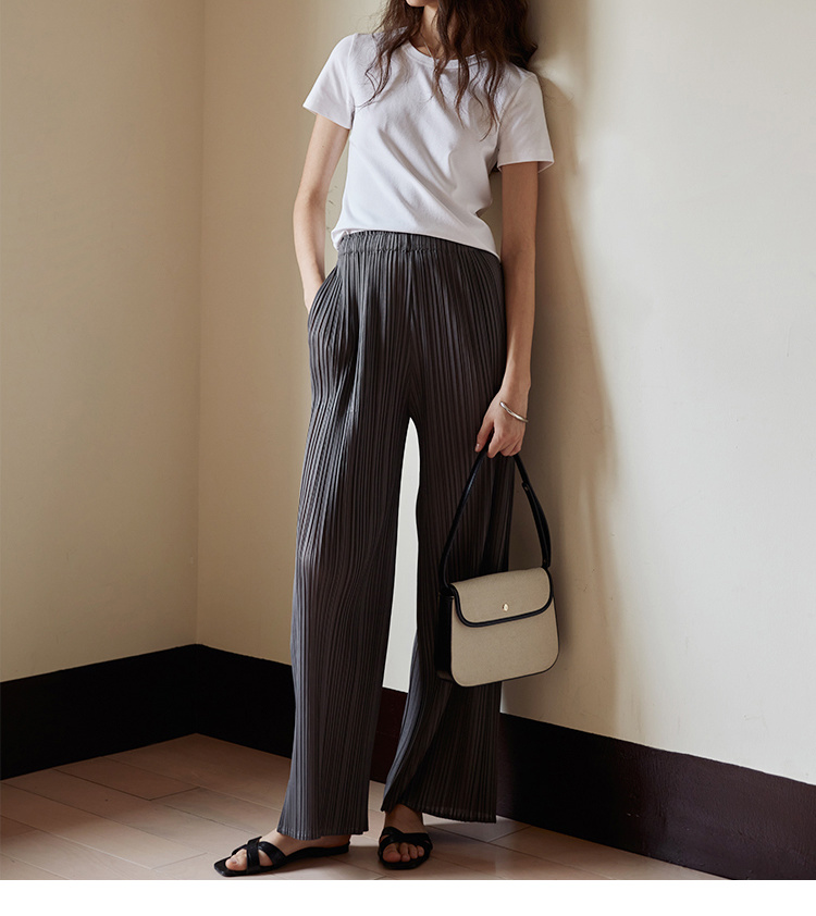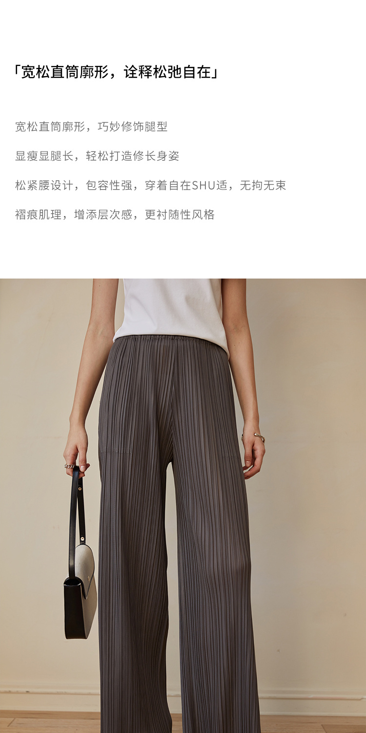 HeyDress褶皱阔腿裤女夏季高腰宽松显瘦直筒裤休闲百搭山本裤子