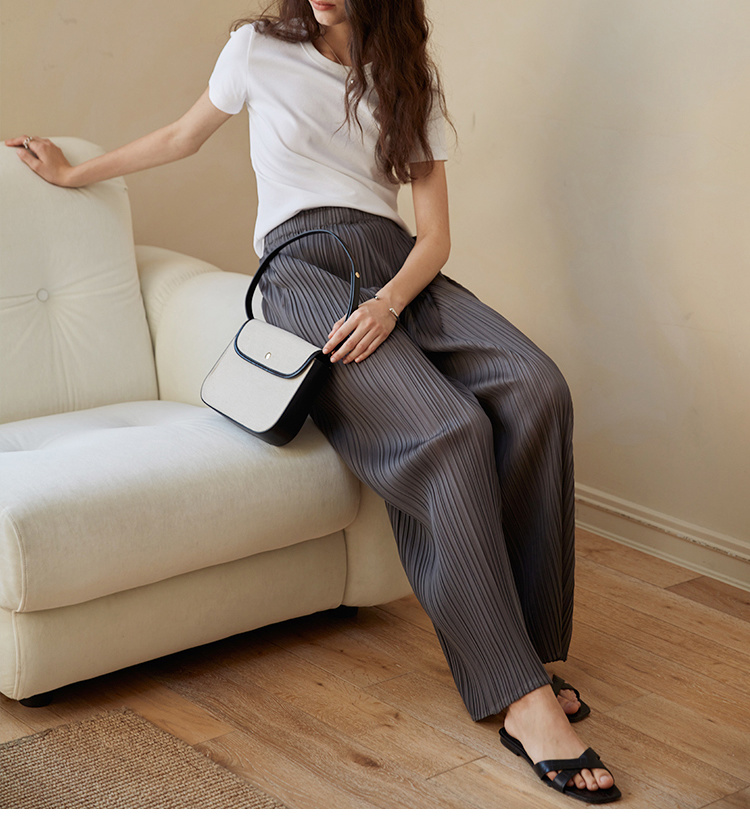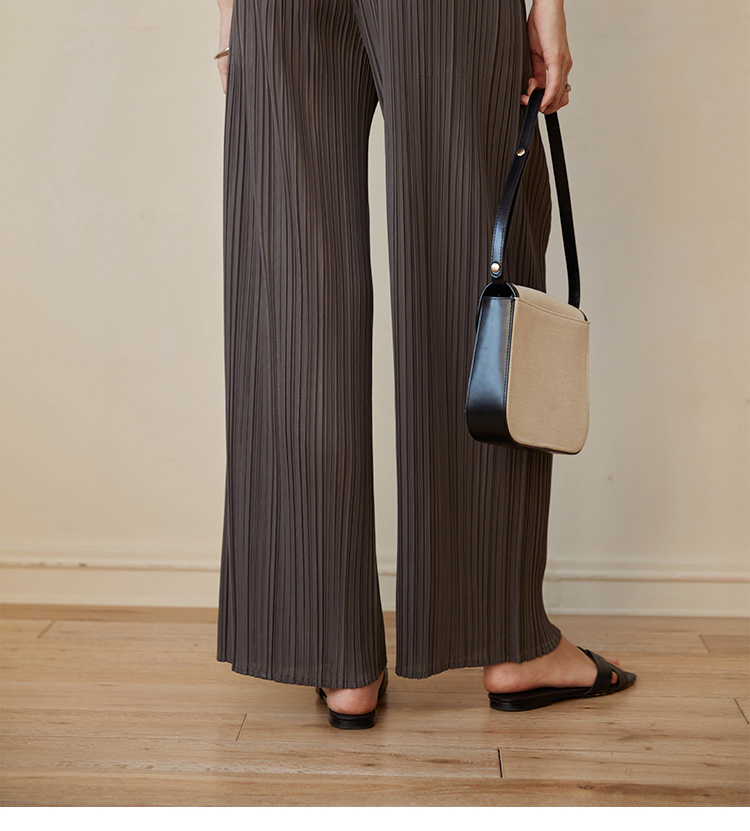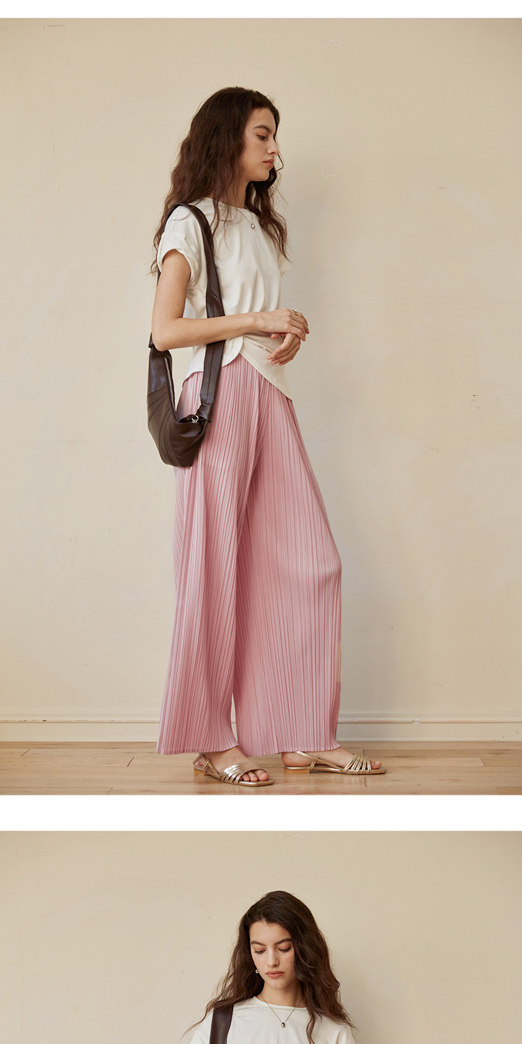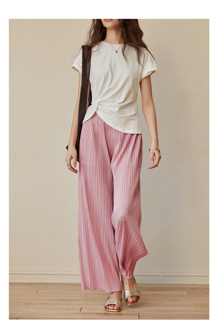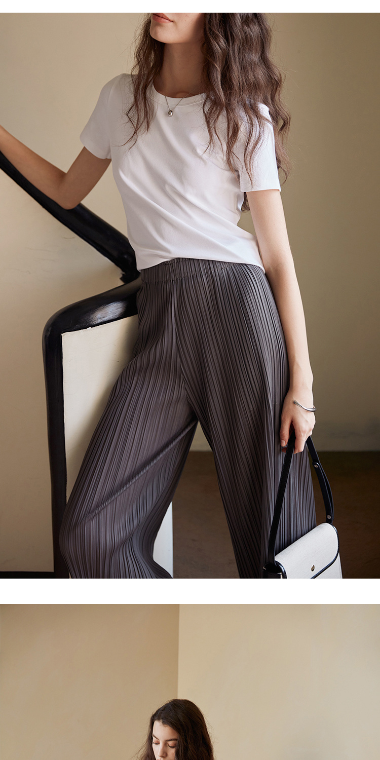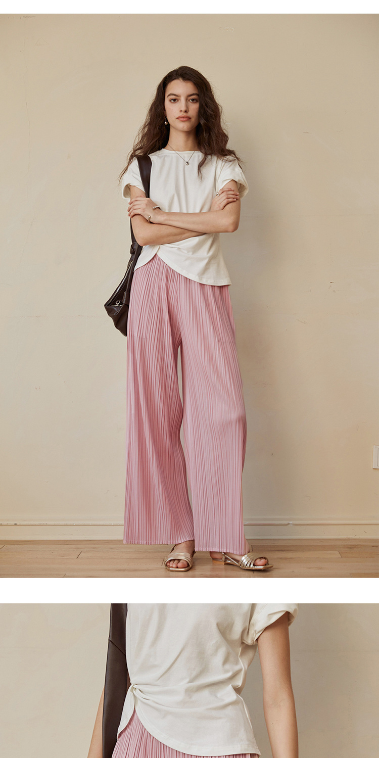 HeyDress褶皱阔腿裤女夏季高腰宽松显瘦直筒裤休闲百搭山本裤子