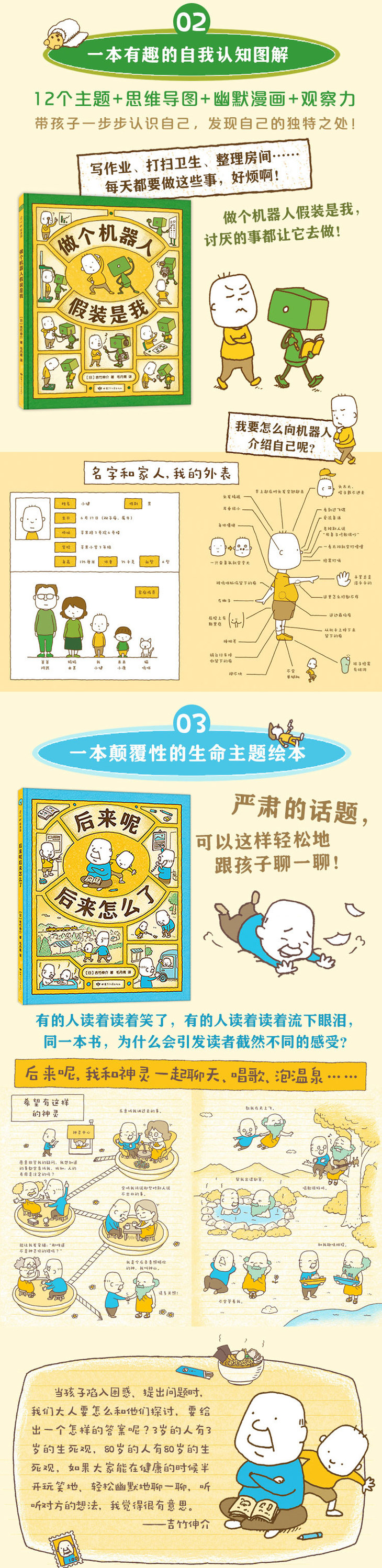 此后,他又陆续出版了《好无聊啊好无聊》《做个机器人假装是我》《后来呢后来怎么了》《脱不下来啦》《揉一揉啊捏一捏》等绘本,作品长期位居各大畅销书排行榜前列,总销量超过 100 万册。他的绘本已被翻译成英语、法语、西班牙语等语言,深受世界各国读者喜爱。
