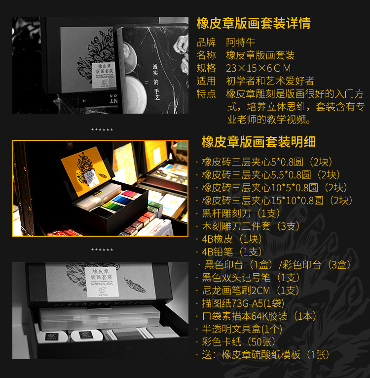 中盛画材 阿特牛系列橡皮章 橡皮砖基础素材雕刻图章 带教程