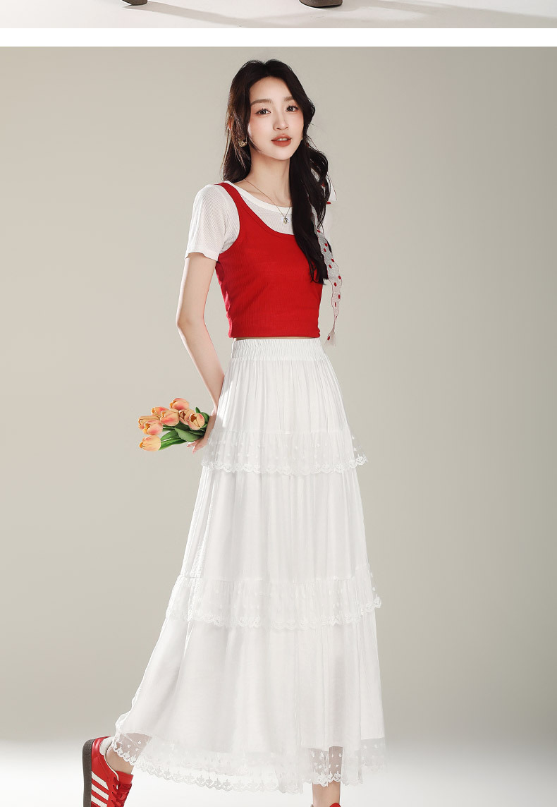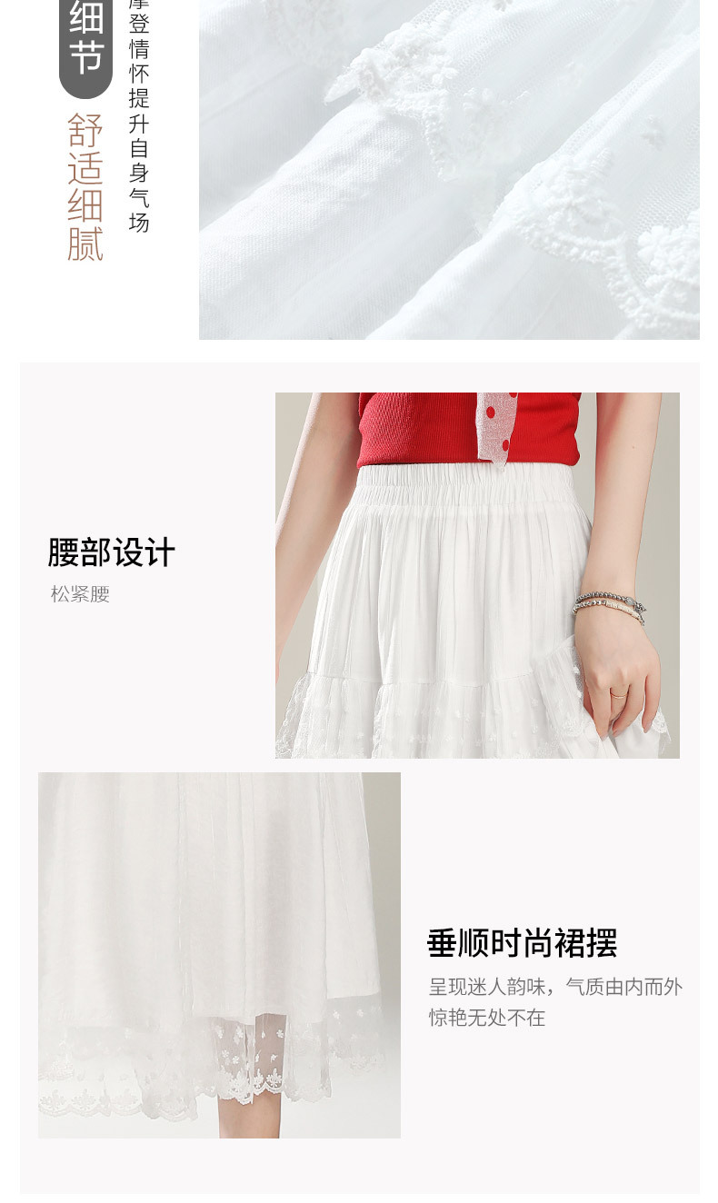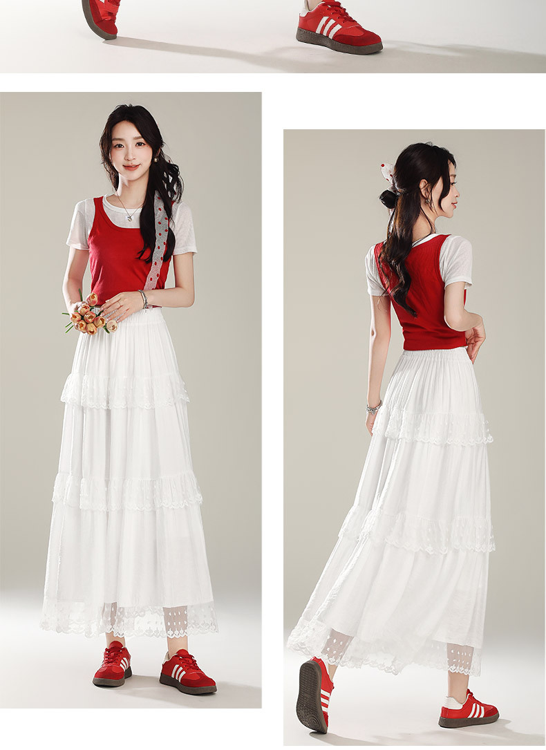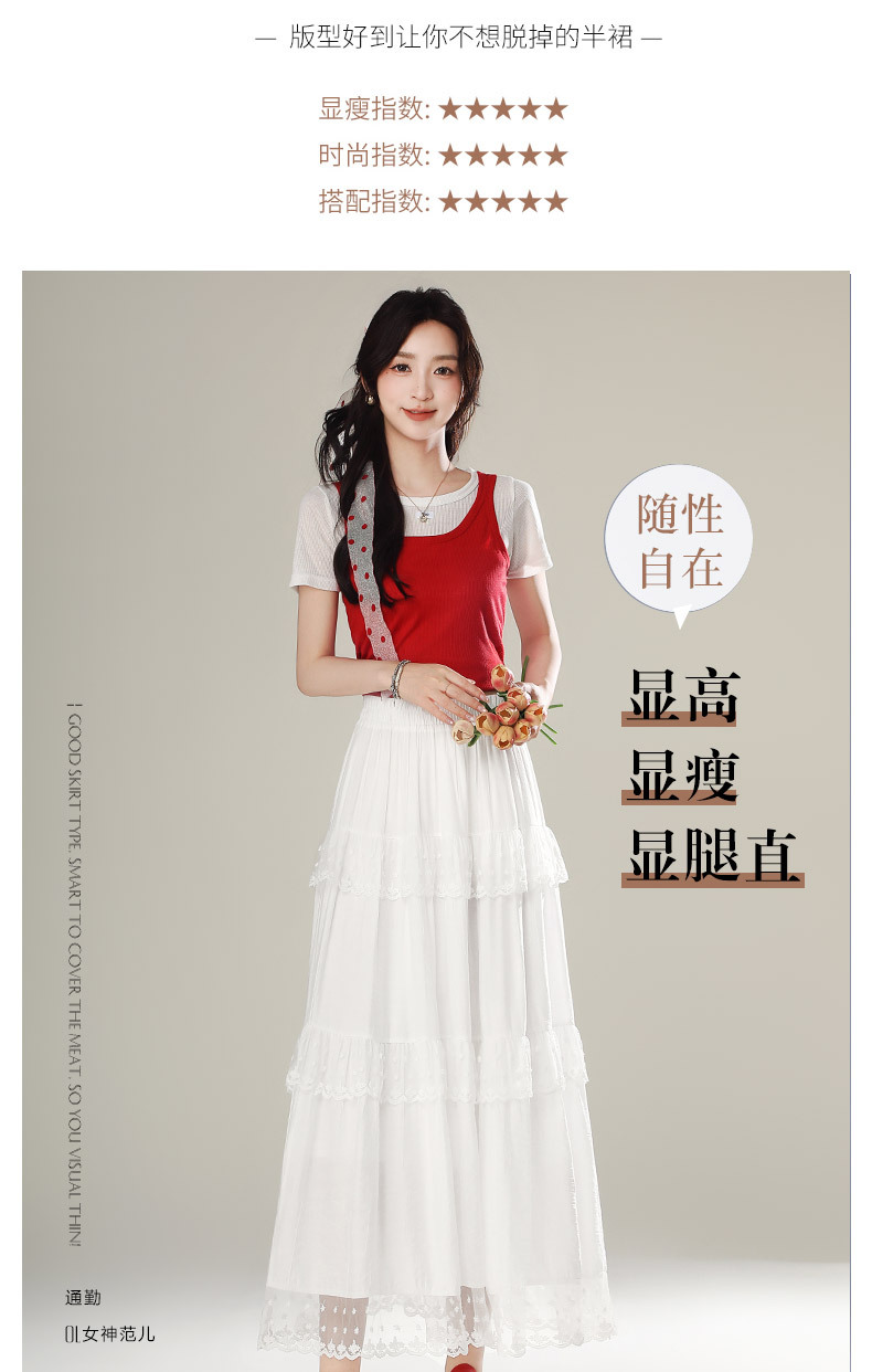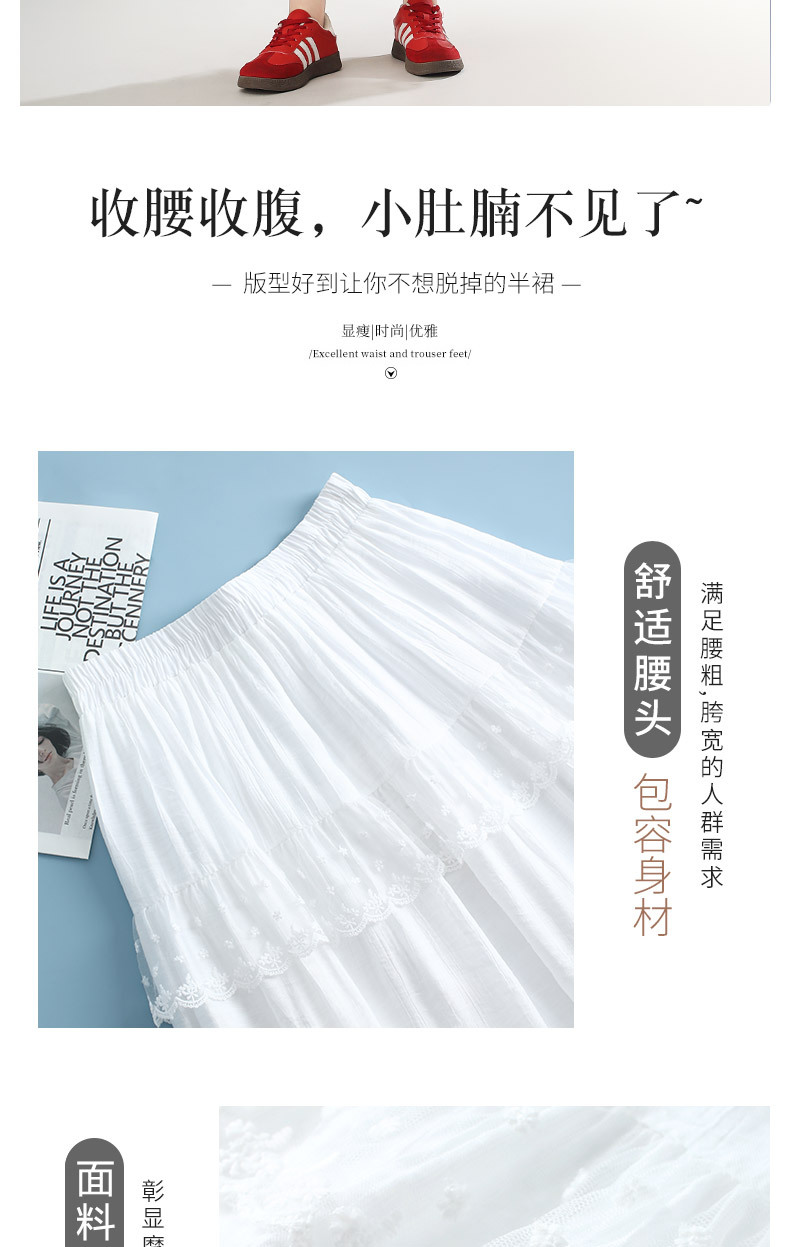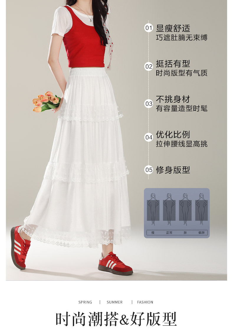 MYX-AS-6657-L蕾丝荷叶边洋气蛋糕裙2025夏季新款松紧腰休闲长裙垂感百褶半身裙