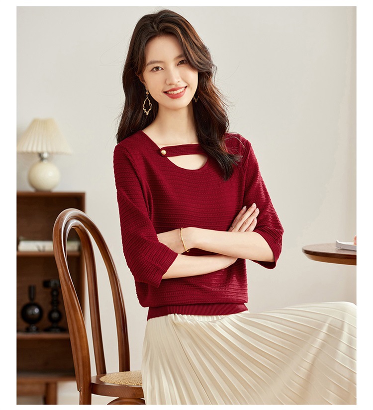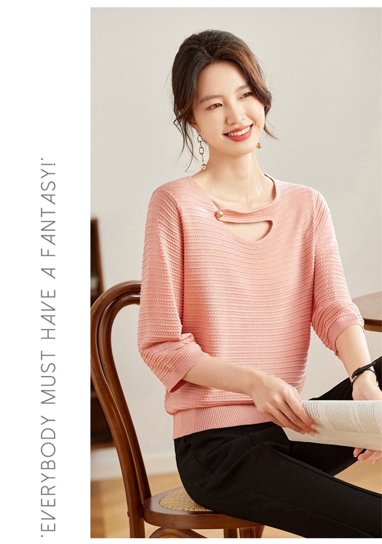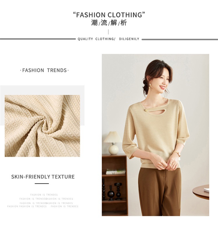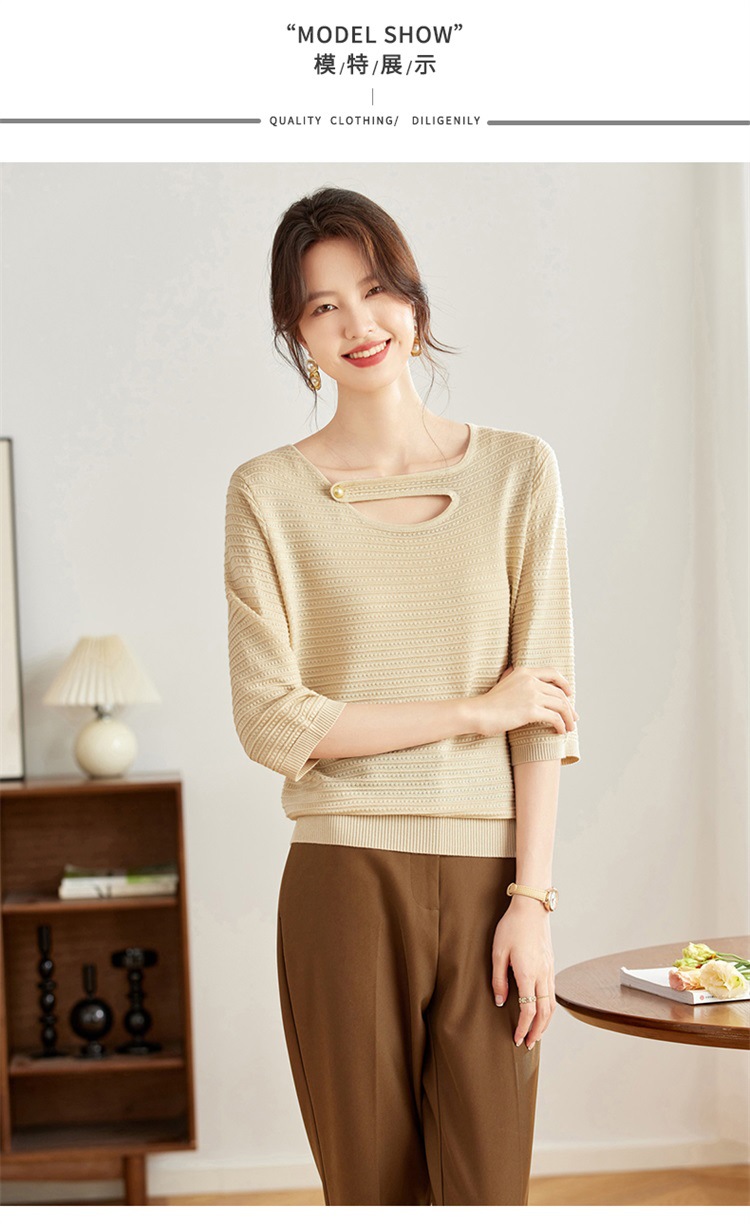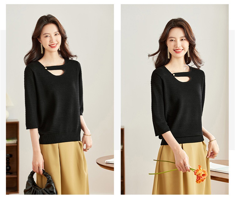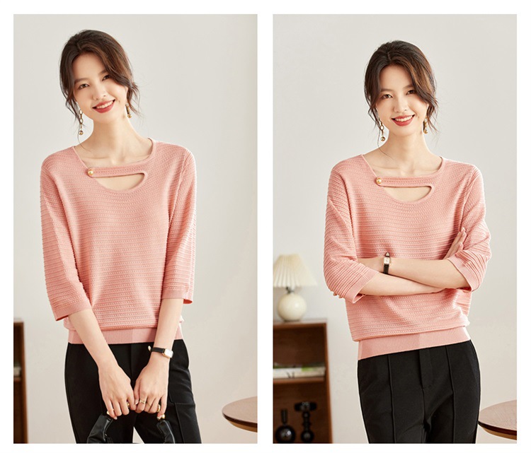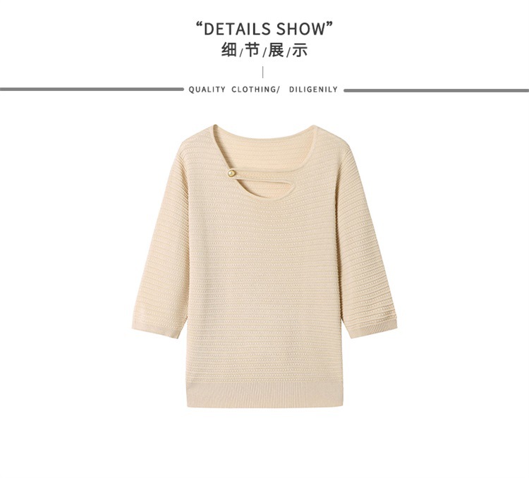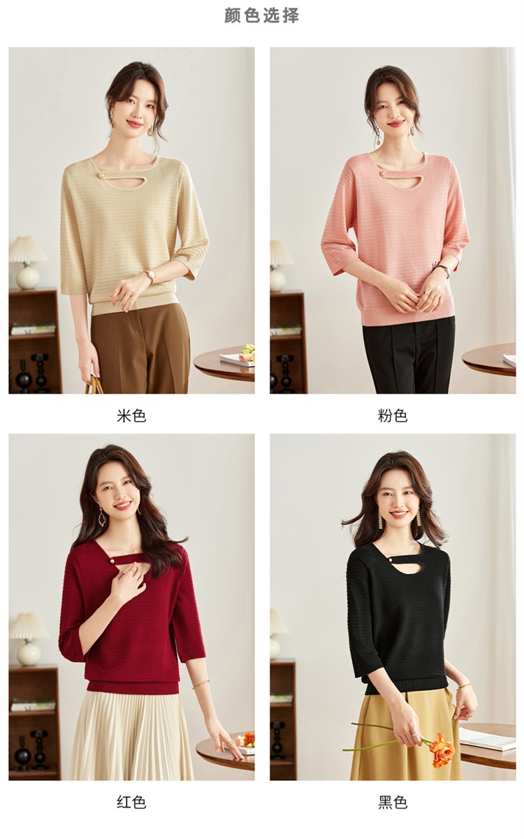 V领中袖上衣,设计感洋气针织衫CC- 16-9003