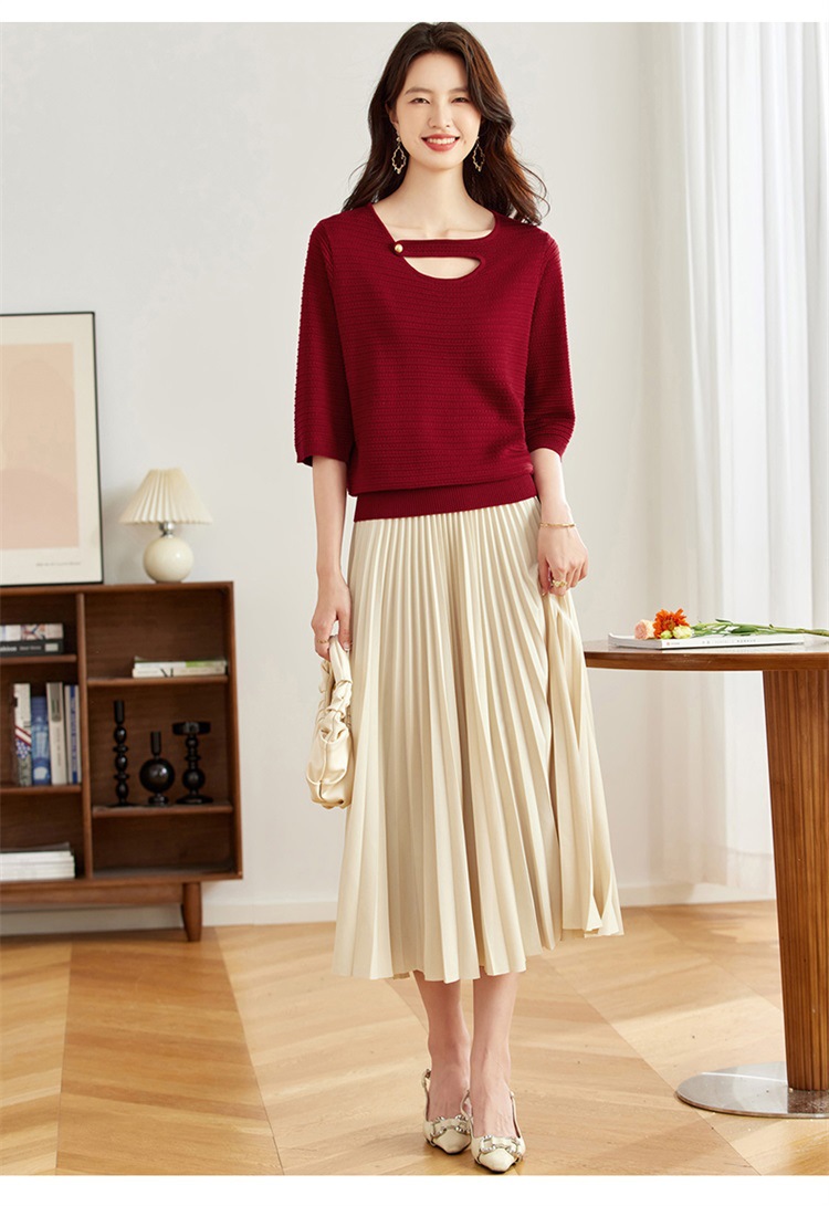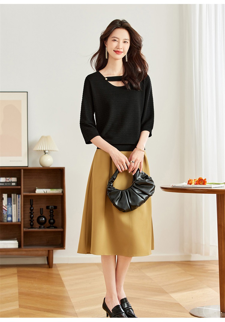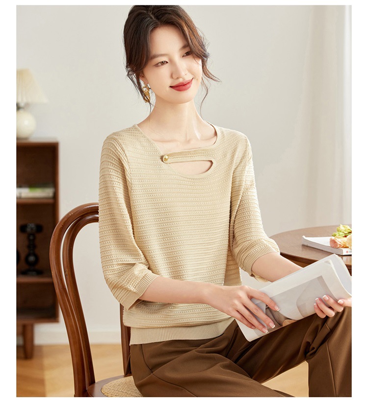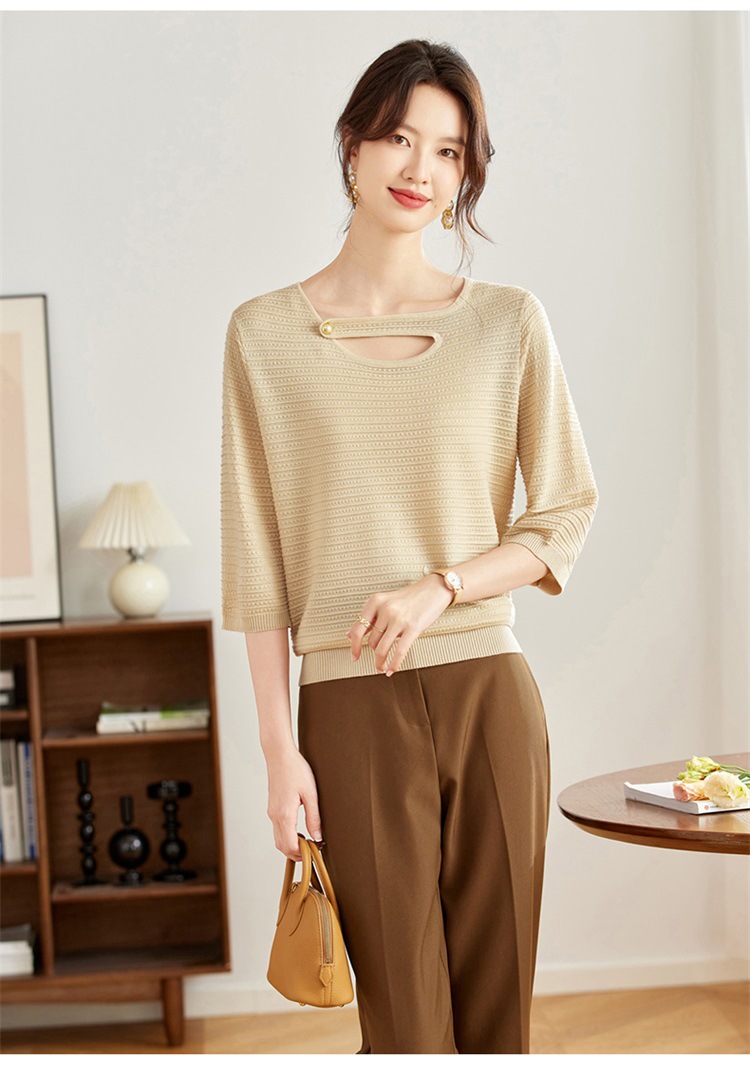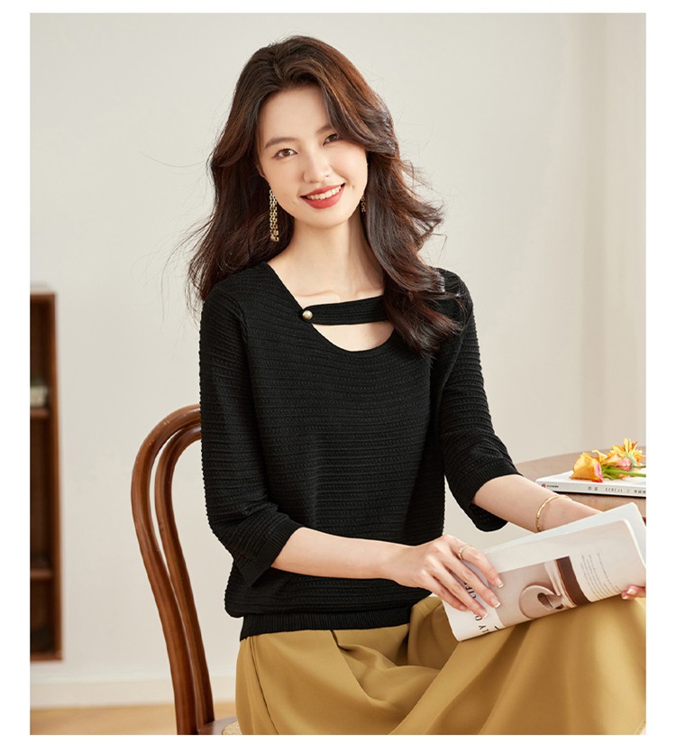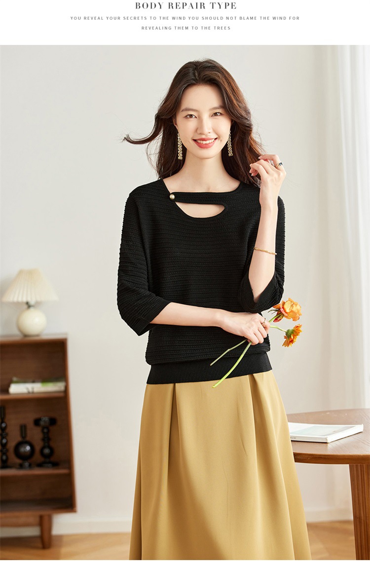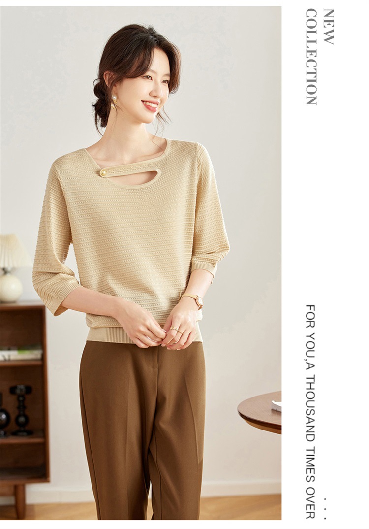 V领中袖上衣,设计感洋气针织衫CC- 16-9003