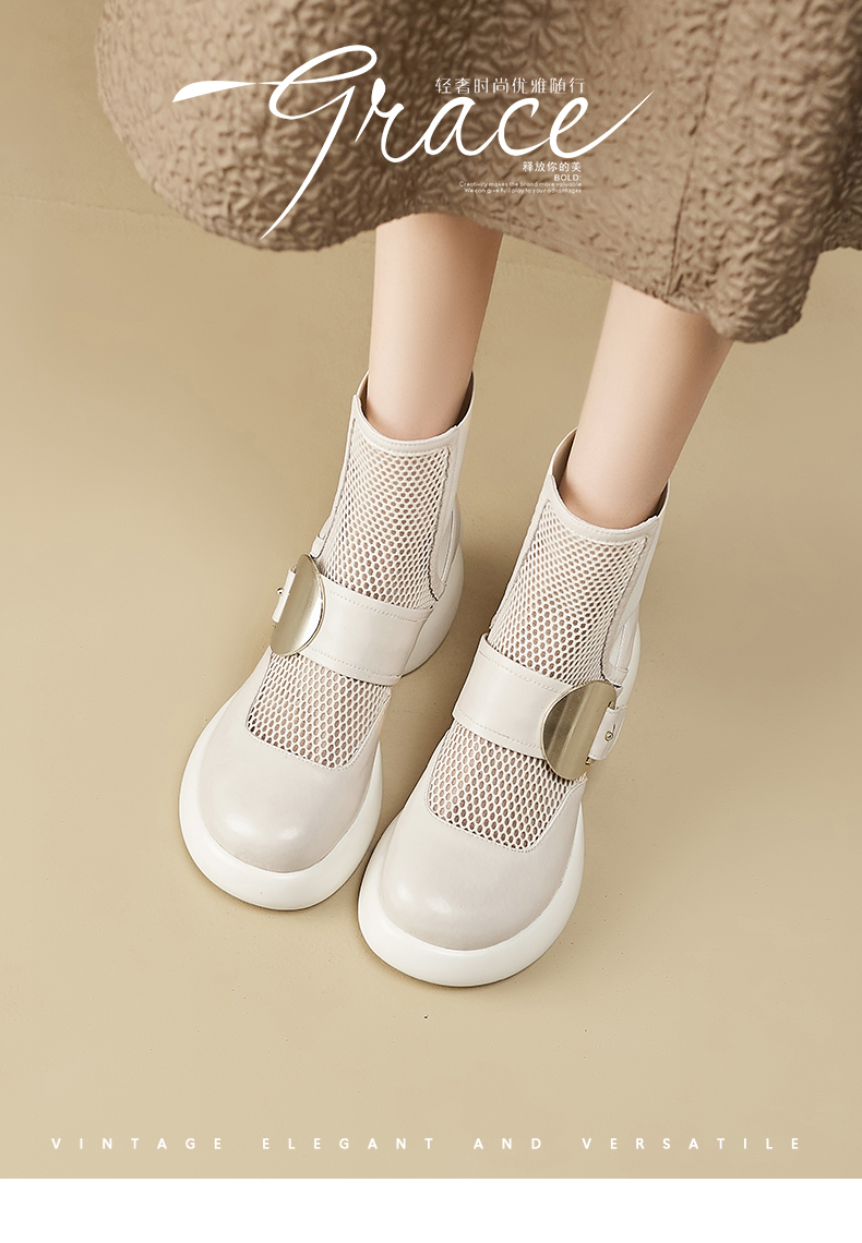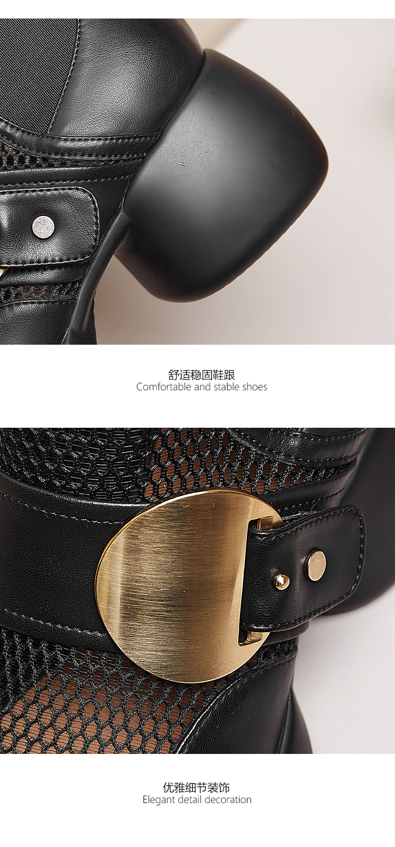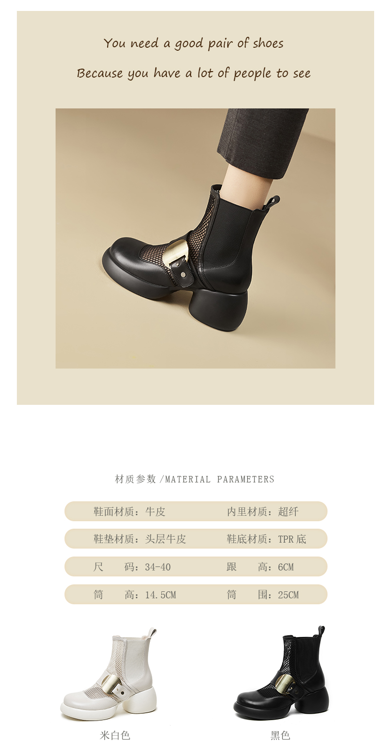 春季新款,时尚个性厚底粗跟网纱拼接短靴CZ410