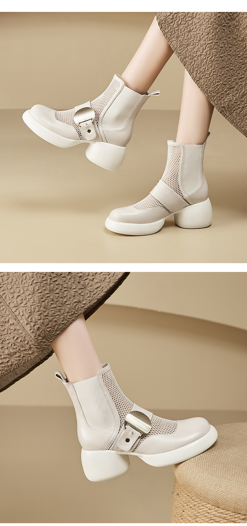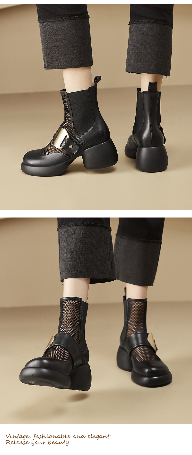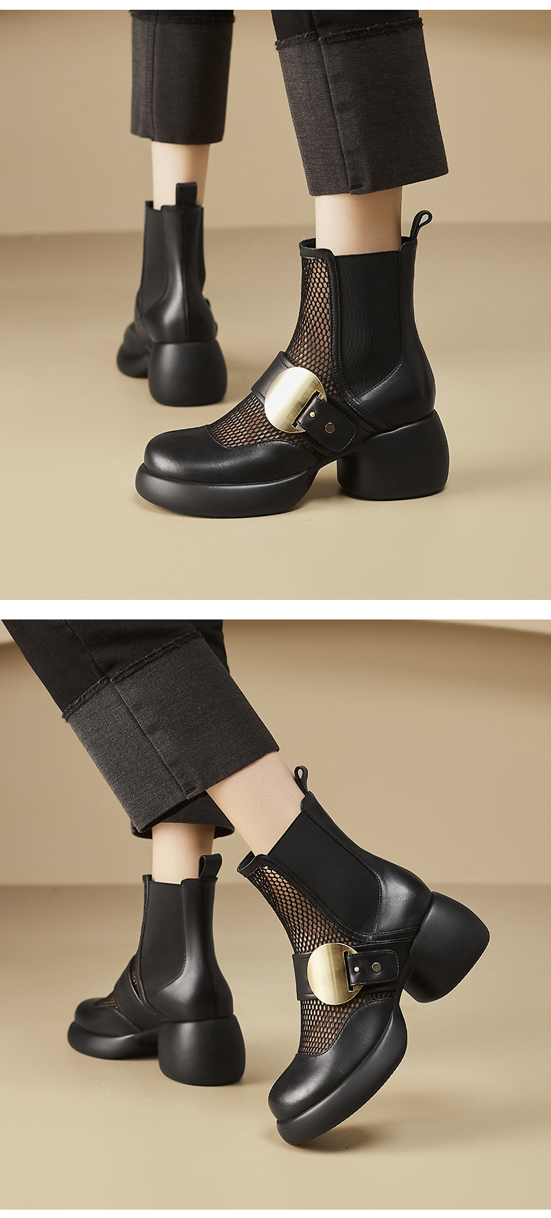 春季新款,时尚个性厚底粗跟网纱拼接短靴CZ410