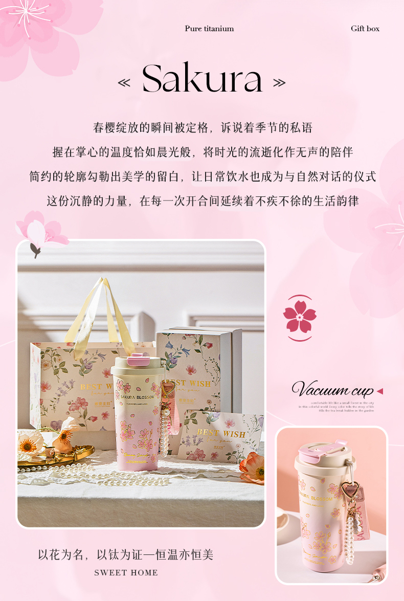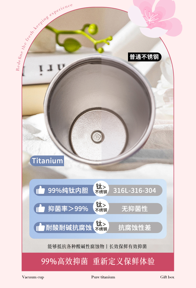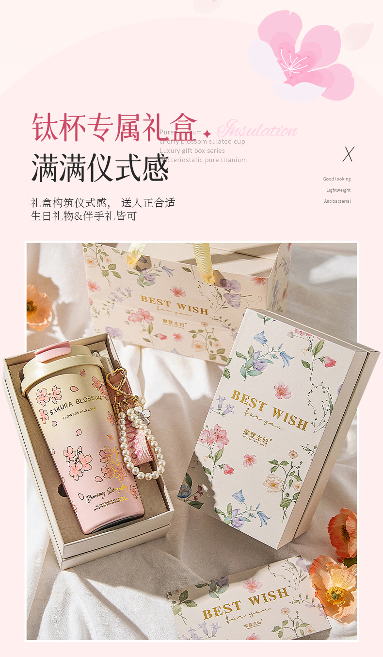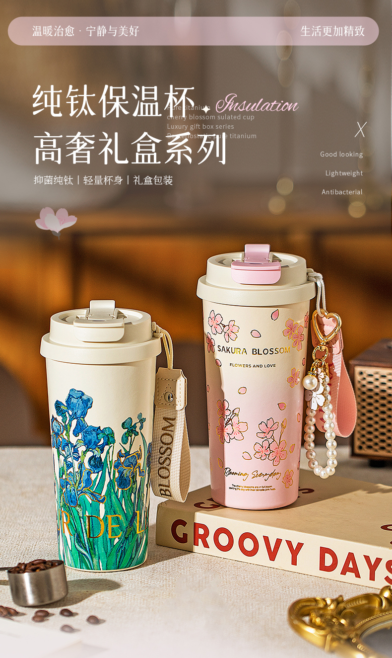 摩登主妇纯钛保温杯高档礼盒生日礼物女办公室水杯伴手礼咖啡杯子