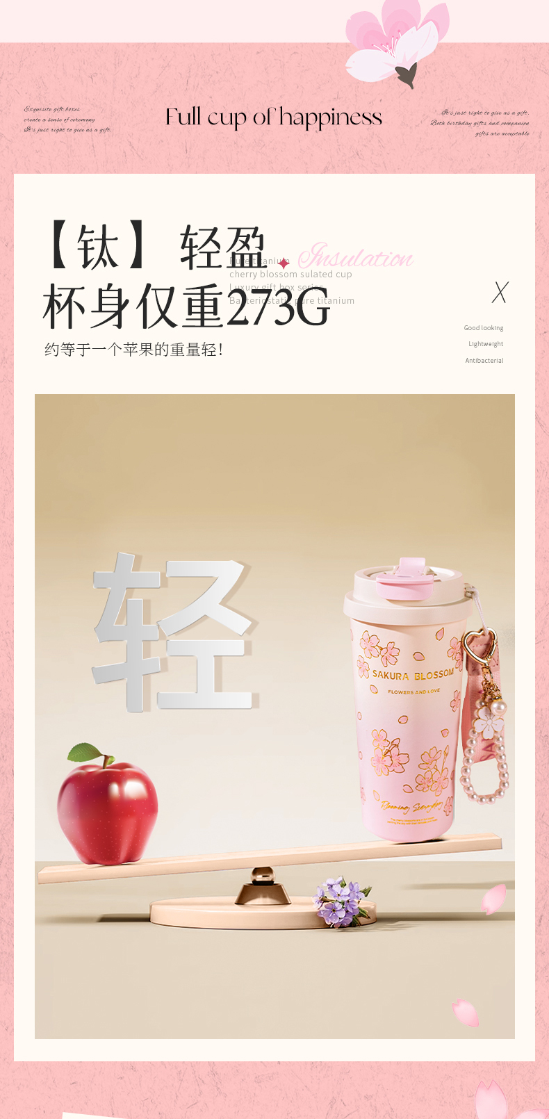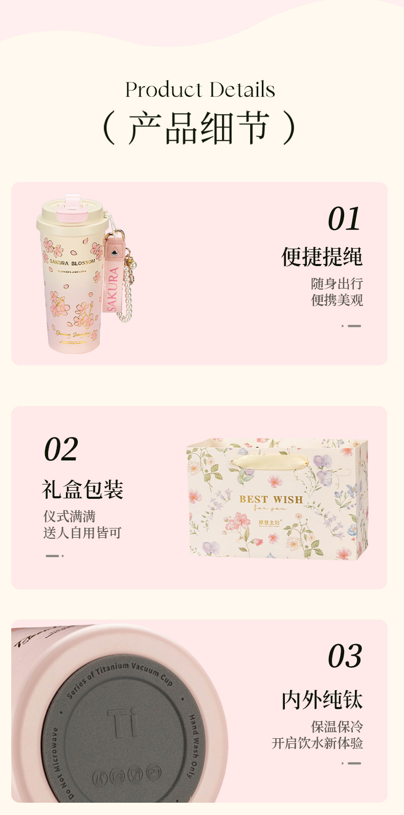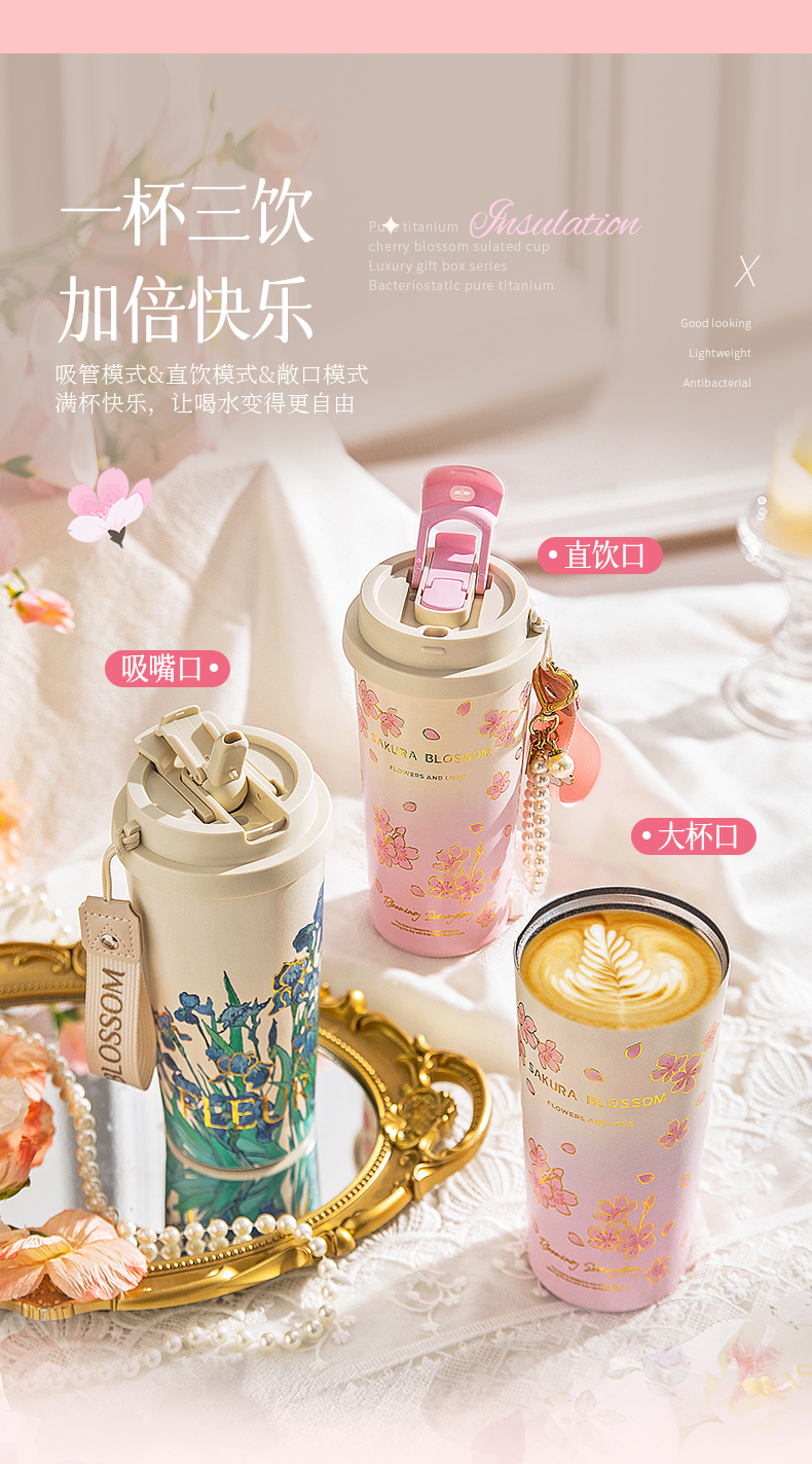 摩登主妇纯钛保温杯高档礼盒生日礼物女办公室水杯伴手礼咖啡杯子